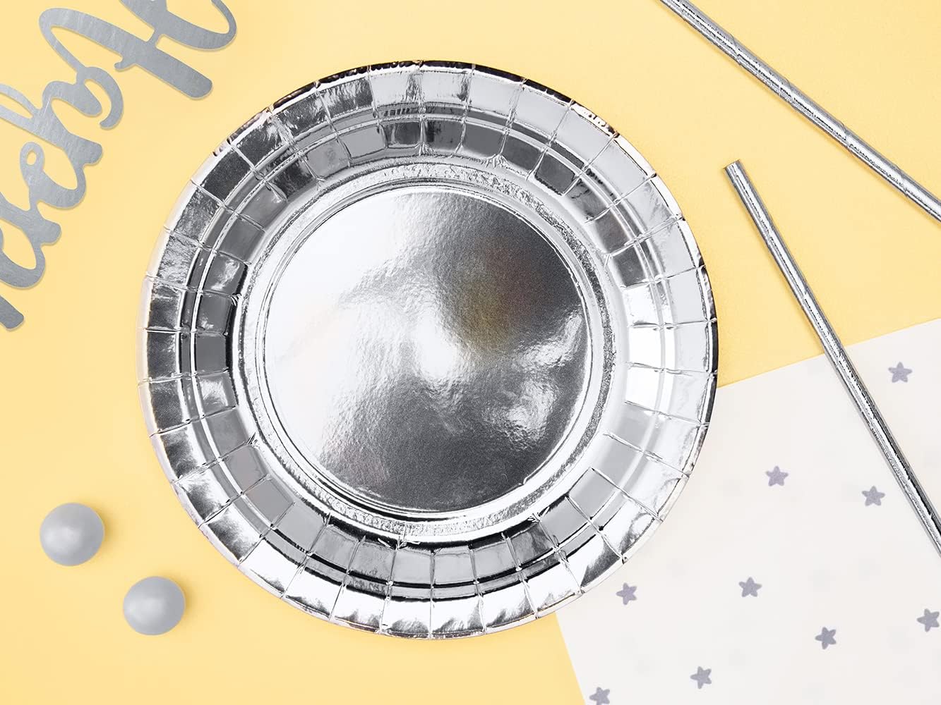 Set di 6 piatti di carta/piatti di carta/piatti per feste: rotondi/colore: argento/materiale: cartone, rivestito/diametro: circa 18 cm. Contenuto: 6 piatti usa e getta, in cartone, utilizzabili una volta Con questi piatti per feste renderete ogni festa un vero e proprio highlight! Queste stoviglie usa e getta in cartone offrono opzioni di servizio veloci e adatte a tema, risparmiando tempo durante la pulizia. Quindi con questi piatti usa e getta farai sicuramente la scelta giusta. Questi robusti piatti di carta si possono combinare perfettamente anche con altri accessori per feste. Questo set di stoviglie è adatto per qualsiasi decorazione da tavolo o per feste FORMA: rotondo Tema: cavaliere, robot, discoteca, tinta unita, tinta unita. Gruppo di destinazione: bambini, ragazze, ragazzi, ragazzi, uomini, donne, adolescenti, adolescenti Occasioni e feste a tema: è ideale come idea decorativa per il compleanno dei bambini, compleanno, compleanno di ragazze, feste di compleanno, festa a tema, nozze d'argento, festa di compleanno, festa per bambini, feste in discoteca, festa di ballo, Capodanno, festa invernale, festa di cavaliere, feste di compleanno I colori possono variare leggermente dalla foto a causa delle diverse impostazioni del monitor