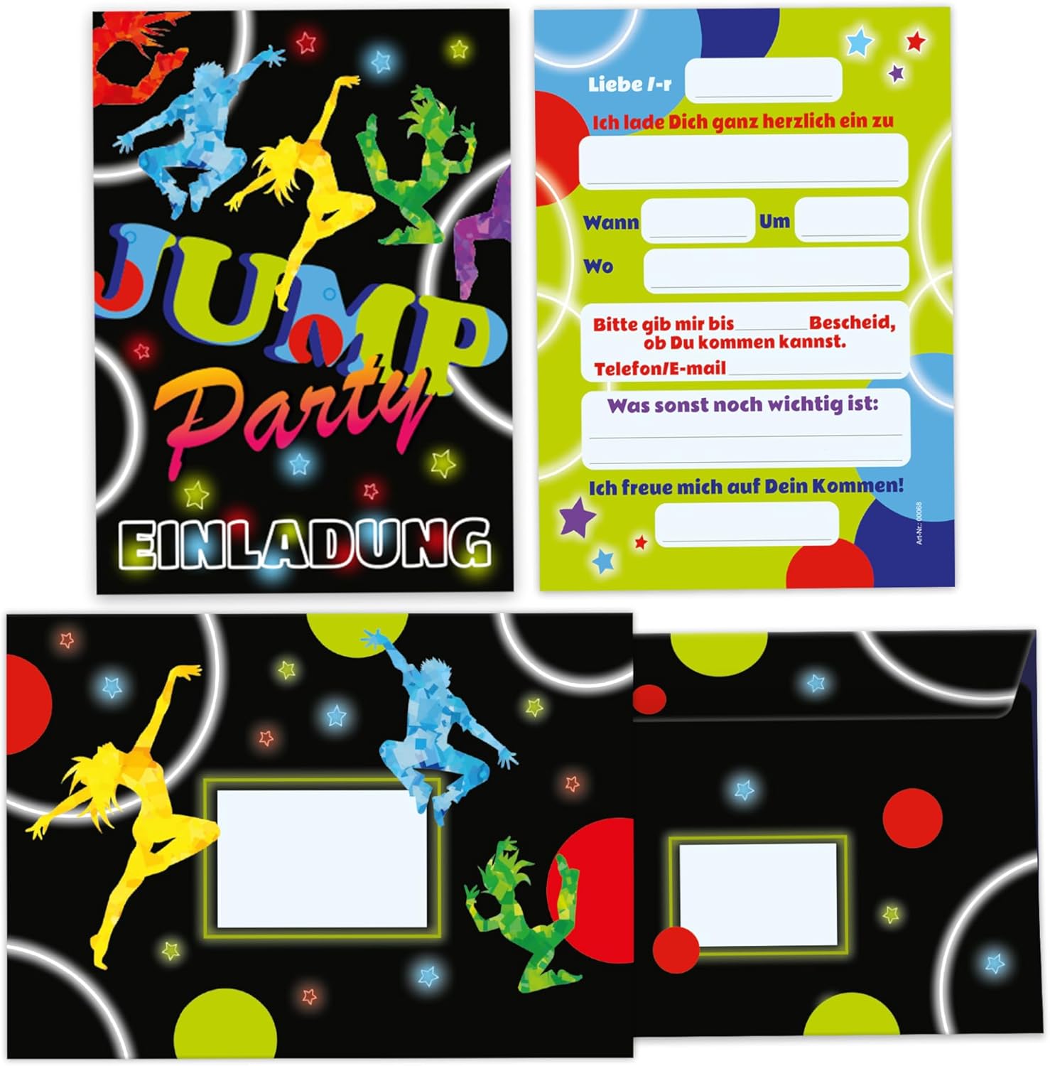 CONTENUTO POPOLARE: 6 biglietti d'invito, 6 buste, 6 Tic Tac Toe, 6 sacchetti con 6 adesivi in un set. FORMATO IDEALE: Il biglietto d'invito è 10,5 x 14,8 cm / DIN A6, la busta è 11,4 x 16,2 cm / DIN C6 (adesivo con striscia staccabile), la busta è 14 x 22 cm, l'adesivo è 5,2 x 14,8 cm, il Tic Tac Toe è 14,8 x 10,5 cm / DIN A6 e ha 25 fogli. QUALITÀ SUPERIORE: il biglietto d'invito: stampa di immagini di alta qualità da 300 g/m², rifinita con vernice UV. La busta: stampa di immagini di alta qualità da 80 g/m² ed è autoadesiva (con strisce staccabili). La borsa: carta kraft naturale di alta qualità. L'adesivo: stampa di immagini di alta qualità, autoadesiva, scrivibile. Il Tic Tac Toe: carta bianca naturale da 80 g/m², incollata sulla testa, rinforzata con cartoncino grigio solido sul retro. Prodotto in Germania. DESIGN E INDIVIDUALIZZAZIONE: I biglietti d'invito hanno sul retro campi prestampati da compilare e personalizzare. Disponibile anche in set da 10 in altri popolari motivi per bambini personalizzati.