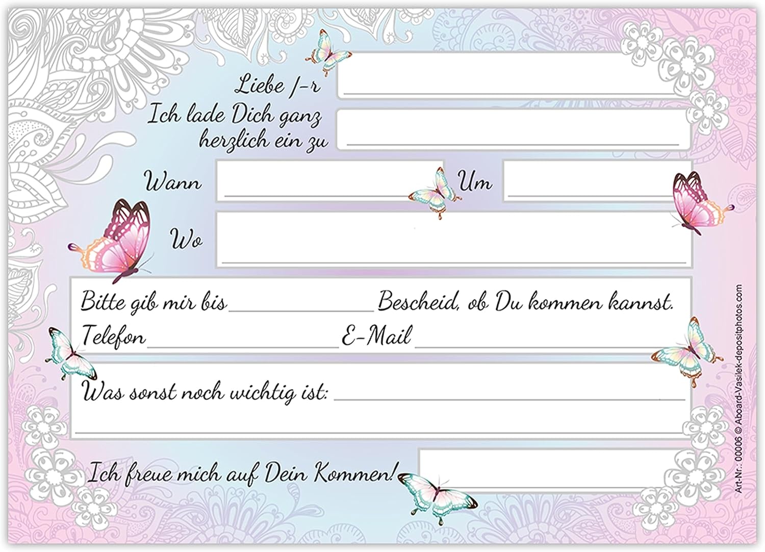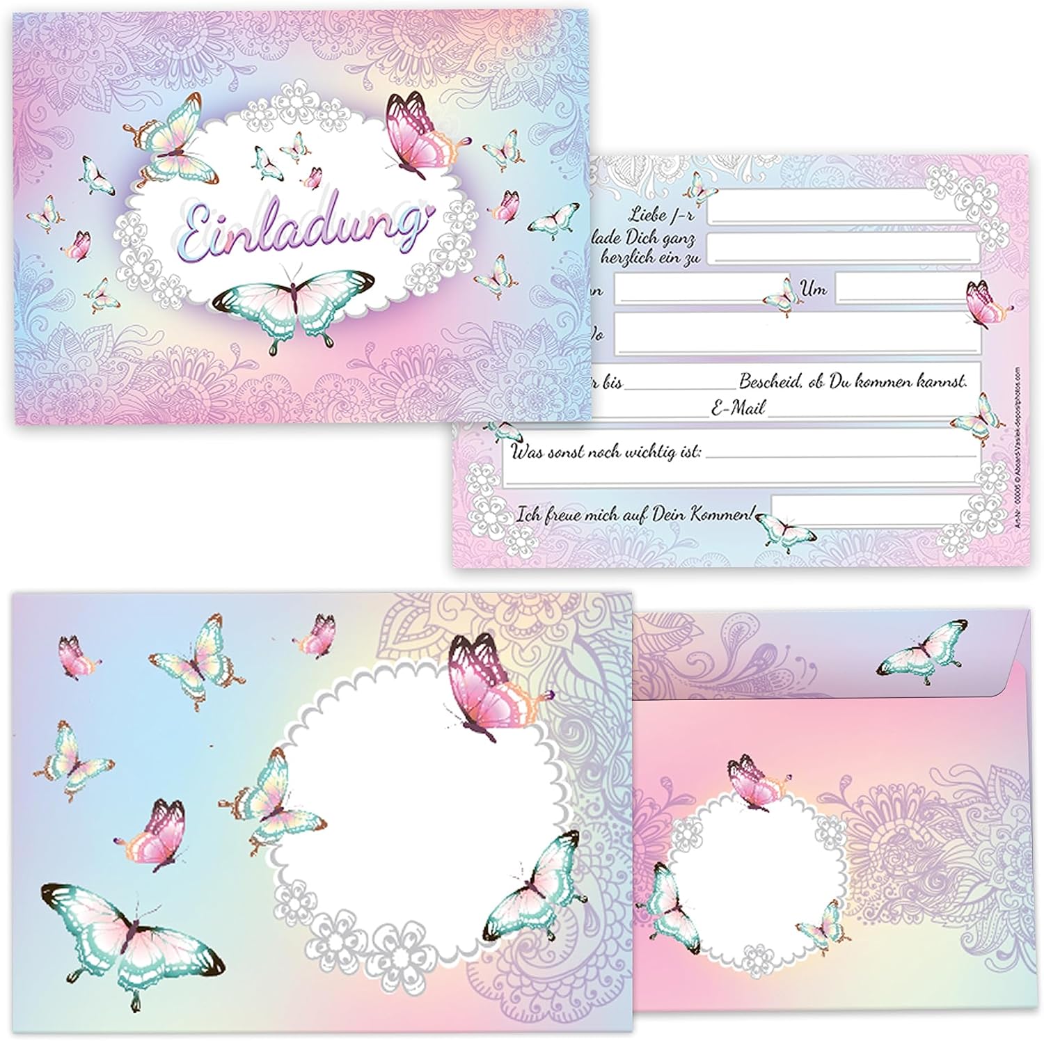 CONTENUTO POPOLARE: 6 biglietti d'invito, 6 buste, 6 segnalibri, 6 mini taccuini, 6 mandala, 6 Tic Tac Toe, 6 sacchetti con 6 adesivi in un set. FORMATO IDEALE: Il biglietto d'invito è 10,5 x 14,8 cm / DIN A6, la busta è 11,4 x 16,2 cm / DIN C6 (adesiva con striscia staccabile), la busta è 14 x 22 cm, l'adesivo è 5,2 x 14,8 cm. QUALITÀ SUPERIORE: il biglietto d'invito: stampa di immagini di alta qualità da 300 g/m² con finitura UV parziale. La busta: stampa di immagini di alta qualità da 80 g/m² ed è autoadesiva (con strisce staccabili). L'adesivo: stampa di immagini di alta qualità, autoadesiva, scrivibile. Made in Germany DESIGN E INDIVIDUALIZZAZIONE: i biglietti d'invito hanno sul retro campi prestampati da compilare e personalizzare. Disponibile anche in altre quantità e in altri popolari motivi per bambini personalizzati nel nostro negozio.