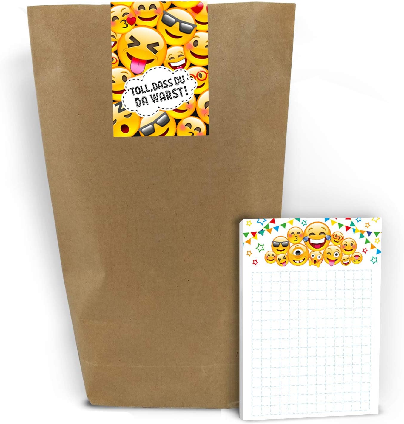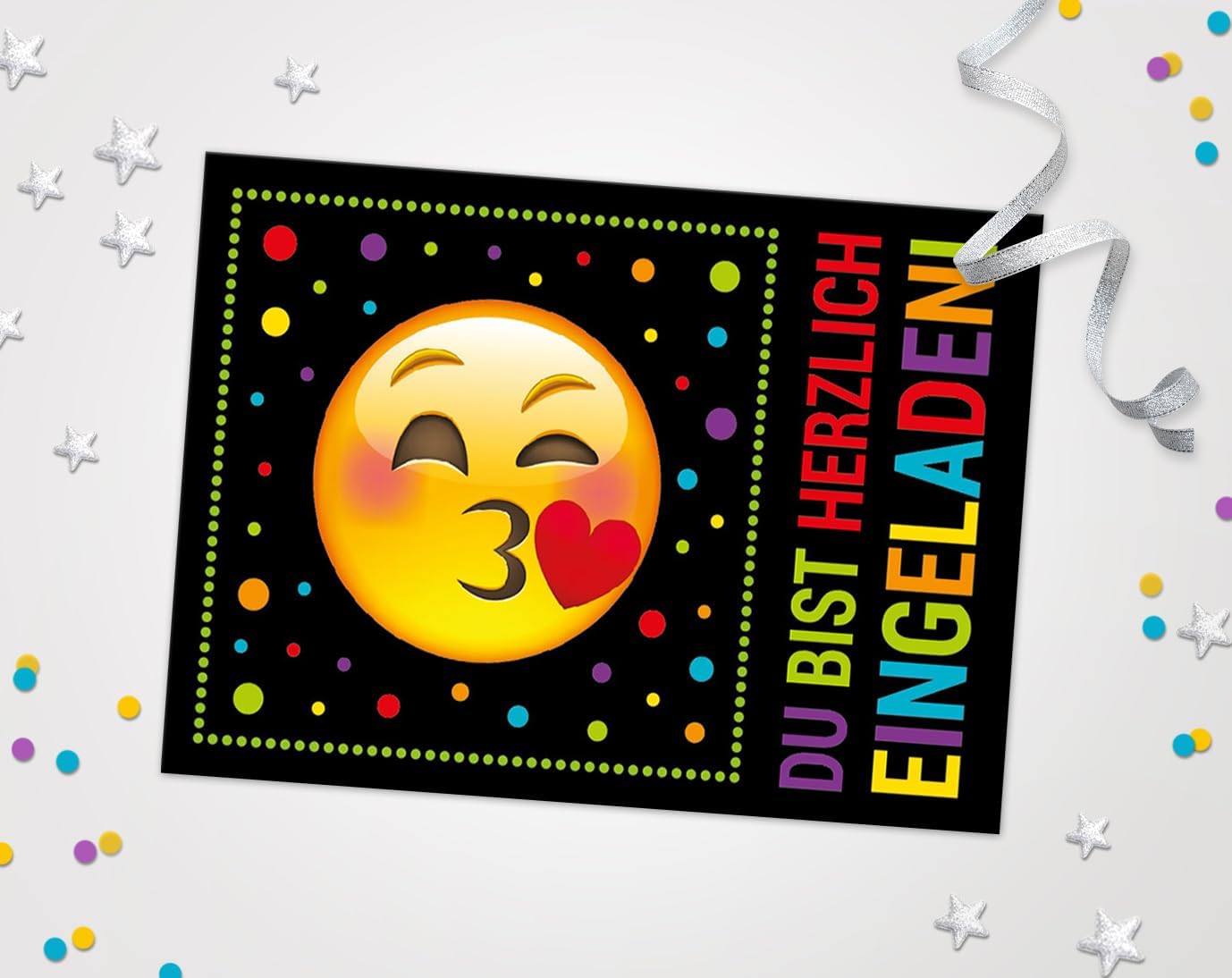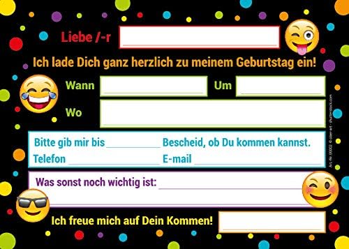 CONTENUTO: 6 biglietti invito, 6 buste, 6 mini block notes, 6 sacchetti con 6 adesivi. BIGLIETTI E BUSTE: I biglietti d'invito sono moderni e progettati con molti dettagli. Sul retro troverai i campi prestampati da compilare. La carta ha una dimensione di 10,50 cm x 14,80 cm (stampa immagine 300 gr/m). La busta ha una dimensione di 11,40 cm x 16,20 cm (stampa da 80 g/m²) ed è autoadesiva (con strisce staccabili). BLOCCHI: Il blocco note ha una dimensione di 7,4 x 10,5 cm (DIN A7) e dispone di 25 fogli. SACCHETTI CON ADESIVI: I sacchetti di carta misurano 14 cm x 22 cm. Gli adesivi misurano 5,2 x 14,8 cm. I sacchetti sono ideali da riempire con piccoli sacchetti per le feste di compleanno dei bambini. MADE IN GERMANY: i biglietti, le buste, gli adesivi, i blocchi e i sacchetti sono stati prodotti in Germania. Abbiamo anche set da 8, 10 e 12 disponibili.