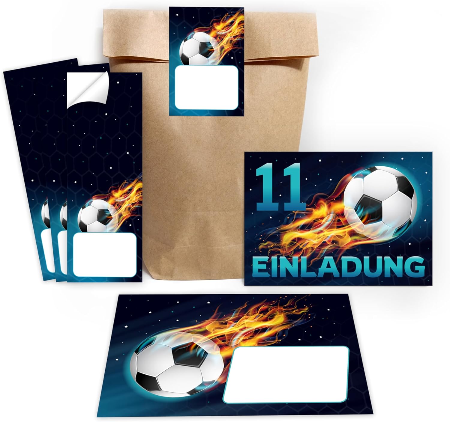 CONTENUTO: 6 biglietti d'invito + 6 buste + 6 sacchetti regalo/naturali + 6 adesivi PRATICO: con questo set avrai non solo inviti con buste abbinate, ma anche sacchetti regalo per bomboniere e fantastici adesivi regalo da scrivere. CARTE: gli inviti sono moderni e curati nei dettagli. Sul retro troverai i campi prestampati da compilare. I biglietti d'invito sono molto stabili, hanno formato A6 (10,50 cm x 14,80 cm), stampa di immagini di alta qualità da 300 g/m² e sono rivestiti con vernice UV per la finitura. BUSTE AUTOADESIVE: la busta ha una dimensione di 11,40 cm x 16,20 cm, stampa 80 g/m ed è autoadesiva (con strisce staccabili). BUSTE REGALO: le buste in carta hanno una dimensione di 14 x 22 x 5 cm. I sacchetti per feste (sacchetti con fondo incrociato) sono molto adatti per confezionare piccole bomboniere o dolci per gli ospiti. ADESIVI: gli adesivi misurano 5,2 x 14,8 cm. Tu o tuo figlio potete scrivere "Grazie" e "Piacere che tu fossi lì!" sugli adesivi. oppure scrivi il nome dell'ospite. OCCASIONE: il set da festa è molto adatto per una festa di compleanno o una festa di compleanno. Puoi utilizzare questi biglietti anche come inviti a battesimi, feste notturne, feste a tema, cinema o feste in piscina.