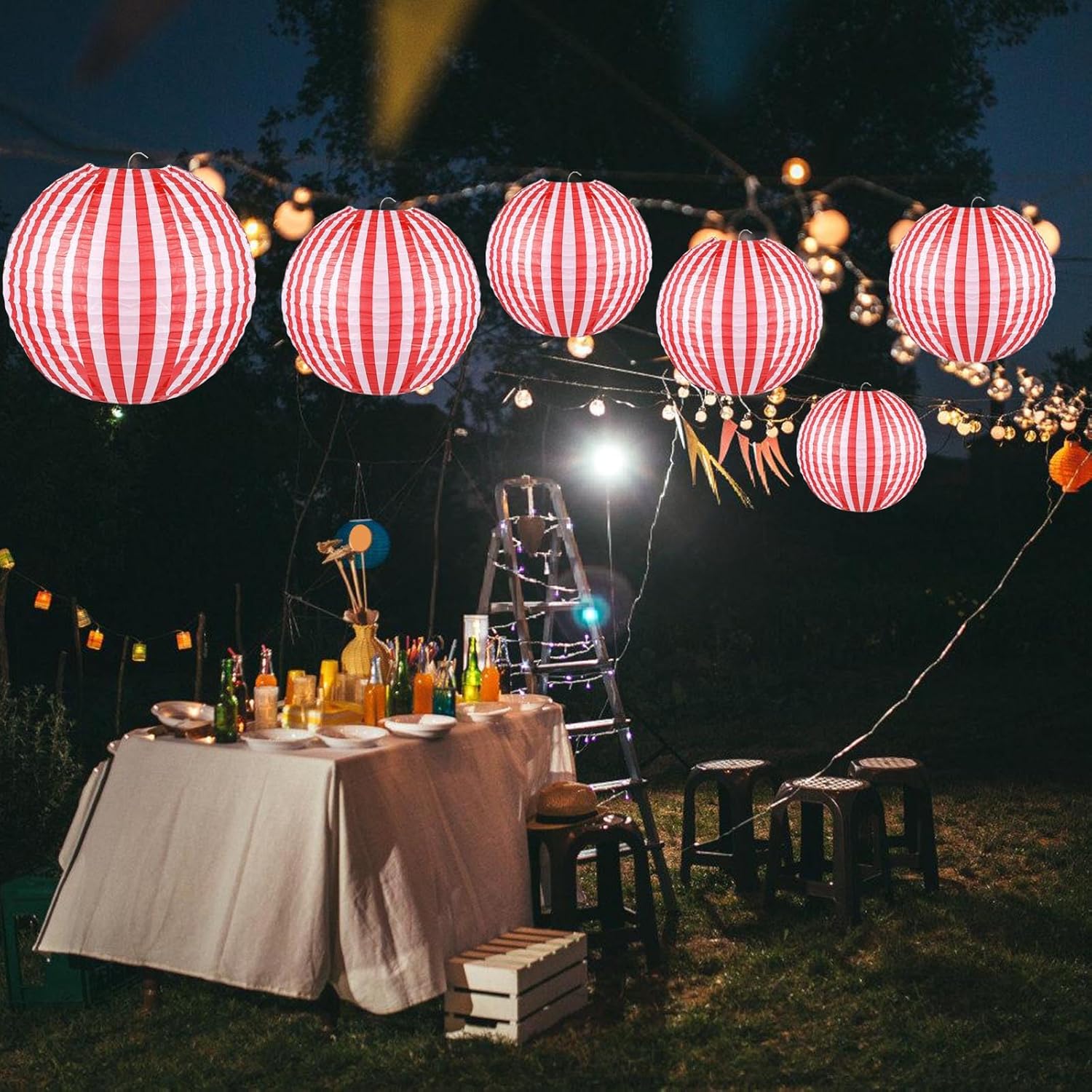 Perfette per la decorazione di feste di compleanno, configurazioni di nozze, feste e riunioni all'aperto, queste pendenze portano un fascino vivace in ogni occasione. Migliora la tua festa con il nostro set di 6 nastri di carta a righe, di carta amichevole, facile e riutilizzabile. Per proprietari di case, pianificatori di feste, organizzatori e appassionati di festival, per aggiungere un tocco di festival a qualsiasi riunione. Questa pendenza presenta un colore classico e un design a righe. Questi bordi hanno un grande diametro e una struttura in carta leggermente intrecciata, che è facile da piegare e risparmiare spazio. Trasforma facilmente la decorazione con queste pendenze, che servono sia come illuminazione funzionale che come decorazione accattivante.