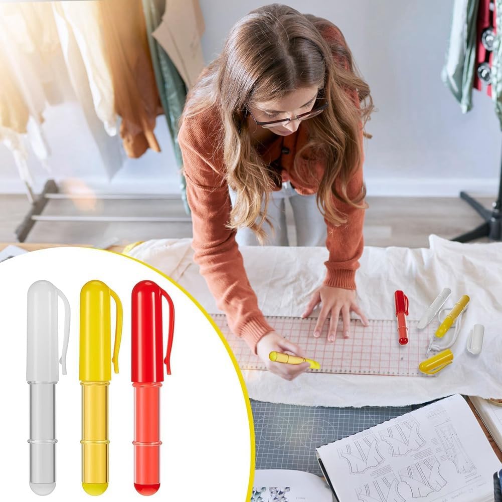 Conservazione pratica: i pennarelli a in tessuto sono progettati per un uso a lungo termine e offrono pratiche possibilità di conservazione; i tappi per penna proteggono i pennarelli secchezza e garantiscono una lunga durata. Questa funzione consente più per un periodo di tempo più lungo Strumento di design versatile: i pennarelli per tessuti sono strumento indispensabile per i costumisti, che consente loro di applicare segni temporanei su tessuti e altri materiali. Grazie alla loro versatilità, sono adatti per una vasta gamma di applicazioni artistiche e di design Opzioni multiple di colore: ogni confezione contiene 6 pastelli: giallo, rosso e ; questi colori vivaci offrono versatilità e ti permettono di esprimere efficacemente la tua creatività. Poiché ogni penna è inclusa una confezione separata, garantisce che rimanga intatta Facile da cancellare: disegnare segni con il pennarello a consente una facile rimozione; basta pulire le macchie a mano o con un panno e non lasciare segni sul panno. Questa funzione garantisce che i tuoi progetti possano essere facilmente modificati o eliminati lasciare residui permanenti Ampia gamma di applicazioni: i gessetti cancellabili possono essere applicati su superfici, tra cui cotone, filato, fibre sintetiche, pelle e altro; la loro versatilità li rende strumento prezioso per le persone