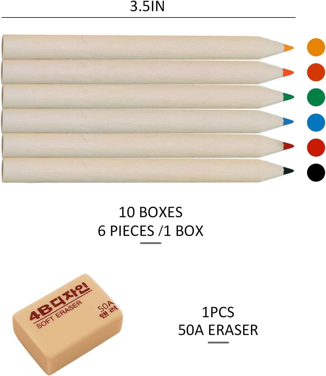 ✏️ 【Incluso nella confezione】 Riceverai 10 scatole da 60 matite colorate e 1 gomma, ogni scatola ha 6 matite colorate, quantità sufficiente per soddisfare le esigenze di utilizzo e sostituzione dei bambini e la gomma può facilmente cancellare i segni della matita . ✏️ 【Misura adatta】 La dimensione di questa mini matita colorata è di 3,5 pollici, il design compatto è molto adatto ai bambini, è più comodo da tenere e può essere facilmente inserito nell'astuccio. ✏️ 【Scatola separata】 Questa matita colorata ha una scatola separata, comoda per conservare le matite colorate e può essere riutilizzata per garantire che le matite colorate non vengano danneggiate e perse. ✏️ 【6 colori】 Le matite colorate sono disponibili in 6 colori per scatola, i bambini possono usarle per disegnare, i colori colorati stimoleranno l'immaginazione dei bambini, libereranno una creatività di disegno illimitata, è lo strumento migliore per il loro disegno. ✏️ 【Regalo perfetto】 È un regalo perfetto per i bambini, molto adatto a scuola, asilo, famiglia, feste di compleanno, Natale e altre scene di eventi, un regalo sano e originale, che soddisfa bambini e genitori.