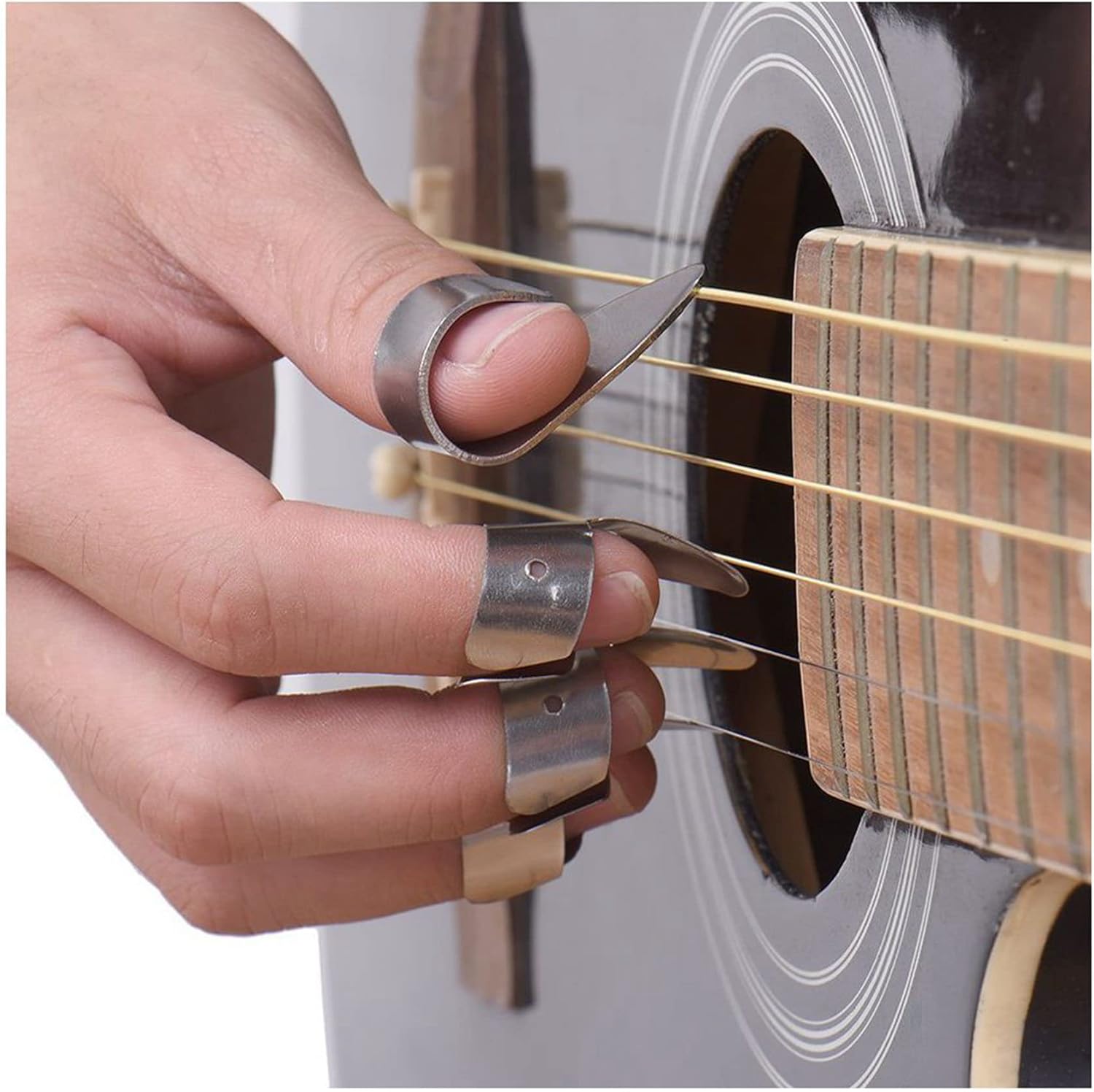 dimensione: pollice: 3,6 x 1,6 x 1,4 cm colore: Adatto per suonare la chitarra rock. Indice: 3,4 x 1,8 x 1,6 cm