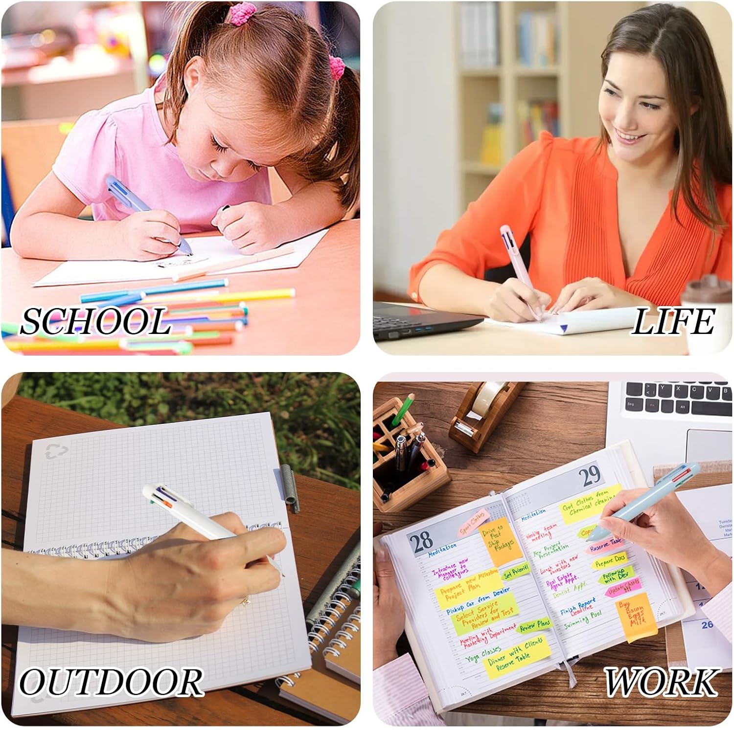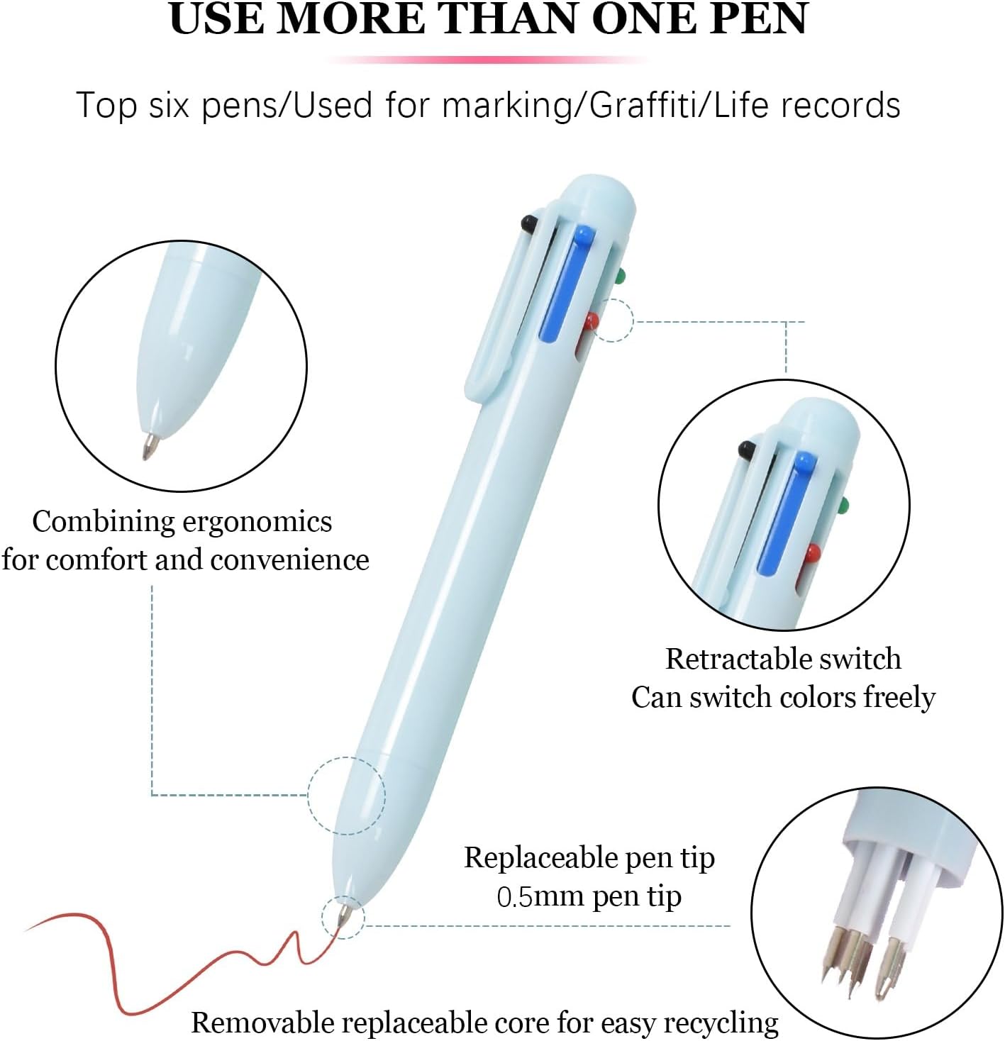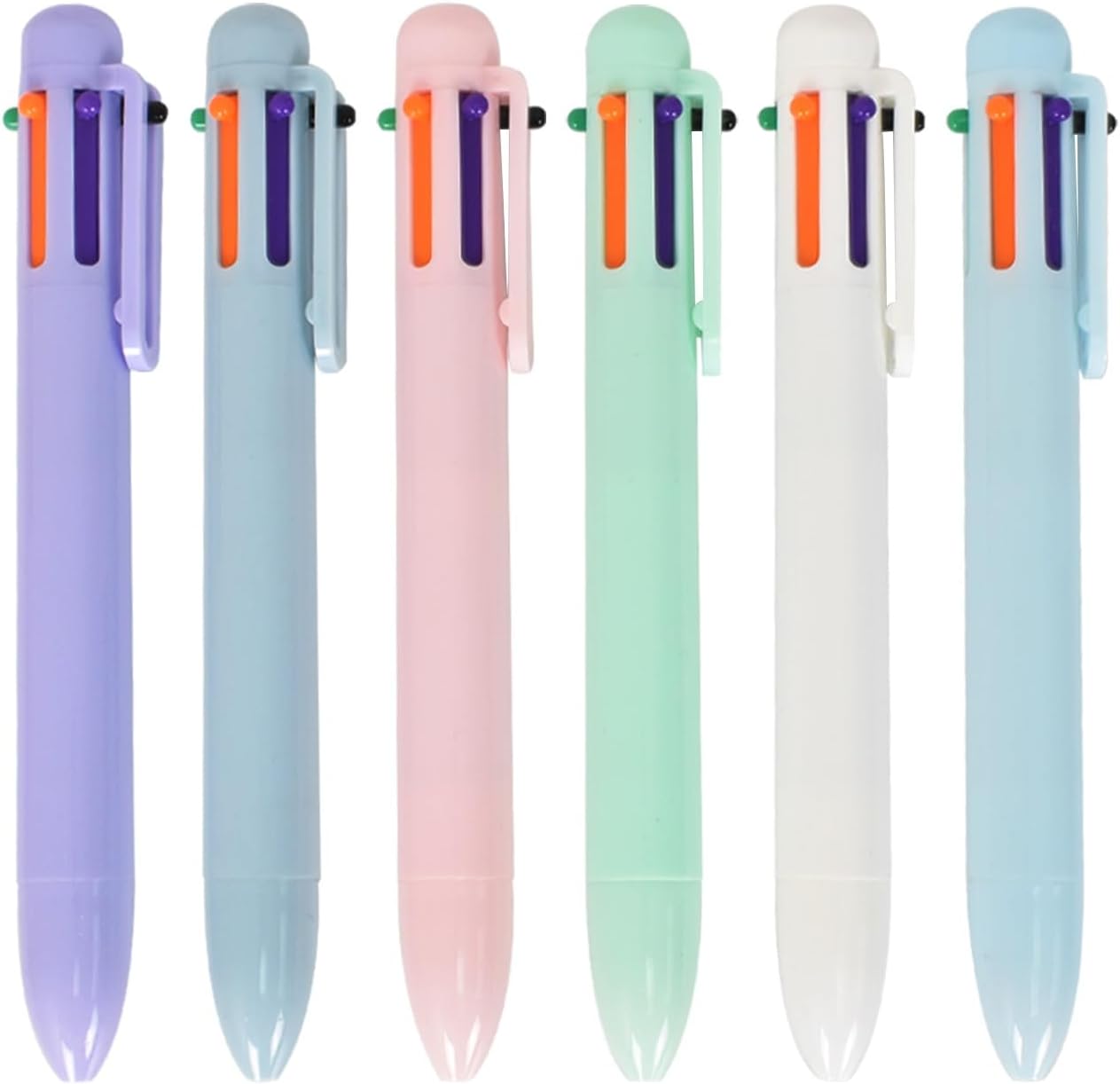 La confezione include:questo set comprende 6 penne colorate, che soddisfano le esigenze di scrittura personale e presa di appunti. Condividili con amici, compagni di classe o colleghi. Un set di penne pratico e divertente per l'uso quotidiano o come regalo premuroso. Dimensioni: con una lunghezza di 14 cm, queste penne sono compatte e portatili e si adattano facilmente a portafogli, tasche e altro ancora. La punta fine da 0,5 mm offre una scrittura fluida e uniforme senza sbiadire. L'estremità della penna ha una comoda clip da tasca che può essere fissata a diari o borse per un facile utilizzo. Penna a sfera 6 in 1: ogni penna a sfera multicolore è disponibile in 6 colori tenui. Con una leggera pressione puoi passare istantaneamente a qualsiasi colore, rendendolo ideale per contrassegnare, annotare e decorare in diversi colori. Scrittura fluida: goditi un'esperienza di scrittura fluida e coerente con le nostre ricariche di inchiostro di alta qualità. L'inchiostro scorre in modo uniforme, fornendo prestazioni di scrittura robuste e durevoli. Multiuso: perfette per varie occasioni, queste penne sono ideali per scrivere, scarabocchiare, disegnare, incollare foto, colorare e fare schizzi. Cattura i tuoi preziosi pensieri, ricordi ed esperienze divertenti con le nostre penne multicolori.