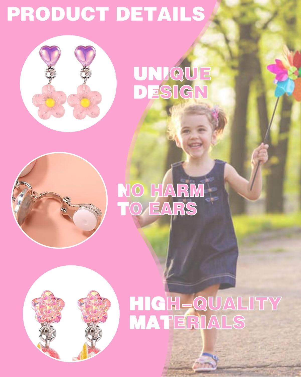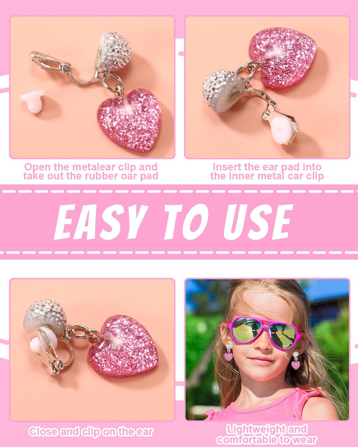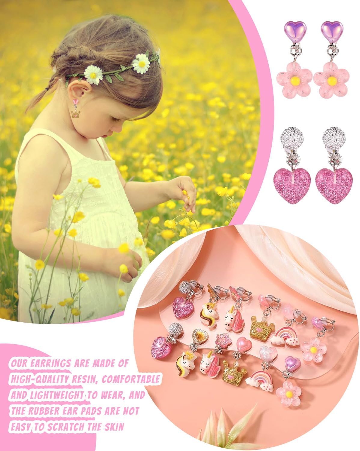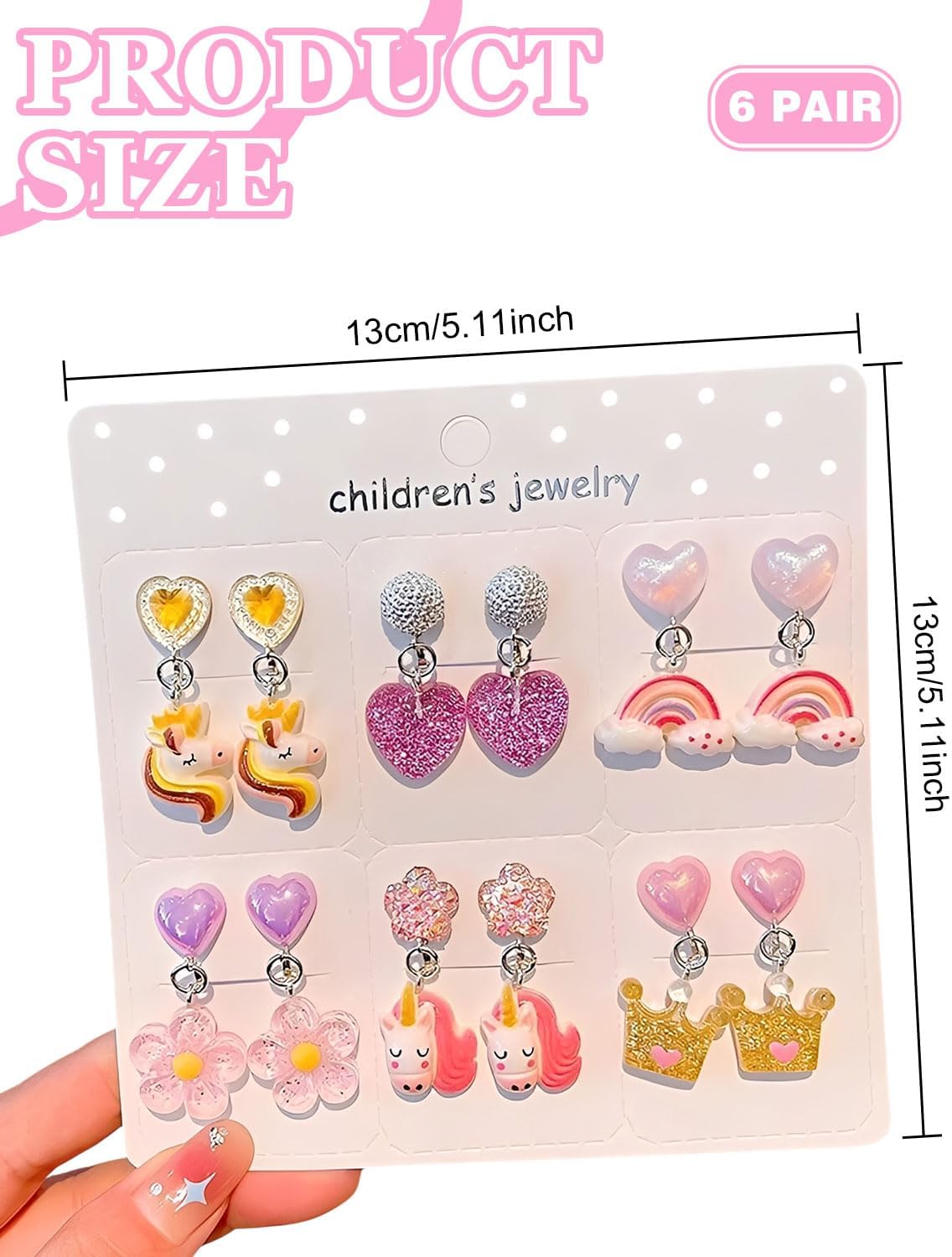 Il set contiene: 6 paia di orecchini a clip colorati e di diversi stili per bambine. Gli stili sono brillanti e affascinanti, tra cui orecchini a clip a forma di unicorno, orecchini a clip arcobaleno, orecchini a clip a corona, orecchini a clip a forma di fiore e orecchini a clip a forma di amore. Materiali di alta qualità: I nostri graziosi orecchini a clip per bambini e bambine sono realizzati in metallo di alta qualità. Sono leggeri e comodi, comodi da indossare e non contengono sostanze nocive come piombo, nichel, cadmio, ecc. Facile da usare: I nostri esclusivi orecchini a clip per ragazze sono progettati con una chiusura a clip, che li rende facili da indossare e da togliere. Sono perfetti per chi non ha i buchi alle orecchie o per chi ama gli orecchini a clip. I nostri graziosi orecchini a clip a forma di animale sono dotati anche di un morbido cuscinetto in gomma antiscivolo per mantenerli saldamente in posizione e alleviare la pressione sui lobi delle orecchie. Occasioni adatte: questo set di gioielli per ragazze include orecchini a clip, un regalo perfetto per donne di tutte le età. È adatto a qualsiasi occasione, tra cui Natale, Giorno del Ringraziamento, Festa della Mamma, San Valentino, Anniversario, Fidanzamento, Festa, Festività, Matrimonio e uso quotidiano. Servizio Clienti: Per qualsiasi domanda sui nostri prodotti, potete contattarci in qualsiasi momento e vi risponderemo entro 48 ore.