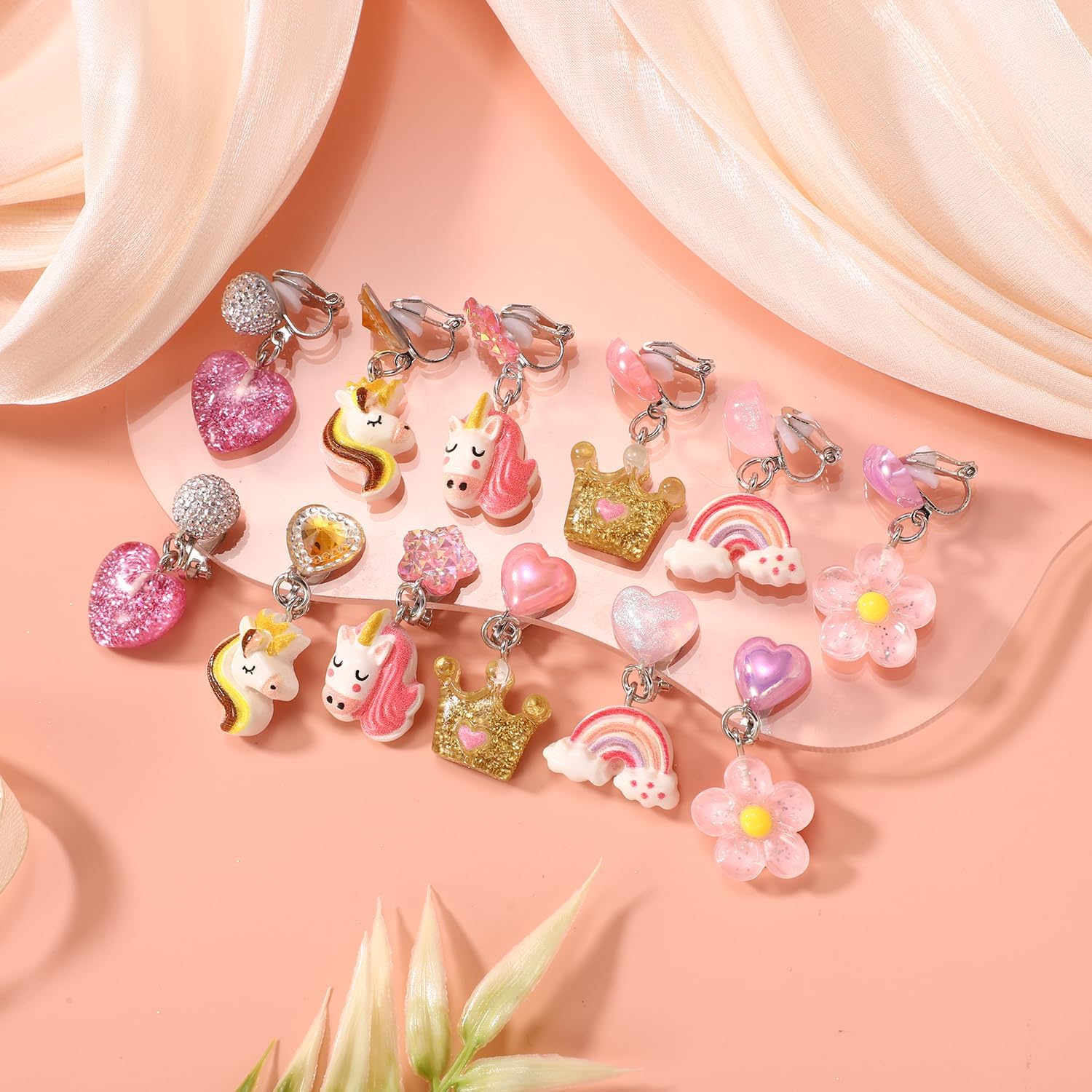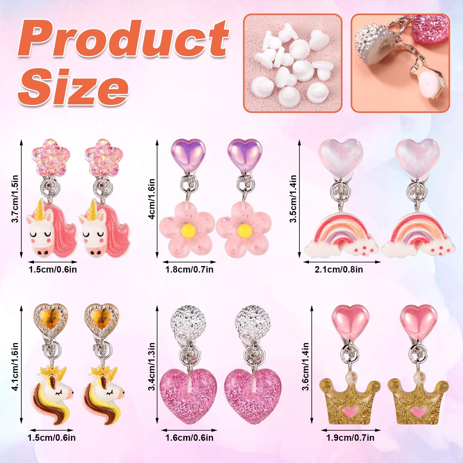 6 Paia di Orecchini Pendenti con Clip, Orecchini con Clip in Resina con Orecchini con Clip da Principessa Senza Fori per Vestire Accessori per Gioielli da Principessa