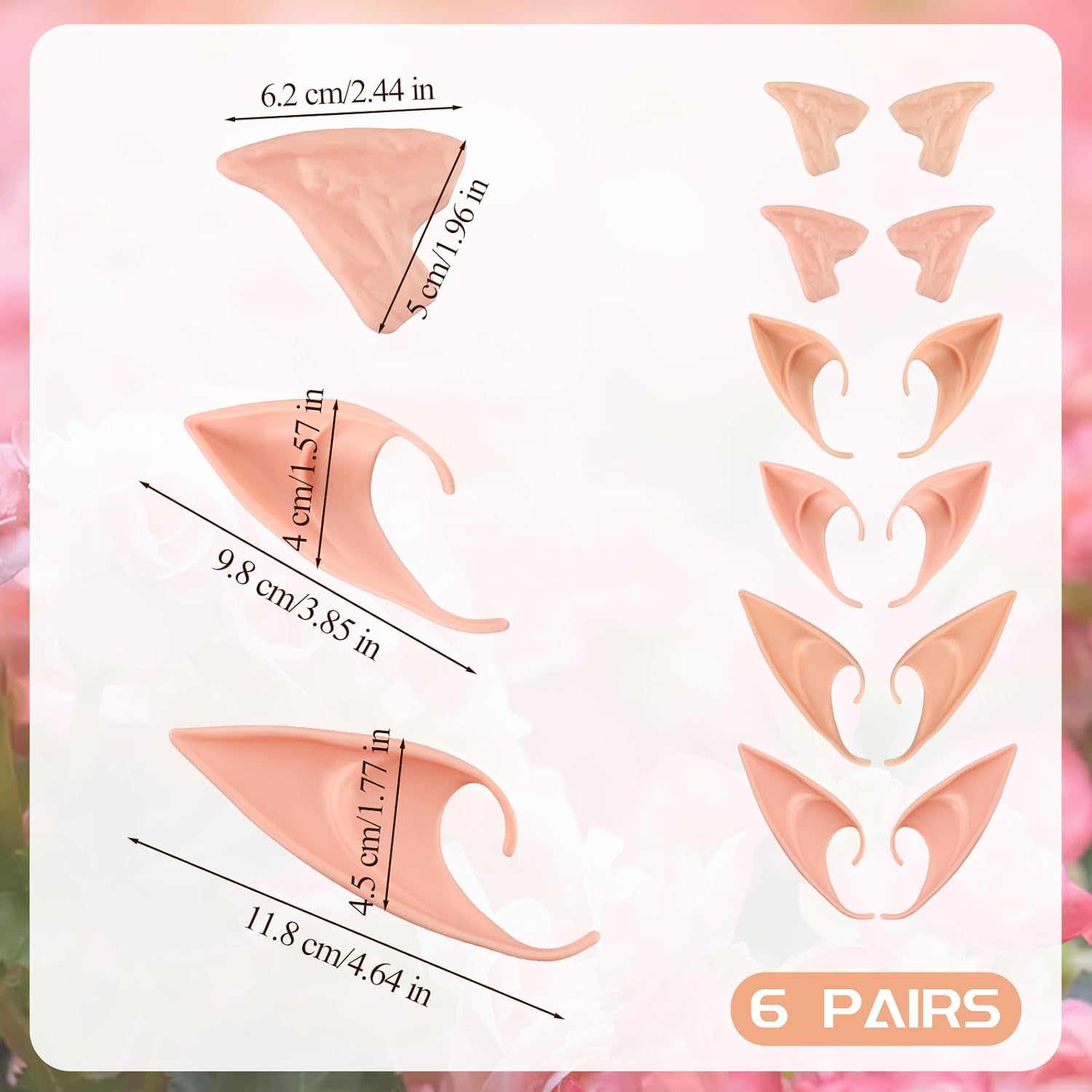 6 Paia Orecchie da Elfo, Orecchie a Punta, Orecchie da Fata, Orecchie da Elfo Lattice per Cosplay, Mascherata, Halloween, Mardi Gras, Decorazioni per Feste (Toni Della Pelle + Rosa)