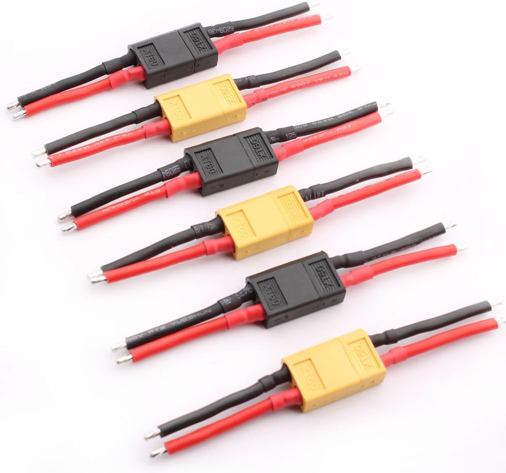 ▲Design di sicurezza: fornisce una connessione solida e affidabile, un design dell'estremità del connettore riutilizzabile per l'inserimento e la rimozione dall'alloggiamento. ▲contatto in rame di buona qualità di saldatura XT60 a bassa resistenza con cavo da 53 mm 14 awg ▲Risparmia tempo e fatica durante la creazione da zero e la saldatura dei fili nei connettori, facile da usare. ▲Materiale di alta qualità: connettori XT60 femmina e maschio realizzati con connettori circolari placcati in oro e materiale in nylon ad alta temperatura, sicuri, ecologici, durevoli. ▲La confezione include: 3 paia di connettori maschio femmina XT60 (gialli), 3 paia di connettori maschio femmina XT60 (neri).
