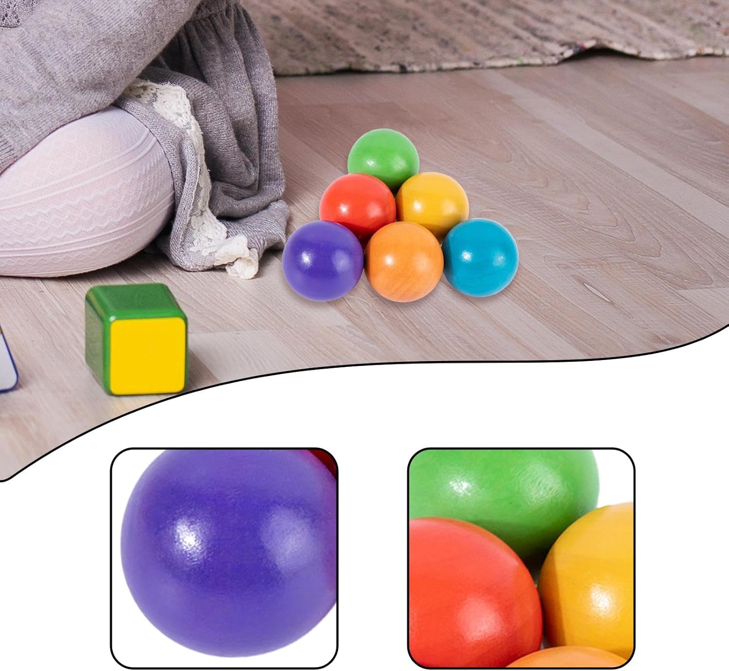 【Caratteristica】: Il giocattolo per l'ordinamento dei colori è composto da 6 palline di legno colorate, giocattoli per l'apprendimento dei colori, con un diametro di 1,77 pollici 【Ottimo regalo】: Questi giocattoli con palline di legno aiutano a imparare i colori. Catturano l'attenzione dei bambini. Li e i bambini si divertono. 【Educativo】Queste palline di legno arcobaleno sviluppano la coordinazione occhio-mano, il pensiero logico, la creatività, il riconoscimento dei colori, la capacità di immaginazione spaziale 【Selezione dei colori】: Giocattoli con palline di legno, i più piccoli possono imparare il colore delle palline. È ottimo per le loro piccole mani. 【Giocattolo educativo】: le palline arcobaleno in legno sono un ottimo giocattolo educativo, che permette di provare diversi colori, ordinare e contare