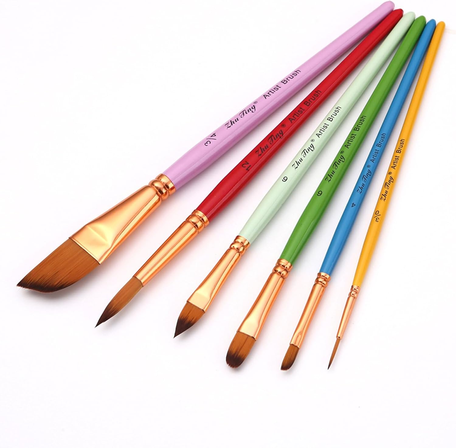 Meraviglioso regalo. Per principianti, studenti, lavoratori artistici e artigiani e artisti professionisti. Facile da lavare con acqua corrente e acqua calda. Consigli: prima dell'uso, si prega di immergere in acqua a bassa temperatura per alcuni minuti VERSATILITÀ, PRATICITÀ. 6 tipi di pennelli ad acquerello per varie esigenze di pittura e colorazione. Manico in legno antiscivolo, offre una presa comoda. Soddisfa facilmente varie esigenze di dettaglio, illustrazione, rivestimento, miscelazione Facile da usare. Legno di alta qualità e setole in nylon molto grande assorbimento d'acqua, morbido e facile da colorare. Puntali in lega antiruggine sigillati estremamente saldamente che non fuoriescono o si allentano facilmente PENNELLO PROFESSIONALE. Pennelli professionali per pittura artistica: punta rotonda, piatta, obliqua, punta fine. Adatto per principianti, studenti, bambini e hobbisti. Adatto per principianti, studenti, bambini e hobbisti. Ogni pennello ha le sue dimensioni contrassegnate sul manico, facile da differenziare e utilizzare Ampia gamma di applicazioni. Set di pennelli professionali per la maggior parte dei tipi di pittura come pittura su viso e corpo, arte murale, pittura a olio/acquerello/acrilico/guazzo, pittura con stencil, pittura su modellini in scala, arte roccia/ceramica/pittura su pietra