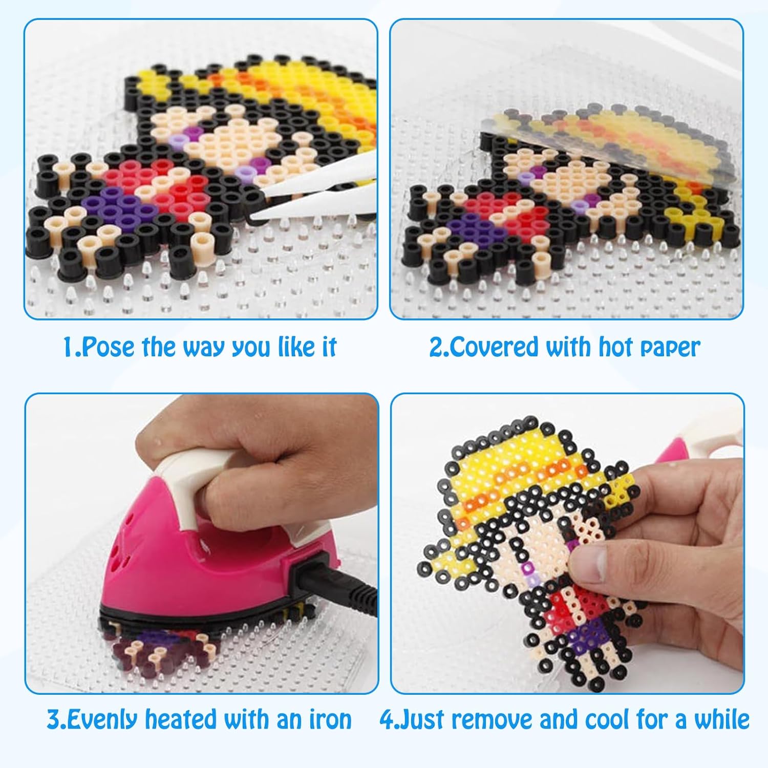 Materiale di alta qualità: gli stencil per perline sono realizzati in materiale PE o EVA di alta qualità con eccellenti proprietà abrasive. Il materiale PE o EVA utilizzato dalle perline da stiro non è solo leggero, ma non si deforma facilmente in modo che rimanga in buone condizioni anche dopo un uso prolungato. ➤ Promuovere la creatività: le piastre di perline da stirare consentono ai bambini di creare forme diverse o modelli illimitati in base alle proprie idee. Questo tipo di piastra di perline da stiro può migliorare le capacità operative, la capacità di coordinazione e il pensiero tridimensionale dei bambini durante le attività manuali. Adatto per tutte le età: le perline sono perfette per bambini e adulti, ideali per la casa, la scuola e per tutti i tipi di feste. Che si tratti di feste di compleanno, Natale, Pasqua o altri stencil con perline da stirare garantiscono un divertimento creativo senza fine. ➤ Multifunzione: le perline da stirare possono migliorare le capacità di riconoscimento dei bambini, ad esempio i colori, e migliorare la coordinazione occhio-mano, la capacità di riconoscimento e il senso del tatto. Le piastre di perline da stirare possono stimolare la creatività dei bambini e aiutarli a migliorare le loro abilità manuali ed è adatta anche per adulti. Riutilizzabile: la piastra di perline può essere riutilizzata molte volte. Dopo ogni utilizzo, le perle da stirare possono essere riportate al suo stato originale con una semplice pulizia, che è sia ecologica che economica. Non importa se devi cambiare spesso il modello o conservarlo per lunghi periodi di tempo.