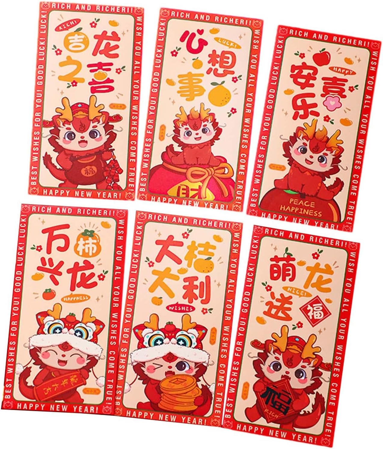 【Alta qualità】: le buste rosse per il Capodanno cinese sono realizzate in carta, resistenti e stabili. Ogni tasca portasoldi misura 16,6 x 8,6 cm/6,54 x 3,39 pollici, il che la rende la dimensione perfetta per contenere denaro o buoni regalo. 【Design speciale】: ricevere buste rosse durante il nuovo anno è un'antica usanza, con il colore rosso che simboleggia auguri e la buona fortuna per il prossimo anno. Queste buste non sono adatte solo per i festeggiamenti di Capodanno, ma sono apprezzate anche per compleanni e matrimoni. 【Tasche di carta festive】: durante il Festival di Primavera, è tradizione che genitori, nonni, parenti e persino amici intimi e regalino soldi in buste rosse alle più giovani. Queste buste rosse sono perfette per continuare questa tradizione. 【Simbolico e significativo】: il colore rosso è un simbolo di fortuna e ricchezza nella cultura cinese, motivo per cui Hong Bao viene utilizzato durante il capodanno cinese e altri eventi celebrativi. Queste buste rosse sono di un rosso e incarnano questi significati di buon auspicio. 【2024 Anno del Drago】: la confezione include 6 adorabili buste rosse a tema drago dei cartoni animati, perfette per l'Anno del Drago. Sono progettati con un effetto cartone animato unico e creativo, che li rende un modo divertente e festoso per fare regali durante il capodanno cinese.