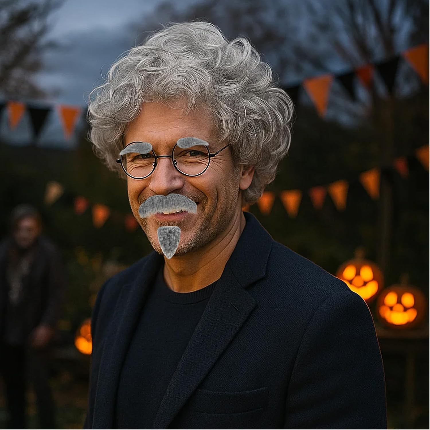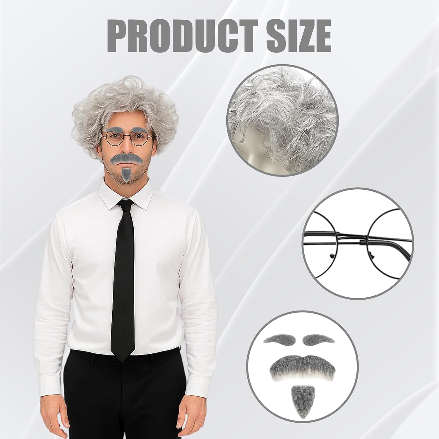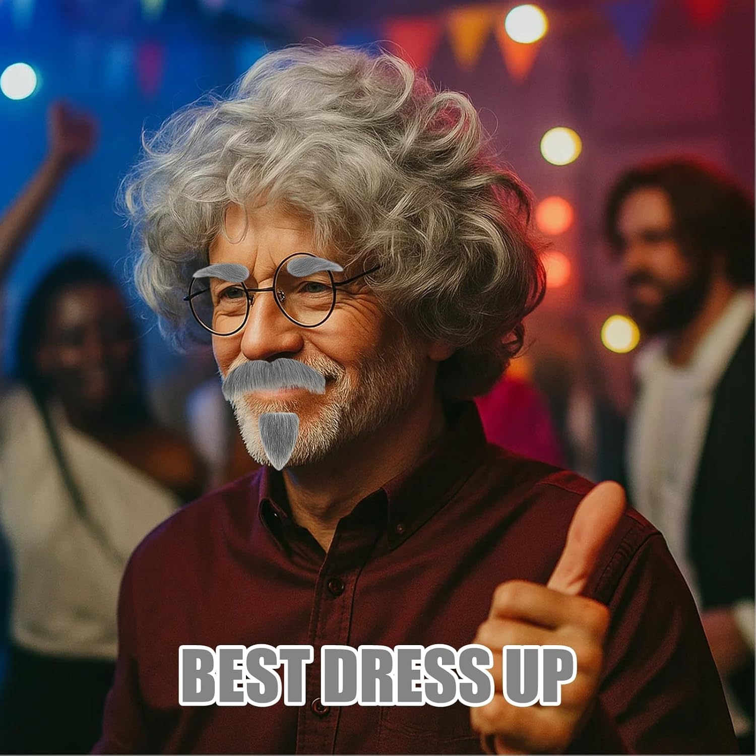 Set completo di costume da nonno: questo set di 6 pezzi include una parrucca grigia da uomo, una cuffia per parrucca, occhiali e barba e sopracciglia, tutto ciò di cui hai bisogno per un aspetto realistico come un vecchio; ideale per diversi giochi di ruolo ed eventi Materiale di alta qualità: la parrucca e la barba del nonno sono realizzate in morbida fibra sintetica resistente, comoda da indossare e dona un aspetto naturale; gli occhiali sono leggeri e si adattano in modo sicuro AMPIA APPLICAZIONE Perfetto per Halloween, Carnevale, spettacoli teatrali, feste a tema e cosplay; Trasformati in un vecchio, scienziato pazzo o un personaggio a tua scelta Facile da usare: le parti autoadesive per barba e sopracciglia sono facili da applicare e rimuovere; la parrucca si adatta saldamente e offre un comfort confortevole per lunghi periodi di tempo Design realistico: i capelli morbidi e grigi della parrucca e la barba donano un autentico look Old Man; preparati per momenti indimenticabili e diventerai il centro di ogni festa