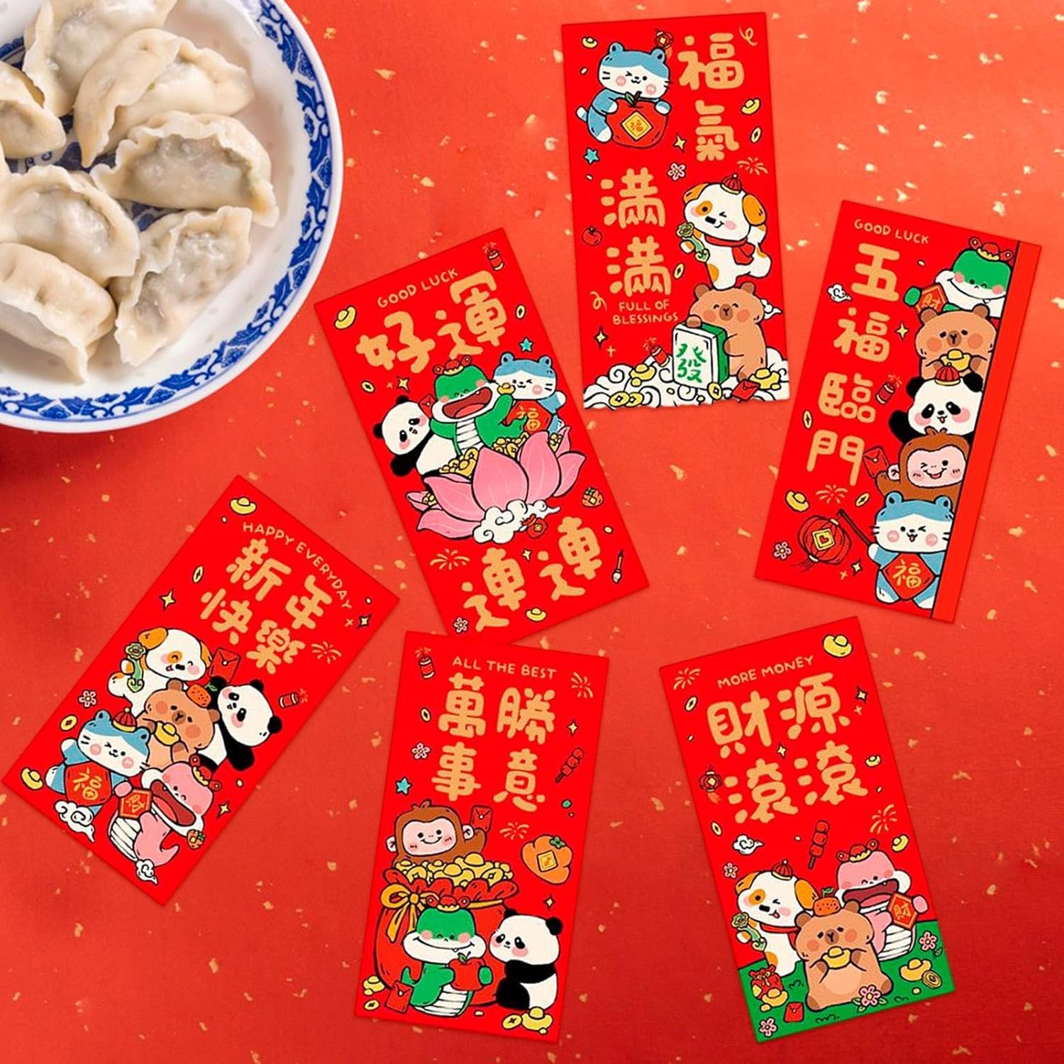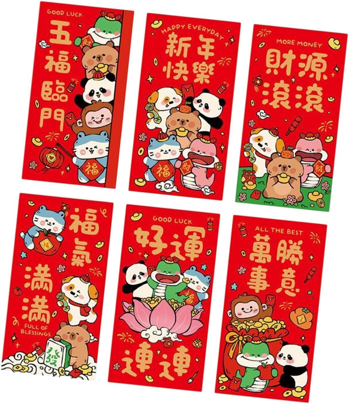 【Design unico disegnato a mano】: queste buste rosse presentano un tipo disegnato a mano con adorabili illustrazioni di animali dei cartoni animati. Ogni busta è decorata con auguri festivi, creando un'atmosfera giocosa e celebrativa ideale per il capodanno 【Set di confezioni convenienti】: Ogni set include 6 buste dal design unico, che offrono sia varietà che valore per i soldi. Ciò li rende ideali per acquisti all'ingrosso per soddisfare le tue esigenze di buste rosse durante le festività di Capodanno 【Uso versatile】: progettate come opzione universale, queste tasche rosse sono adatte a varie occasioni di Capodanno. Che si tratti di regali per i membri più giovani della famiglia o di scambi con gli amici, scelta ideale per tutte le tue esigenze festive 【Capacità di grandi dimensioni】: Misurando 17 cm x 9 cm, questi Hong Bao di Capodanno di grandi dimensioni possono facilmente contenere più denaro, soddisfacendo diverse quantità di denaro fortunato che desideri donare durante le celebrazioni 【Colori vivaci】: dominate da un rosso intenso, che simboleggia gioia e buona fortuna nella cultura cinese, queste buste di Capodanno sono ulteriormente impreziosite da testo dorato ed elementi decorativi. Questa sorprendente combinazione di colori assicura che si distinguano tra le altre buste rosse
