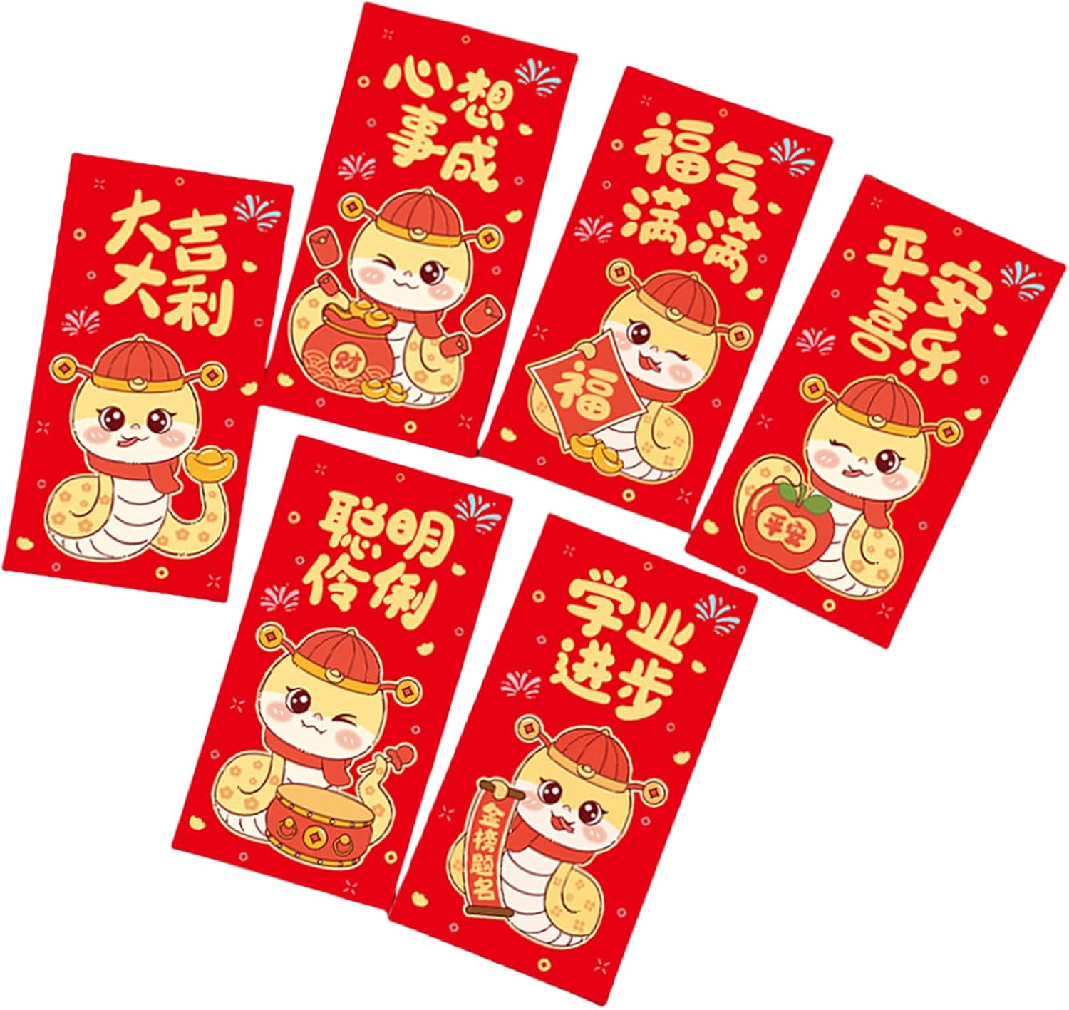 6 pezzi di lamina d'oro Capodanno pacchetti di denaro cartone animato 2025 temi buste rotative cinesi festa di primavera Hongbao