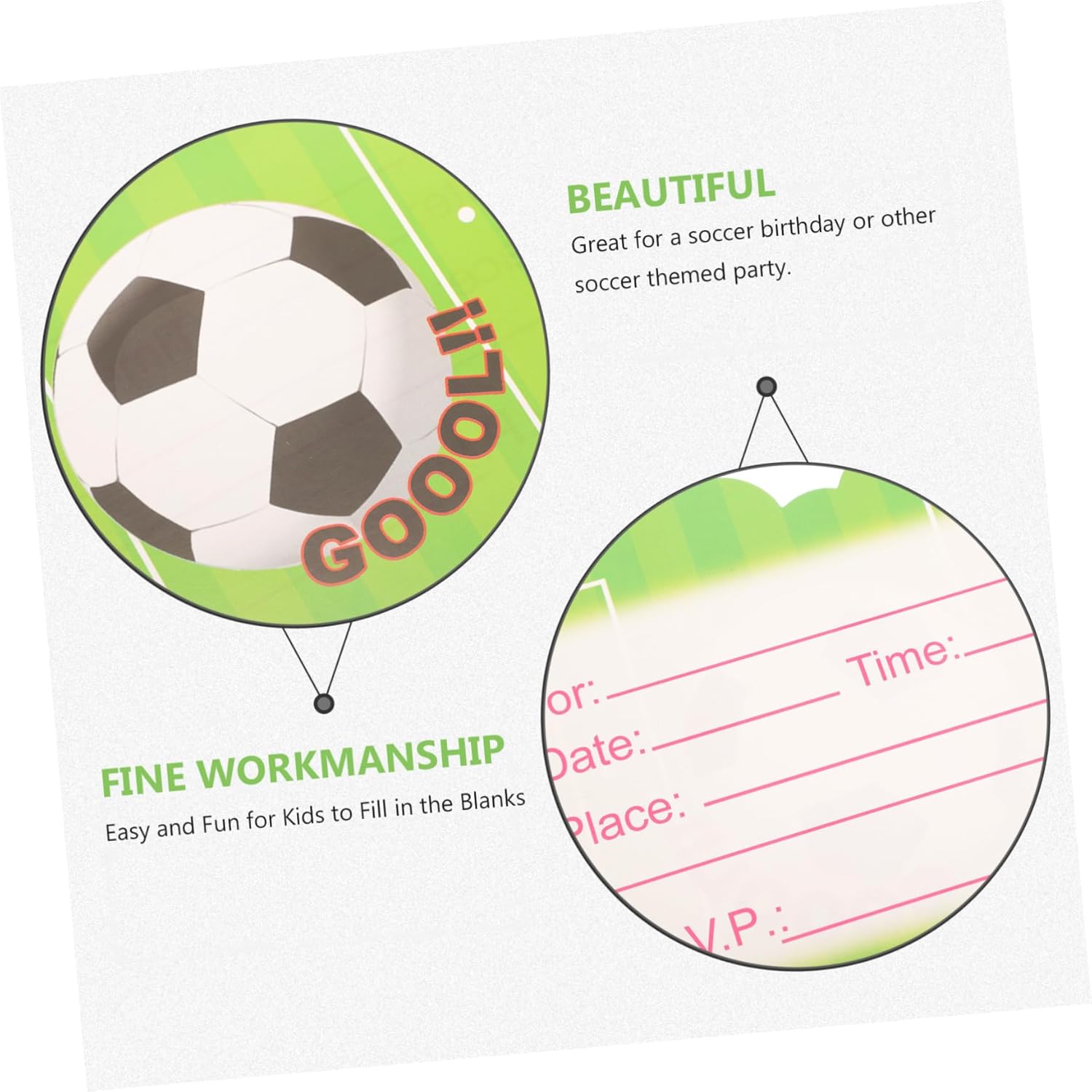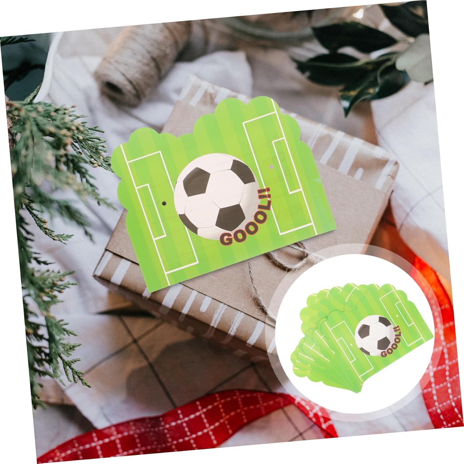 Biglietto di carta: design carino per i piccoli atleti. Decorazioni per feste: facili e divertenti per i bambini. Inviti per feste di calcio: realizzati con carta leggera e di alta qualità, la carta è atossica. Bomboniera: ideale per un compleanno calcistico o un'altra festa a tema calcistico.