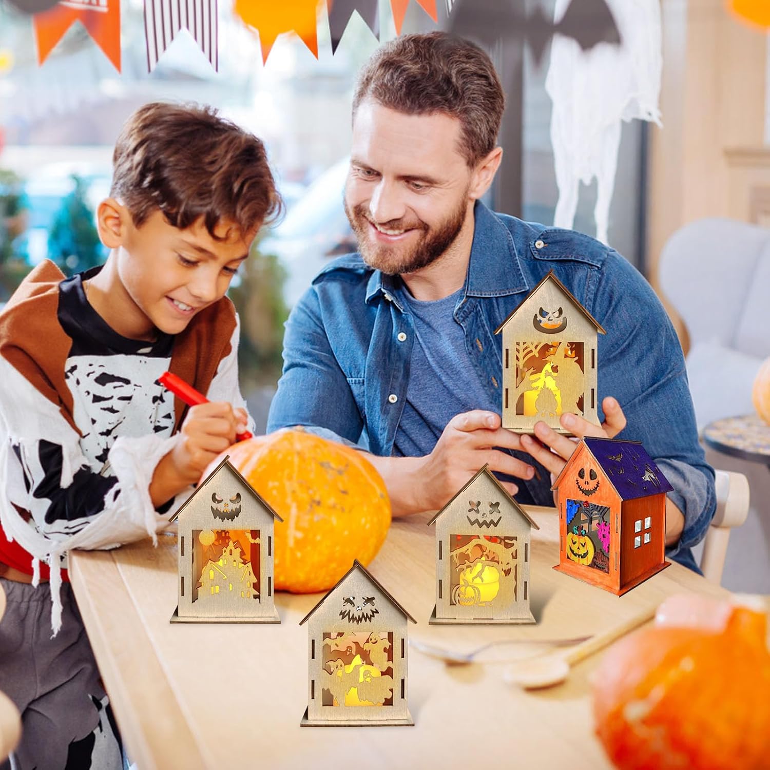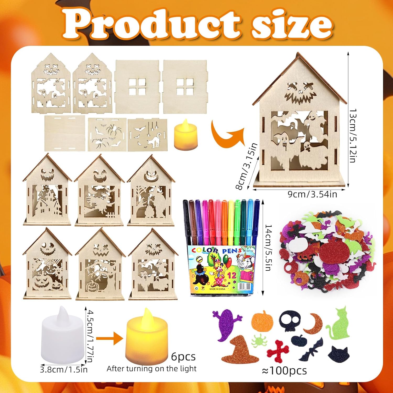 Kit fai da te per la casa di Halloween per bambini: riceverete 6 streghe in legno a forma di zucca con elementi classici di Halloween come zucche (6 design), 1 set di pennelli da pittura, 1 set di adesivi e 6 lampadine. Il set fai da te per la casa di zucca di Halloween è perfetto per la decorazione di Halloween con i bambini Materiale di alta qualità: il set di lanterne per Halloween è realizzato in legno di alta qualità, resistente e infrangibile, con bordi lisci. È pretagliato e scanalato, senza bisogno di attrezzi, perfetto per consentire ai bambini di creare una casa di Halloween sicura e fai da te Facile da montare: le candele a LED portacandele a forma di casa pre-tagliate possono essere facilmente assemblate per creare un incantevole tealight case che illuminerà ogni cameretta dei bambini Candele LED suggestive: la casa fantasma autunnale per bambini contiene 6 luci a LED a luce calda, alimentate a batteria (batterie incluse), realizzate in plastica, la luce può illuminare il modello della casa in legno, che è molto magico. Bambini la loro immaginazione dipingendo e decorando con pennarello, adesivi Creatività regalo di Halloween: illuminazione per la casa di zucca, il regalo ideale per Halloween per ragazzi e ragazze che possono creare la propria casa di Halloween unica. Quando è pronto, può essere utilizzato come punto focale perfetto per la festa di Halloween o la casa e aggiunge più colore all'Halloween