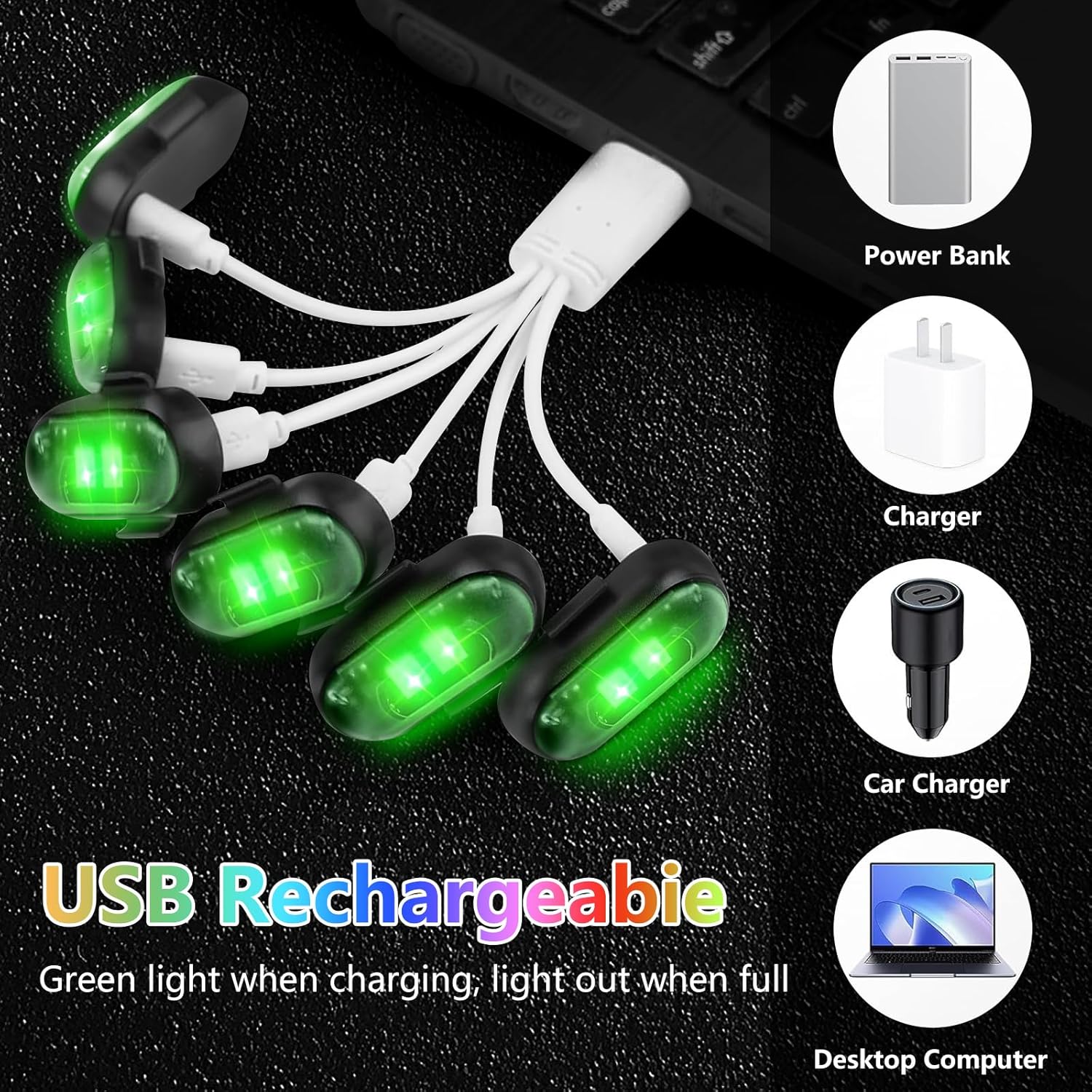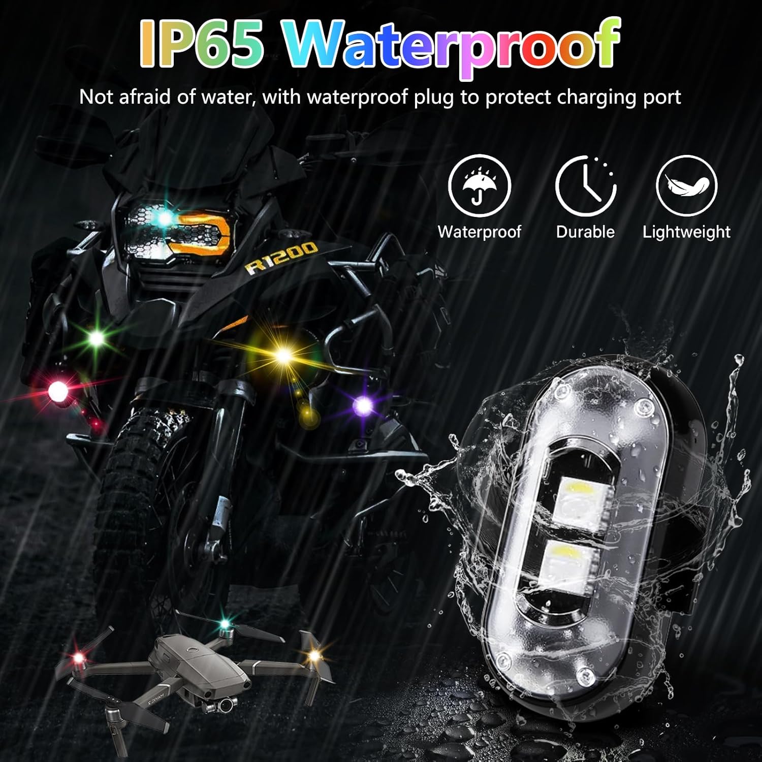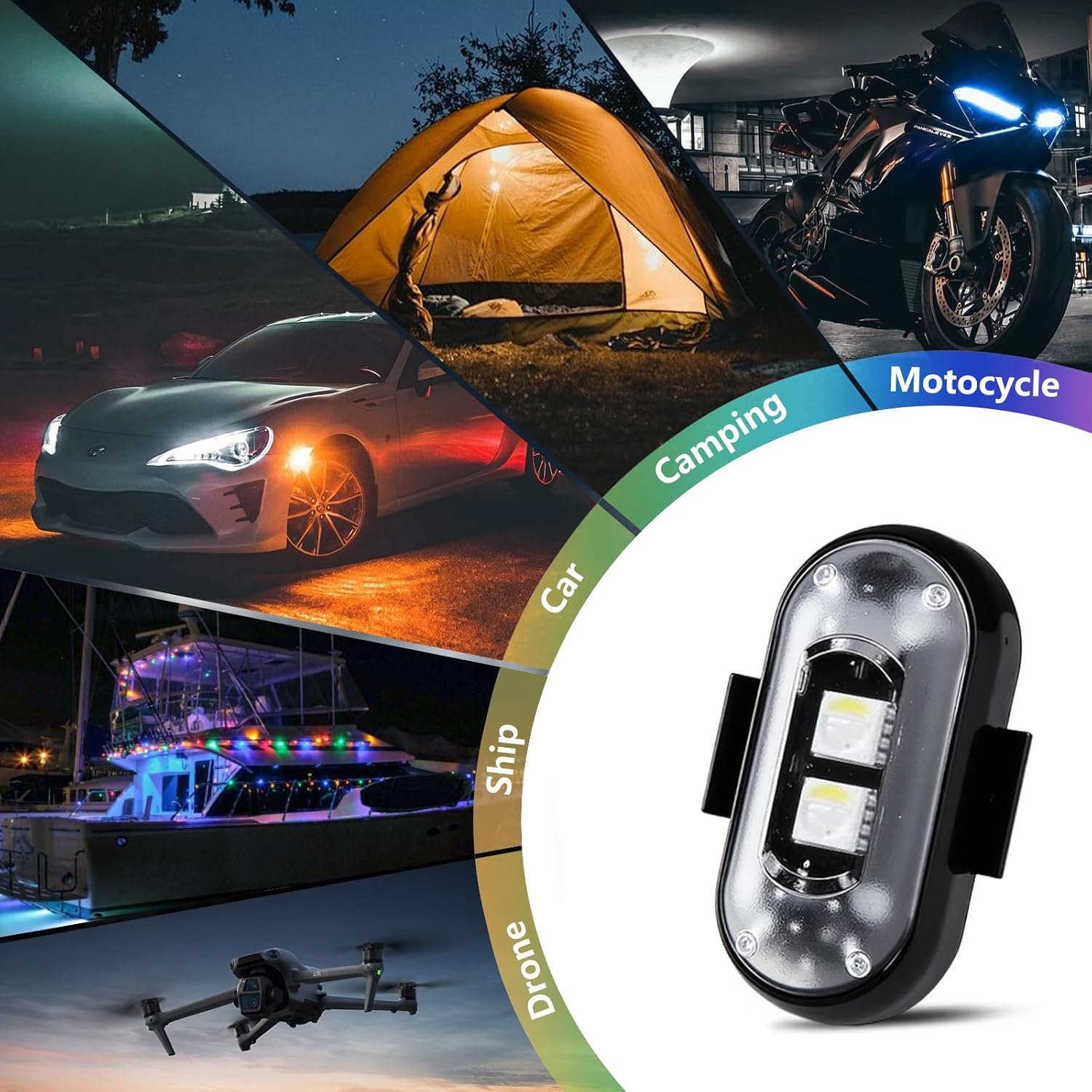 🌟 LUCI LED WIRELESS CON TELECOMANDO: le nostre luci LED wireless sono dotate di un comodo telecomando che consente di cambiare facilmente colori e modalità entro un raggio di 7 metri e dispone di una funzione di memoria. Per il primo utilizzo: caricare la luce per 5 secondi, scollegarla dalla presa di corrente e tenere premuto il pulsante [On]. La luce si accende per indicare l'avvenuta attivazione. 🌈 8 COLORI E 10 MODALITÀ: le luci volanti hanno 8 colori (bianco, rosso, blu, viola, verde, rosa, blu ghiaccio, giallo), i colori possono essere ruotati; e 10 modalità: lampeggiante di navigazione, lampeggiante forte, lampeggiante aereo, SOS, respirazione, lampeggiante lento, lampeggiante forte, lampeggiante di emergenza, luce fissa, lampeggiante ciclico. 🔋 LUNGA DURATA DELLA BATTERIA: siamo dotati di un cavo USB a 6 porte, puoi caricare contemporaneamente la torcia, che può essere caricata completamente entro 1 ora; Dopo la carica completa, la modalità lampeggiante può essere utilizzata ininterrottamente per più di 10 ore; la durata effettiva varia a seconda della modalità. 🔧 INSTALLAZIONE FACILE: questa torcia elettrica wireless può essere installata con due opzioni di montaggio: velcro o elastico. Il processo di installazione è rapido e semplice, non sono richiesti strumenti aggiuntivi: puoi installare queste luci flash a LED in pochi minuti. 🛡️ AMPIA APPLICAZIONE E IMPERMEABILE IP65: adatto a una varietà di applicazioni, tra cui motociclette, droni, automobili, camion e barche. La torcia LED è realizzata in materiale impermeabile IP65 ed è dotata di una spina impermeabile per proteggere la porta di ricarica. Può resistere agli agenti atmosferici esterni, il che lo rende ideale per scopi decorativi, di sicurezza, in campeggio, di emergenza o per l'illuminazione ambientale.