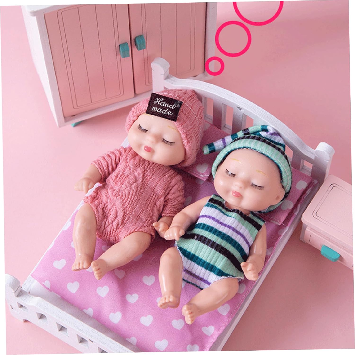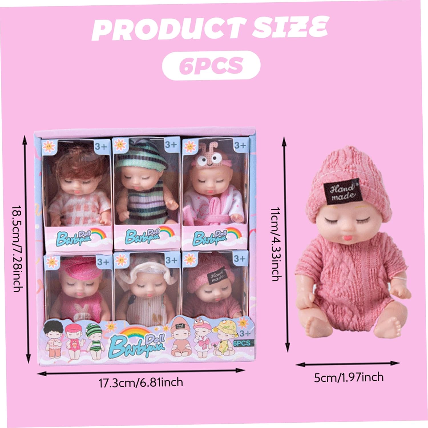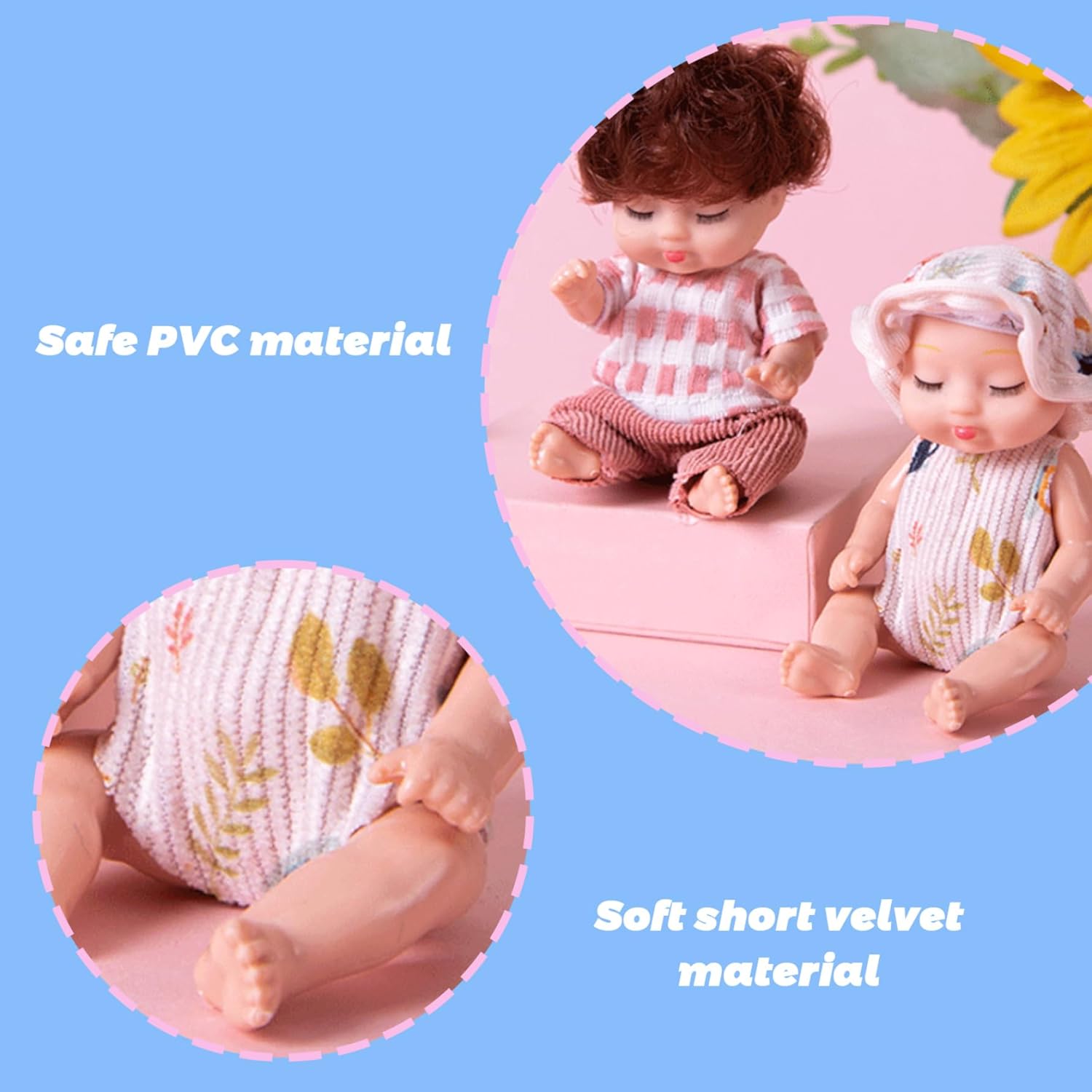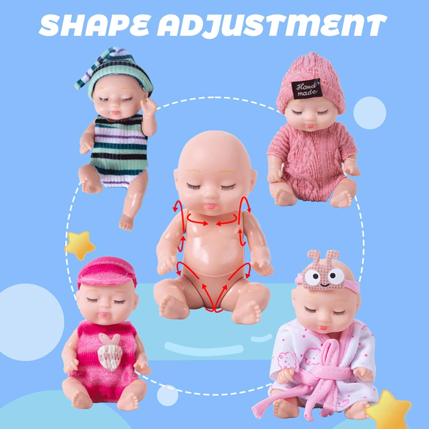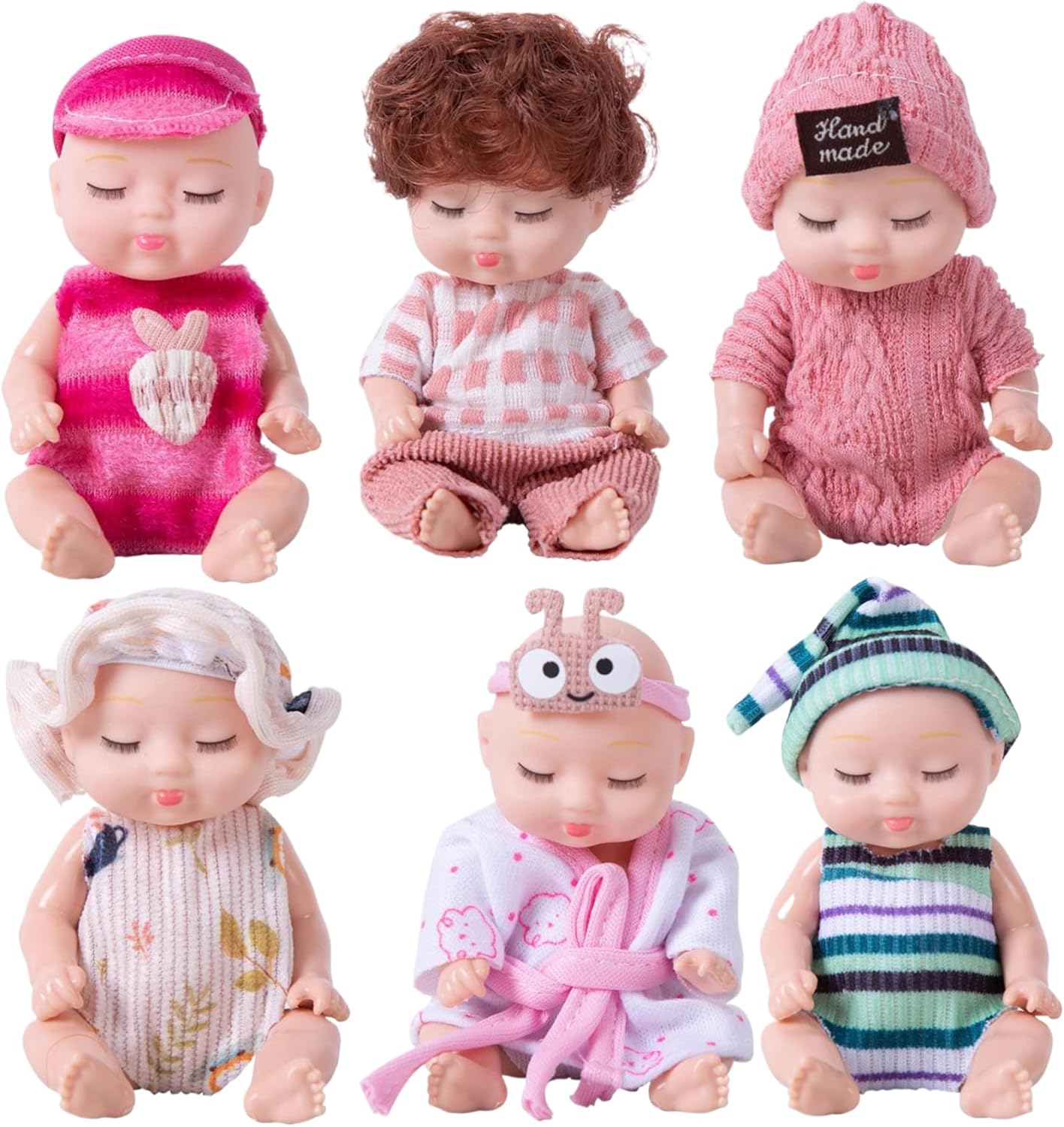Perfetto per i bambini piccoli: ideale per compleanni, vacanze o qualsiasi occasione speciale, questo set di mini bambole è meraviglioso per neonati e bambini..Che tratti di giochi fantasiosi o di oggetti da collezione, queste mini bambole delizieranno sicuramente ogni bambino dai 3 anni in su. Design realistico: le nostre mini bambole presentano espressioni realistiche del sonno e dettagli intricati che stimolano l'immaginazione dei bambini..Il loro aspetto realistico ispira il gioco e la narrazione, incoraggiando la creatività sia nei ragazzi che nelle ragazze. Adorabile set da 6 confezioni: questo set di mini bambole da 6 pezzi include sei adorabili bambole da 4 pollici, perfette per le mani dei più piccoli..Ogni bambola indossa abiti carini, che la rendono una deliziosa aggiunta alla collezione di giocattoli di ogni bambino. Giunti mobili per il gioco interattivo: ogni bambola è dotata di giunti mobili che consentono ai bambini di posarla e posizionarla in vari modi..Questa funzione aggiunge una funzionalità interattiva, migliorando il tempo di gioco e rendendo ogni bambola ancora più divertente per i bambini dai 3 anni in su. Materiali sicuri e affidabili: realizzate in plastica, queste bambole sono progettate per resistere a giochi difficili pur rimanendo sicure per i bambini..Atossico e affidabile, i genitori possono sentirsi sicuri che i loro figli stanno giocando con un prodotto che dà priorità alla sicurezza.