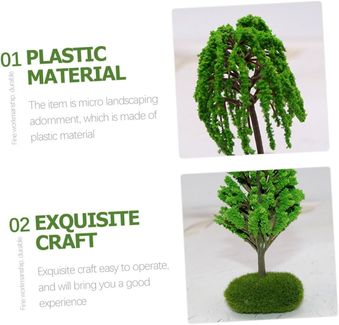 Piccoli alberi per la decorazione: caratterizzati da un design vivido che ricorda un albero, realistico, lo rendono un eccellente ornamento per scene in miniatura, alberi paesaggistici in miniatura Albero in miniatura per casa delle bambole: è dotato di dettagli realistici, il mini albero è unico e ha un buon effetto decorativo, albero per modellini di treni Mini alberi da strada: presentano perfettamente la sensazione naturale e migliorano l'autenticità del micro paesaggio, modello di albero in miniatura Simulazione mini albero: l'albero in miniatura può essere ampiamente utilizzato negli alberi modello di binari ferroviari, alberi architettonici, modelli architettonici, layout di scene o decorazioni paesaggistiche, modello di simulazione in miniatura albero paesaggistico Albero artificiale in miniatura: questo modello di albero artificiale leggero è facile da riporre e trasportare, aspetto, facile da usare, mini alberi finti