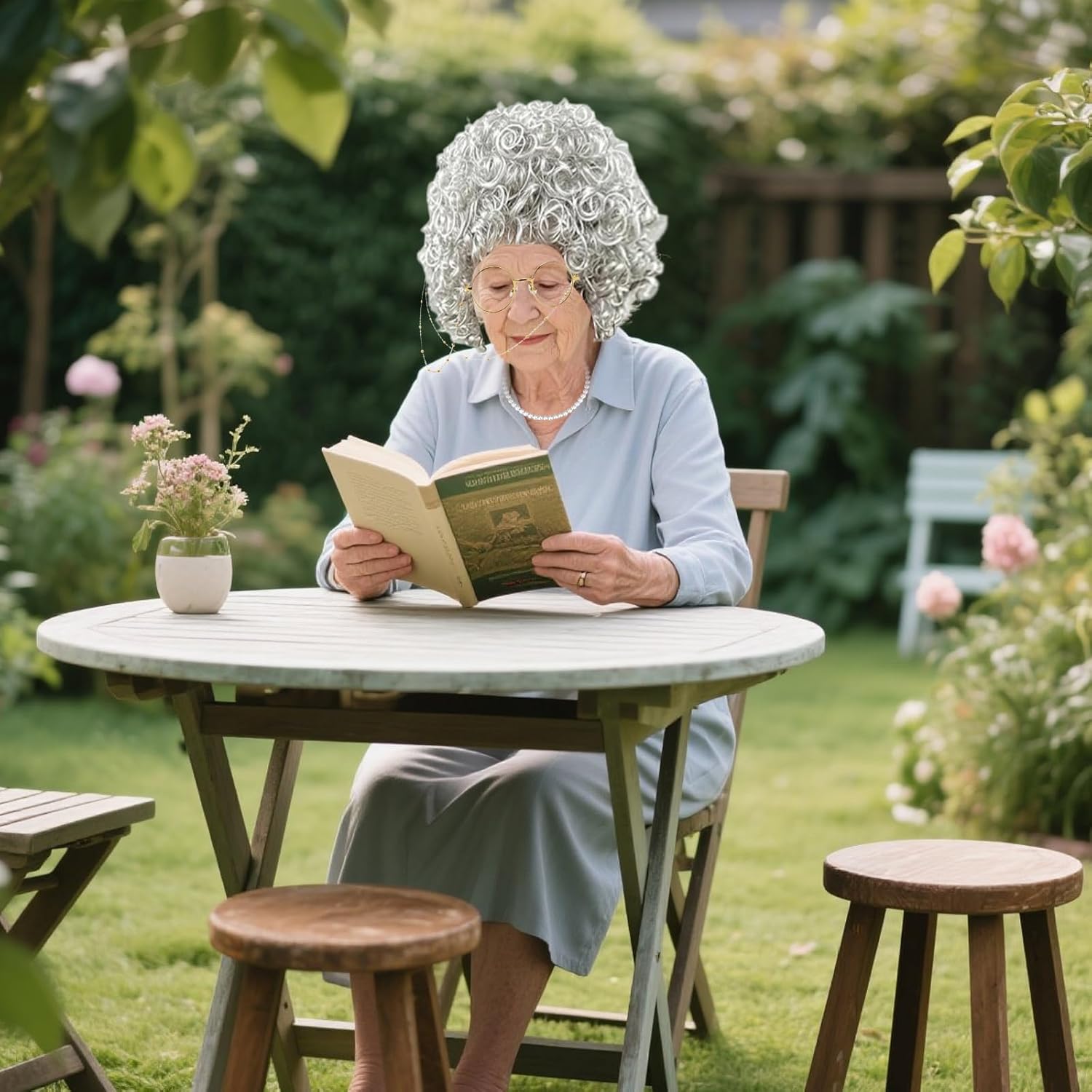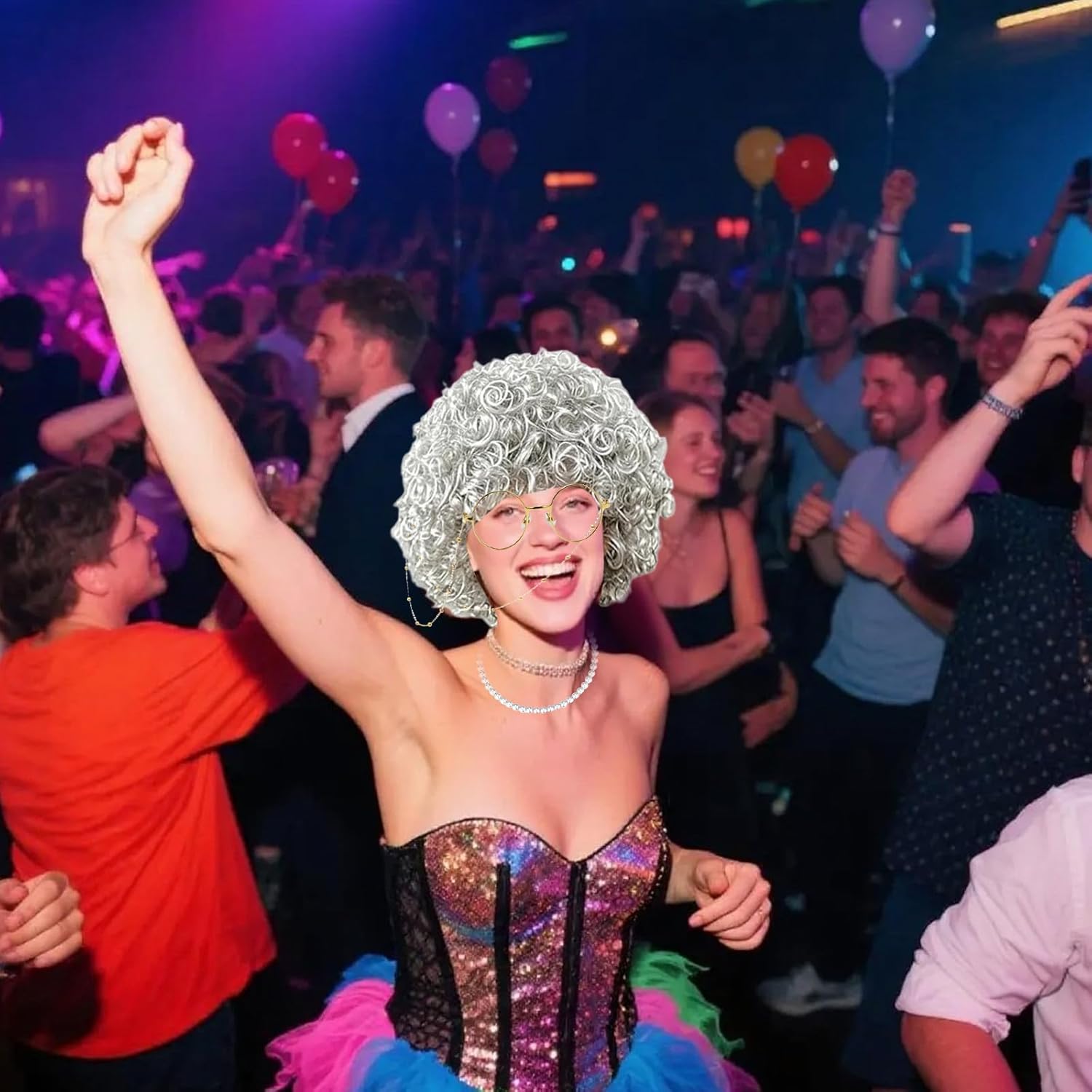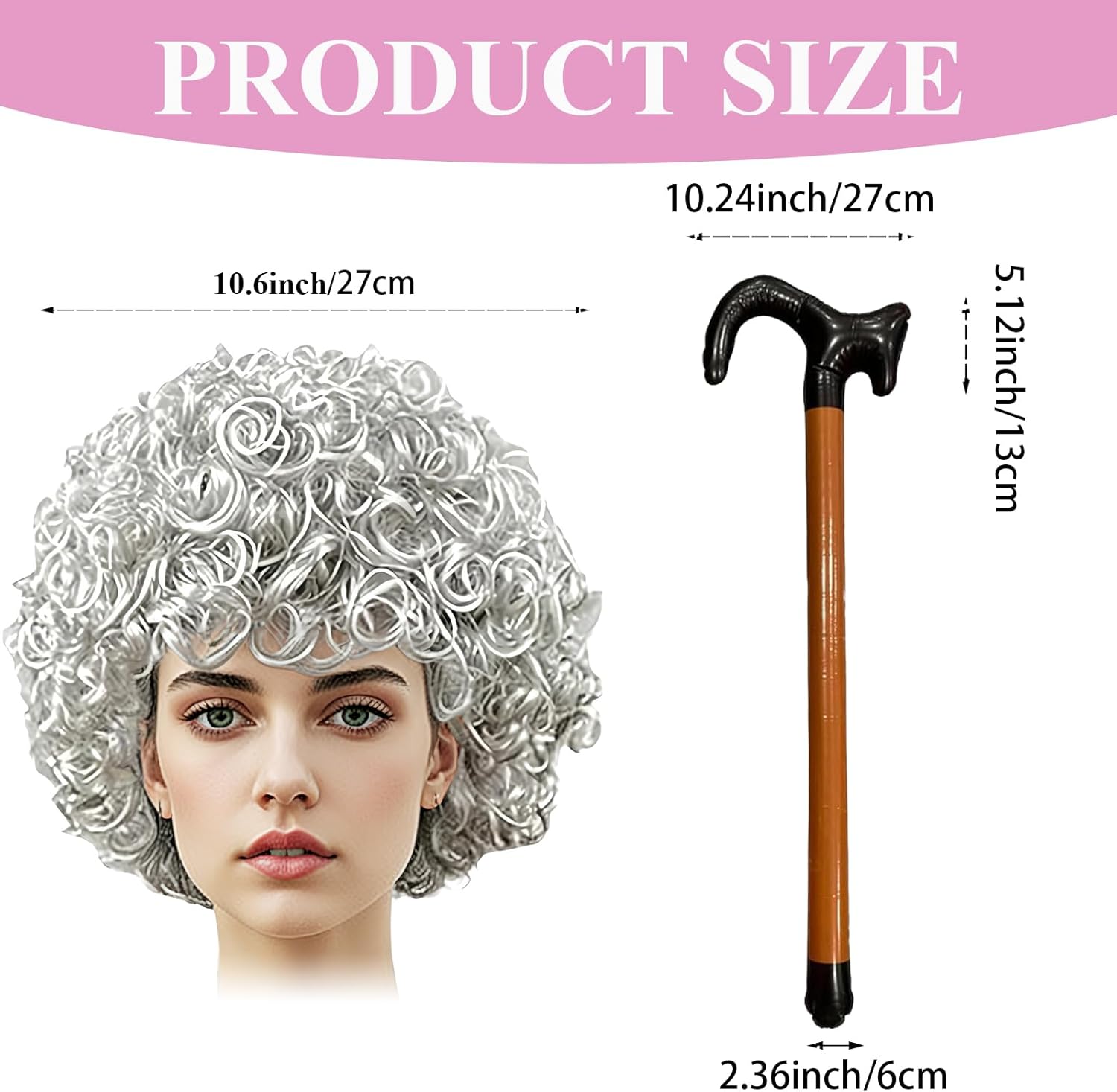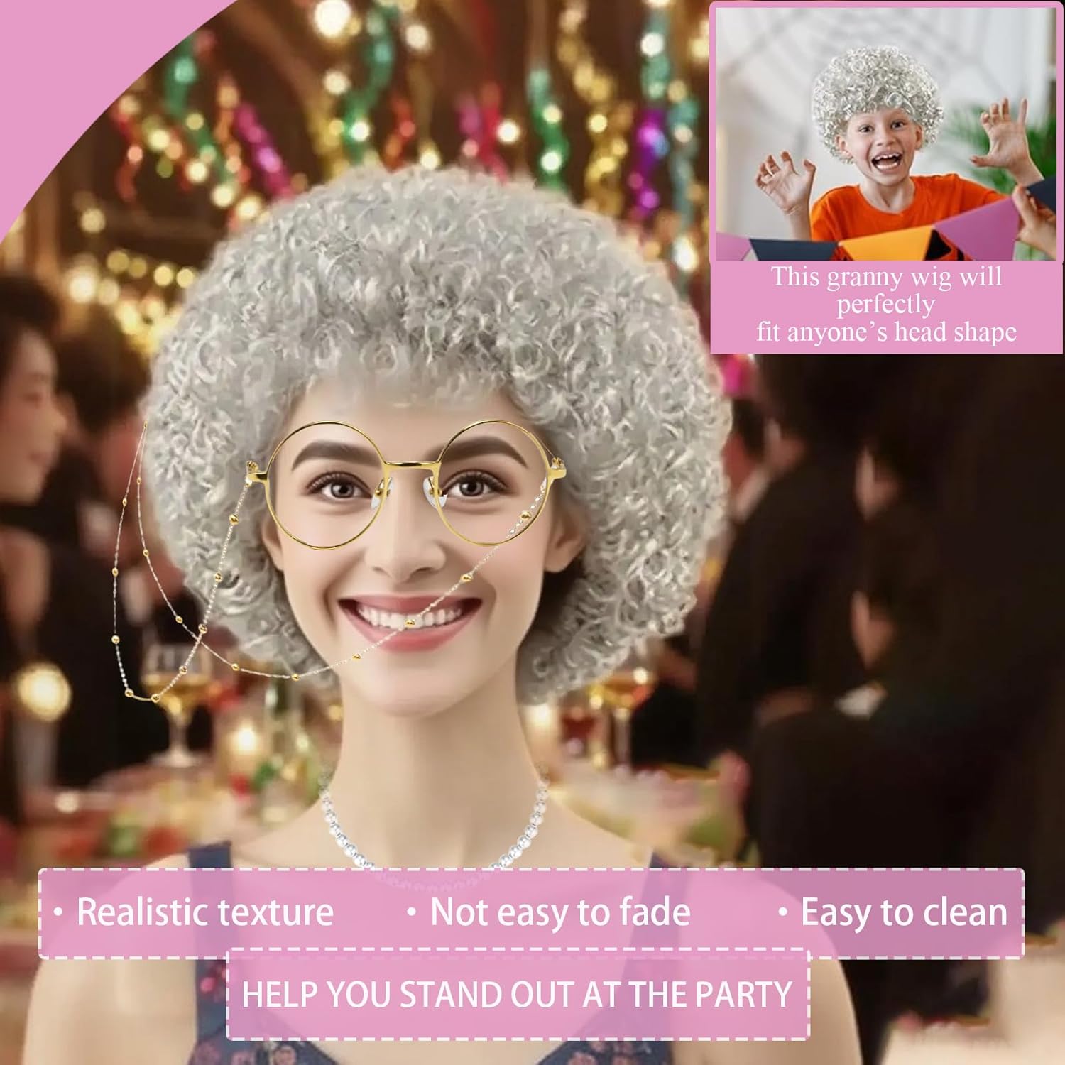 Set di 6 parrucche per nonne: il nostro set di costumi da nonna include un'elegante parrucca grigia, una cuffia per parrucca, occhiali, una collana di perle scintillanti e un bastone da passeggio gonfiabile. Con questo set completo brillerete sicuramente! Materiali di alta qualità: la nostra parrucca di alta qualità è realizzata con materiali di alta qualità, morbidi e confortevoli, non cadono nemmeno con i capelli spessi, è resistente, può essere utilizzata più volte, è elastica e, insieme alla cuffia per parrucca, garantisce una vestibilità salda, non scivola facilmente. Eleganti accessori vintage: le classiche montature per occhiali e la squisita collana per occhiali in qualità con parrucca nonna donano al tuo vestito da donna vecchio stile in combinazione con la collana di perle scintillanti un fascino raffinato e creano così un vero look da nonna. 【Sicuro e confortevole】: la cuffia per parrucca di qualità da pensionato garantisce una perfetta aderenza della parrucca da donna anziana. La catena per occhiali evita che i tuoi occhiali si perdano e allo stesso tempo offrono un comfort Parrucca grigia per un comfort tutto il giorno a feste ed eventi. Versatile: il nostro costume da nonna è adatto per feste di Halloween, feste di Natale, eventi a tema, spettacoli scolastici, feste in costume, spettacoli sul palcoscenico, costumi di famiglia, ecc. La parrucca della nonna può essere abbinata ad altri oggetti di scena per aumentare il divertimento del gioco della nonna.
