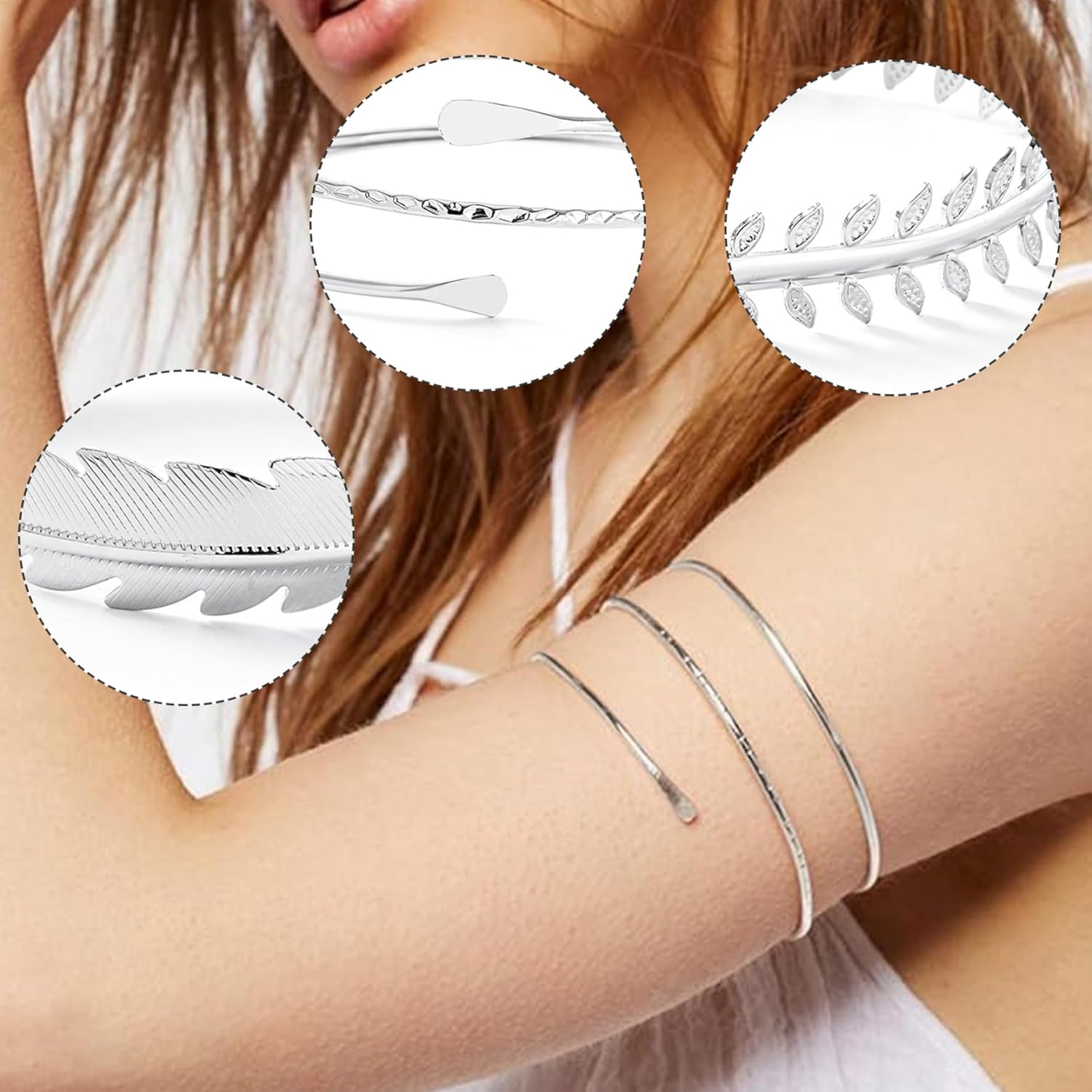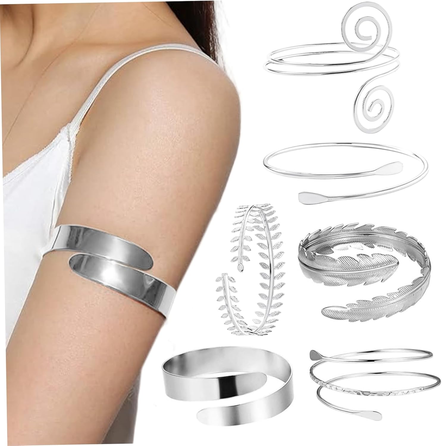 Metallo leggero e robusto: realizzati in lega metallica di alta qualità, questi polsini sono leggeri ma robusti, garantendo durata senza causare disagio o irritazione della pelle. Elegante argento brillante: realizzati in metallo lucido color argento, questi polsini aggiungono uno scintillio sofisticato e accattivante a qualsiasi outfit, perfetto per elevare il tuo stile senza sforzo. Comfort di vestibilità regolabile: progettati per adattarsi comodamente a braccia di diverse dimensioni, questi polsini regolabili garantiscono una vestibilità sicura ma flessibile, garantendo una vestibilità tutto il giorno senza scivolare o pizzicare. Abbigliamento versatile per occasioni: che tratti di una festa, di un ballo di fine anno, di un servizio fotografico o di un uso quotidiano, questo set da 6 pezzi offre una varietà di stili che completano l'abbigliamento casual e formale per qualsiasi evento. Elegante set a strati: con sei design diversi ma coerenti, questo set incoraggia la stratificazione e l'impilamento creativi per un look personalizzato che mette in risalto il tuo senso unico della moda.