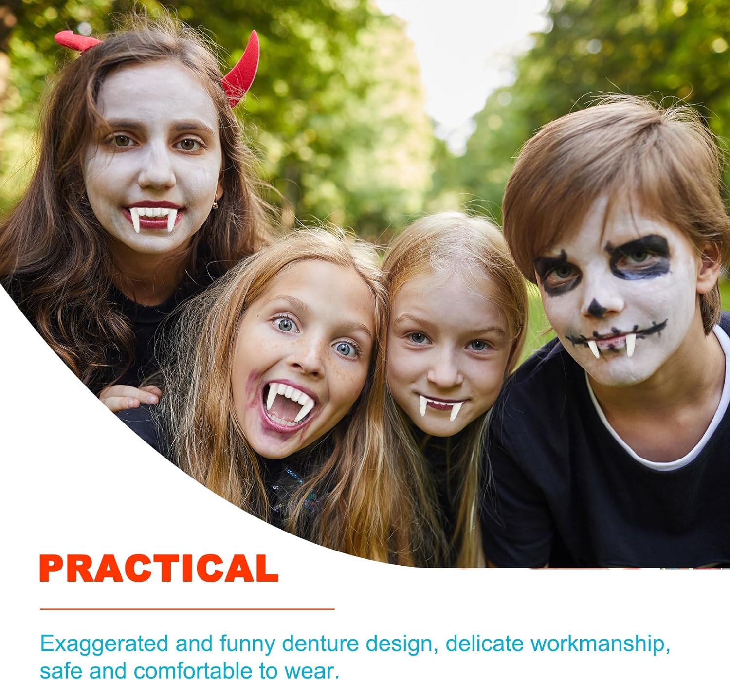 Quantità: la confezione contiene 6 denti da vampiro di Halloween, di forma realistica. Si abbinano perfettamente al tuo costume da vampiro, migliorando il realismo del tuo gioco di ruolo e portandoti esperienze uniche. Materiale: questi denti finti sono realizzati in plastica di alta qualità, sicura, ecologica, lavabile e durevole. Dimensioni: le zanne zombie sono di dimensioni moderate, adatte per la maggior parte delle persone da indossare. Facile da indossare e rimuovere senza fastidio durante l'uso prolungato. Accessorio per costumi: perfetto per feste a tema Halloween. Sarai il fouces della festa quando entri in una festa in costume indossare le zanne finte. Ampie applicazioni: adatto per giocare a vampiri, lupi mannari, zombi e altri ruoli alle feste, e può essere utilizzato anche come accessorio per abbigliamento cosplay, regali per feste e così via.