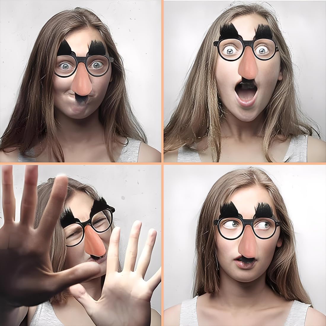 Design unico: confezione da 6 occhiali divertenti con finto naso grande, sopracciglia e barba. Divertenti e spiritosi, la loro forma e personalità uniche aggiungono un tocco di brio al tuo outfit. 【Ampio utilizzo】Gli occhialini da naso di Halloween sono perfetti per feste in maschera, feste di compleanno, carnevali, Halloween, Pasqua, Natale, Pesce d'aprile, ecc. Possono anche essere utilizzati per spettacoli teatrali, spettacoli di programmi, ecc. Hanno una forte plasticità e possono migliorare l'effetto performativo del programma. 【Oggetti Divertenti】Questi occhiali esagerati e divertenti possono renderti misterioso e possono anche essere usati come strumento di scherzo per spaventare gli altri travestendosi da . 【Materiale di alta qualità】I divertenti occhialini da naso grandi sono realizzati in plastica di alta qualità, resistenti, non facili da deformare, non facili da sbiadire, sicuri da usare e comodi da indossare. 【Regalo perfetto】Gli occhialini da naso grandi sono oggetti di scena molto interessanti, rendendoli regali ideali per amici e familiari per migliorare le relazioni reciproche. Possono anche essere usati come premi per eventi e bomboniere per creare un'atmosfera piacevole e scattare foto divertenti alle feste.