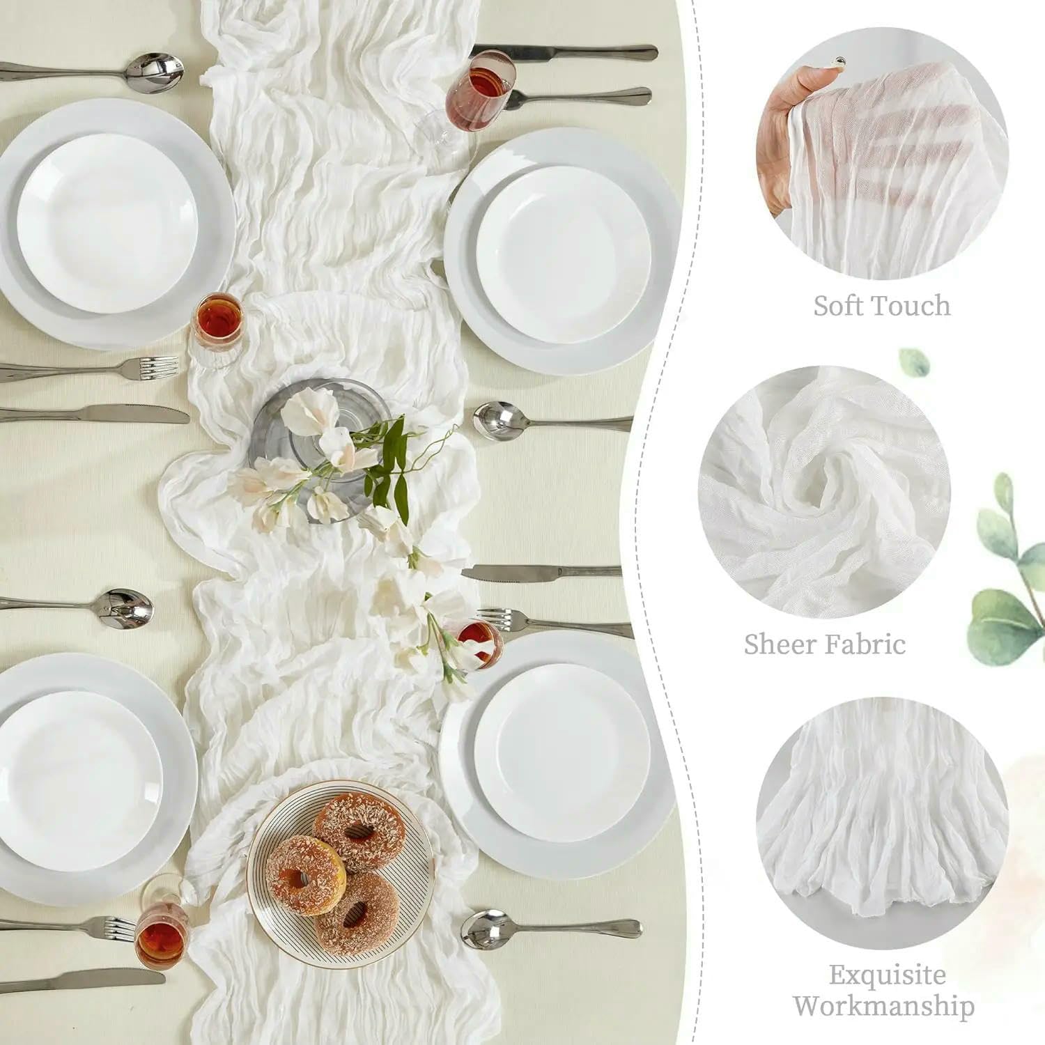 Decora i tavoli nuziali - Aggiungi un tocco romantico con un tessuto trasparente per eleganti allestimenti per banchetti Decora magnificamente gli archi delle feste - Ricoprili con chiffon semitrasparente per un'atmosfera sognante e boho Arreda i tavoli delle torte senza sforzo - Usa guide in stile vintage per completare l'arredamento della tua addio al nubilato Crea affascinanti allestimenti per la cena - Stratifica garza e garza per feste di compleanno morbide ed eteree Accentua i banchetti con colori tenui - Incorpora sfumature di salvia e rosa per un tema decorativo armonioso e romantico