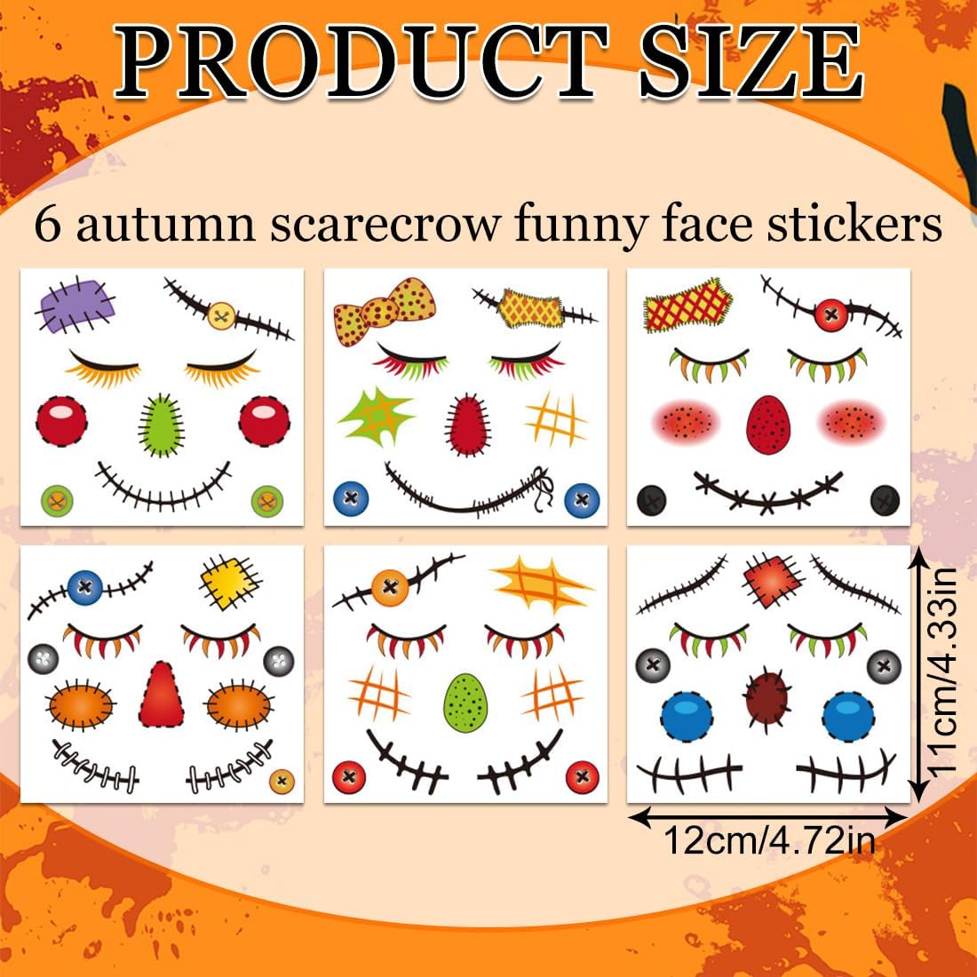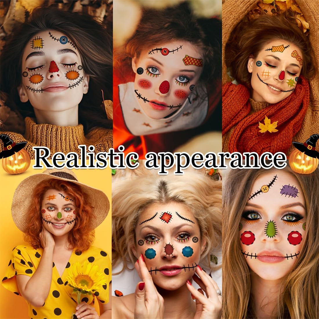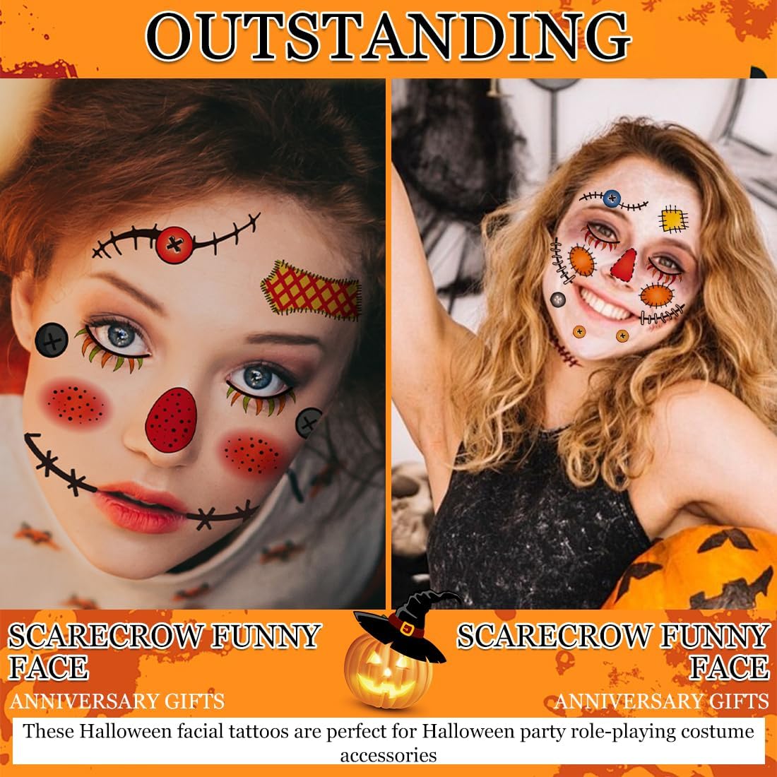Tatuaggi viso di Halloween per bambini:6 pezzi di tatuaggi temporanei per il viso di Halloween. Bambini Tatuaggi temporanei di Halloween:Componenti individuali del tatuaggio per un posizionamento preciso e creativo sul viso. aggiungi trucco per gli occhi o strass per il tuo aspetto unico del viso, usa eventuali tatuaggi extra per il petto, le spalle o le mani. Impermeabili: una volta applicati, questi bellissimi tatuaggi non possono essere lavati via. Questi bellissimi tatuaggi possono durare anche un'intera festa. Mostrali alla festa di Halloween o ad altre feste come quelle in spiaggia, in piscina, al carnevale, in maschera e altre feste per fare una grande sorpresa ai tuoi amici Sicuro, durevole, impermeabile e rimovibile: dura da 2 a 5 giorni, facile da applicare in 10-20 secondi con solo acqua e facilmente rimovibile strofinando alcool, olio per il corpo, olio d'oliva, aggiunta perfetta a qualsiasi giorno dei morti Costume di Halloween, trucco di Halloween. Ampie applicazioni:Questi tatuaggi per il viso di Halloween sono un design perfetto per gli accessori di vestire cosplay di Halloween party, Masquerade, Night Party, trucco spaventoso per ragazze ragazzi bambini.