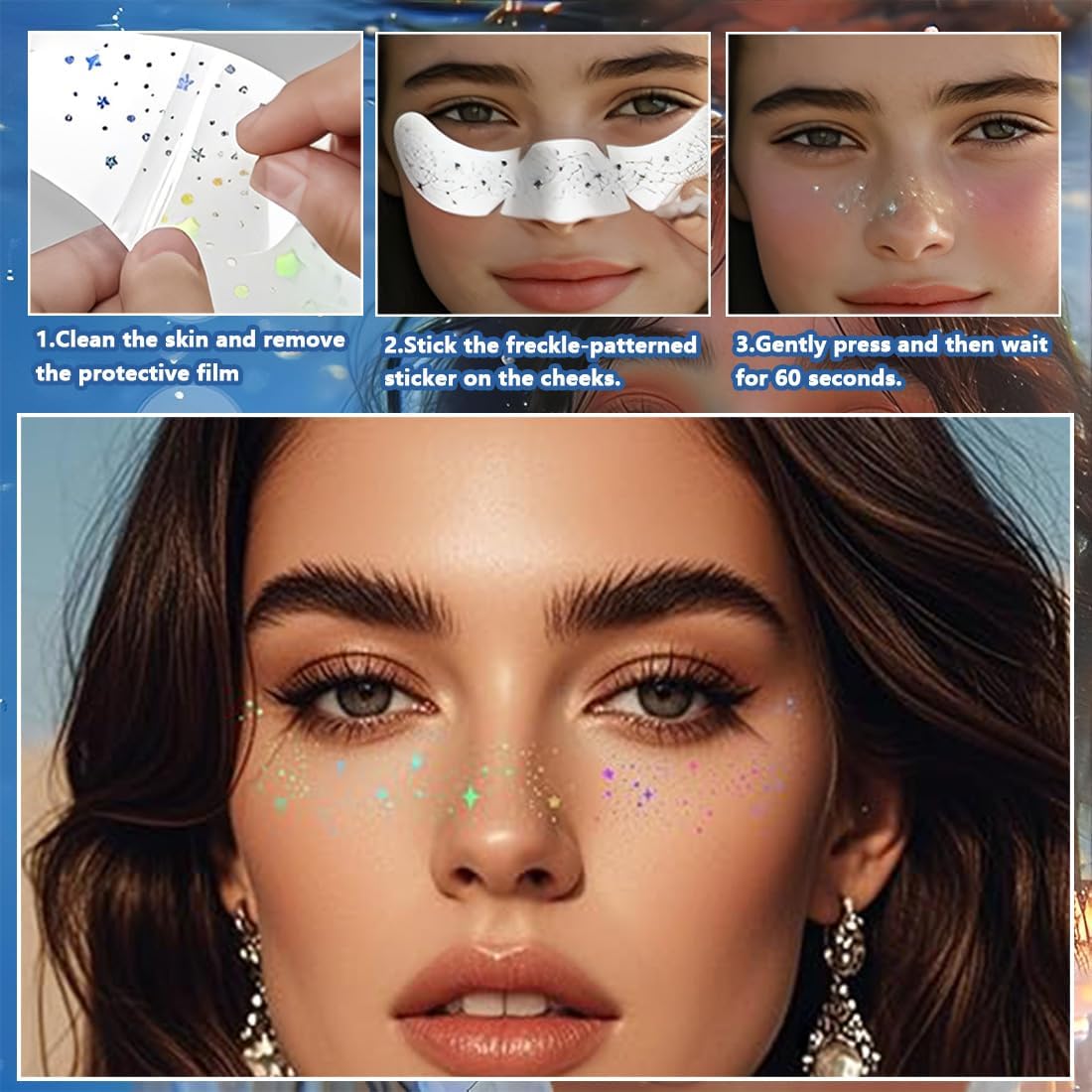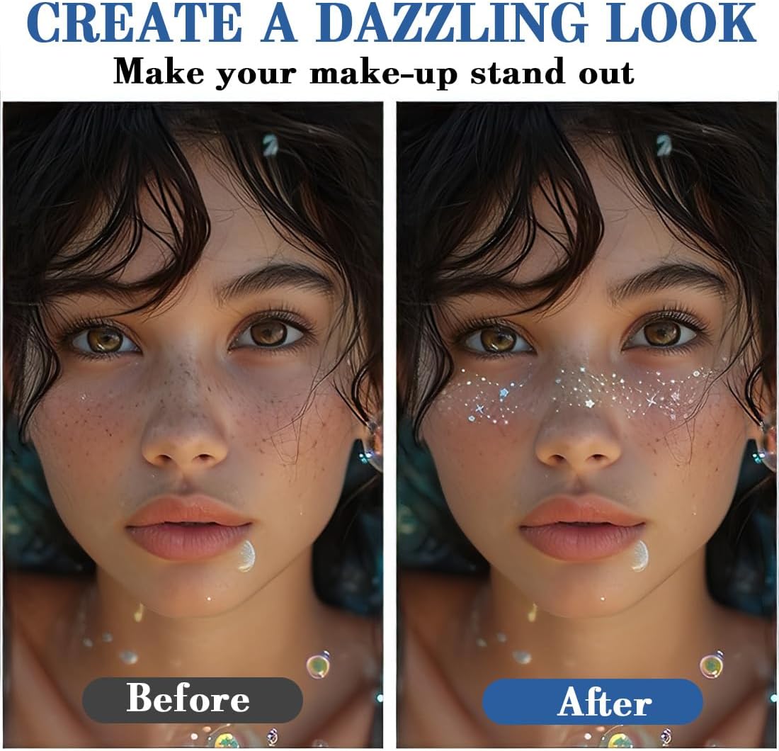 Contenuto della confezione: riceverai 6 fogli di tatuaggi con frange glitterate da 5,9 x 2,04 pollici / 15 x 5,2 cm. Facile da applicare: in primo luogo, staccare il supporto e applicare il cerotto per tatuaggio sulla pelle pulita, premerlo delicatamente per dieci secondi, quindi staccare il cerotto per il trucco. Un look scintillante e naturale: abbina stelle olografiche a delicati pois per un look giocoso e casual. L'effetto multicolore si fonde armoniosamente con la tua carnagione e dona una morbida lucentezza che mette in risalto i tuoi lineamenti senza essere troppo ostentato. Grandi e piccini troveranno qui un discreto eye-catcher per tutti coloro che amano la magia dei glitter. Resistente all'acqua: i nostri adesivi per lentiggini sono realizzati con ingredienti impermeabili, resistenti all'acqua e al sudore per essere indossati perfettamente tutto il giorno. Che sia per una festa o per qualsiasi altro evento, le nostre toppe glitterate ti faranno brillare e risplendere, donandoti un magnifico aspetto da fata. Ampia gamma di applicazioni: I nostri adesivi glitterati sono adatti per varie occasioni, tra cui festival musicali, feste, Halloween, carnevali, riunioni di amici, vita quotidiana, viaggi, spiagge, piscine, selfie, fotografia, palestre, matrimoni, Natale, costumi, festival, progetti artistici e artigianali, ecc. Aggiungi il tuo fascino unico e fallo brillare.