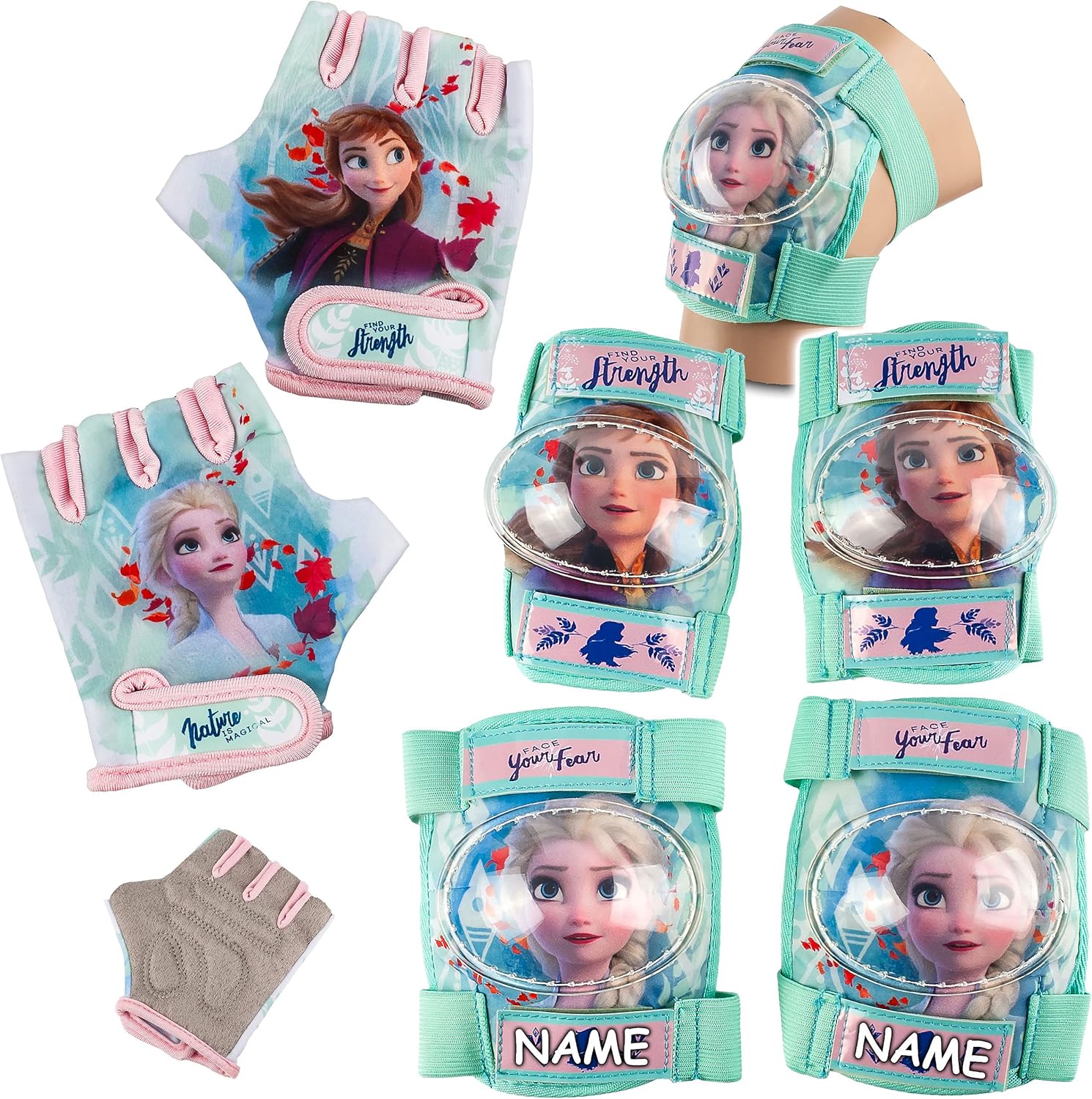 Set di sicurezza di alta qualità ____ 1 paio di ginocchiere e 1 paio di gomitiere + 1 paio di guanti da ciclismo di alta qualità _____ misura regolabile e cresce con il bambino ____ per bambini dai 4 ai 12 anni circa ______ Motivo: "Frozen" Protezioni: le protezioni applicate sono realizzate in plastica extra stabile e sicura Scocca ___ / ____ Imbottitura interna con imbottitura in schiuma piacevolmente morbida con elevati valori di smorzamento ___ / ____ doppie cuciture per un'estrema resistenza e longevità! __ gomma elastica e di alta qualità ___ grazie alla chiusura in velcro sono regolabili individualmente / __ e si adattano a OGNI BAMBINO! (anche sopra pantaloni spessi) Misura: ginocchiere alte 16 cm; 14 cm di larghezza e gomitiere alte 14,5 cm; 12 cm di larghezza (misurato sempre all'esterno) _______ testato - EN 14120 - e soddisfa TUTTI gli standard di sicurezza UE __ ideale come equipaggiamento protettivo per pattini in linea, pattini a rotelle, skateboard, biciclette, scooter, bici senza pedali, longboard o waveboard Guanti: possono essere adattati individualmente al bambino con la chiusura in velcro (regolabile) / grazie al piacevole tessuto elasticizzato sulla parte superiore, il guanto aderisce come una seconda pelle __ il palmo (parte inferiore) ha un buon GEL - Imbottitura e materiale high tech extra ANTISCIVOLO / _____________ i guanti sono traspiranti e molto piacevoli sulla pelle! ___ materiale resistente: poliestere e pelle artificiale (effetto scamosciato) _____ lavabile a 30 gradi Individualmente con il nome desiderato - aggiungi semplicemente l'articolo "nome desiderato" come extra nel carrello, il nome verrà quindi adattato