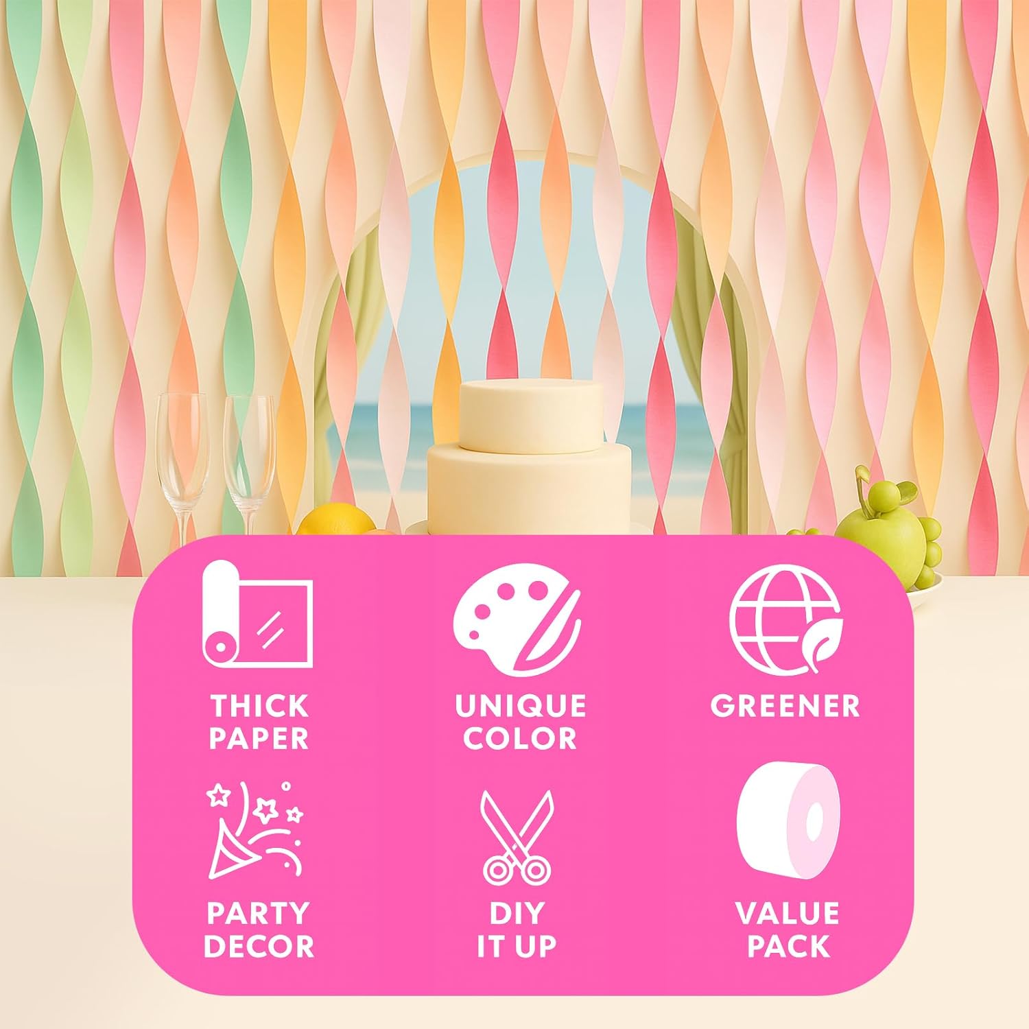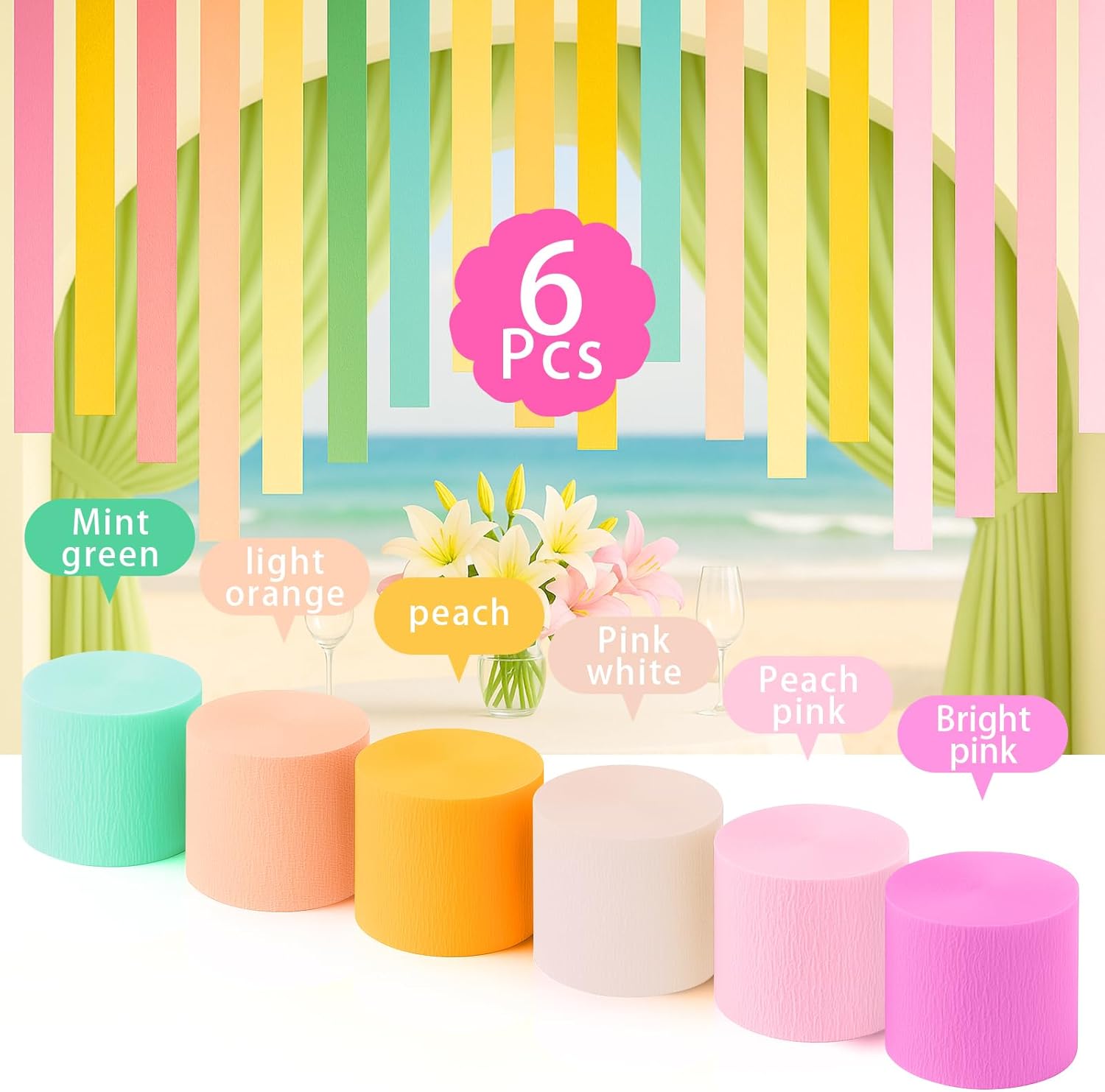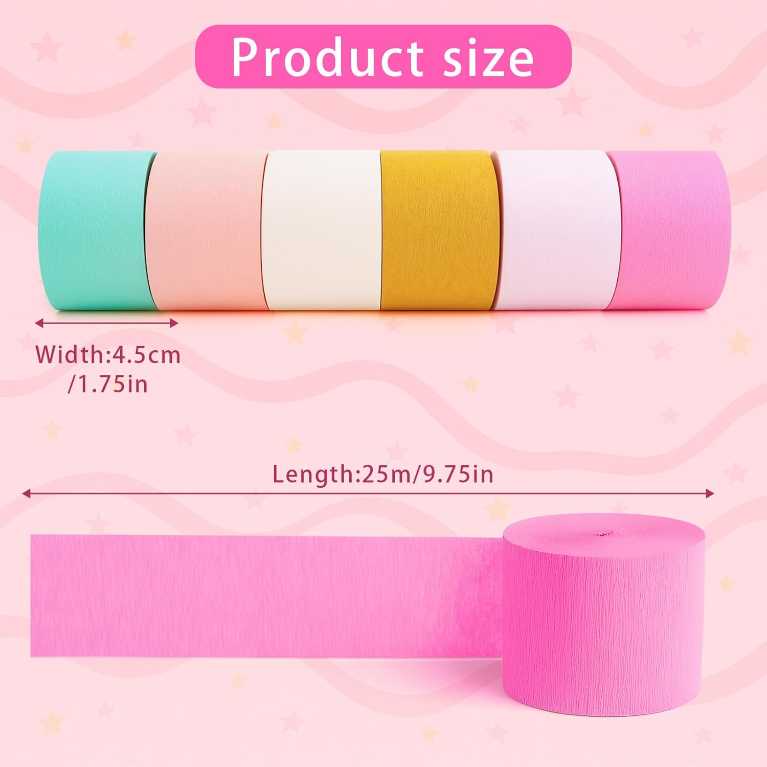 【Colore pastello da sogno】 Gli streamer assortiti sono disponibili in 6 colori diversi tra cui rosa pesca, arancione chiaro, rosa bianca, rosa brillante, verde menta e pesca. Possono anche essere utilizzati come bellissimi sfondi fotografici in modo da poter scattare foto indimenticabili con la famiglia e gli amici.,Carta crespa premium: include 5 rotoli di stelle filanti colorate di carta crespa nel design originale di NICROLANDEE. Realizzato con carta crespa durevole e di alta qualità - resistente agli strappi, riciclabile ed ecologica - ideale per decorazioni eleganti e sostenibili. 【Dimensioni generose】 Ogni rotolo è largo 4,5 cm e lungo 25 m, perfetto per decorare le feste con stile. Ideale come sfondo per le stelle filanti delle feste, per abbellire porte, finestre o pareti: accessori versatili per qualsiasi arredamento. Ideale per drappeggiare, avvolgere o appendere. Delicate decorazioni per le feste: queste decorazioni di carta donano leggerezza primaverile a qualsiasi ambiente: ideali per feste pasquali, primaverili o estive. Perfetto anche per illuminare la camera da letto, il soggiorno o l'aula e creare un'atmosfera calda e invitante.,Uso fai da te: condividi i fogli colorati di carta crespa con bambini, amici o familiari: ideali per progetti artigianali condivisi. Promuovi la creatività, rafforza la relazione e le amicizie genitore-figlio e vivi momenti rilassati mentre crei insieme