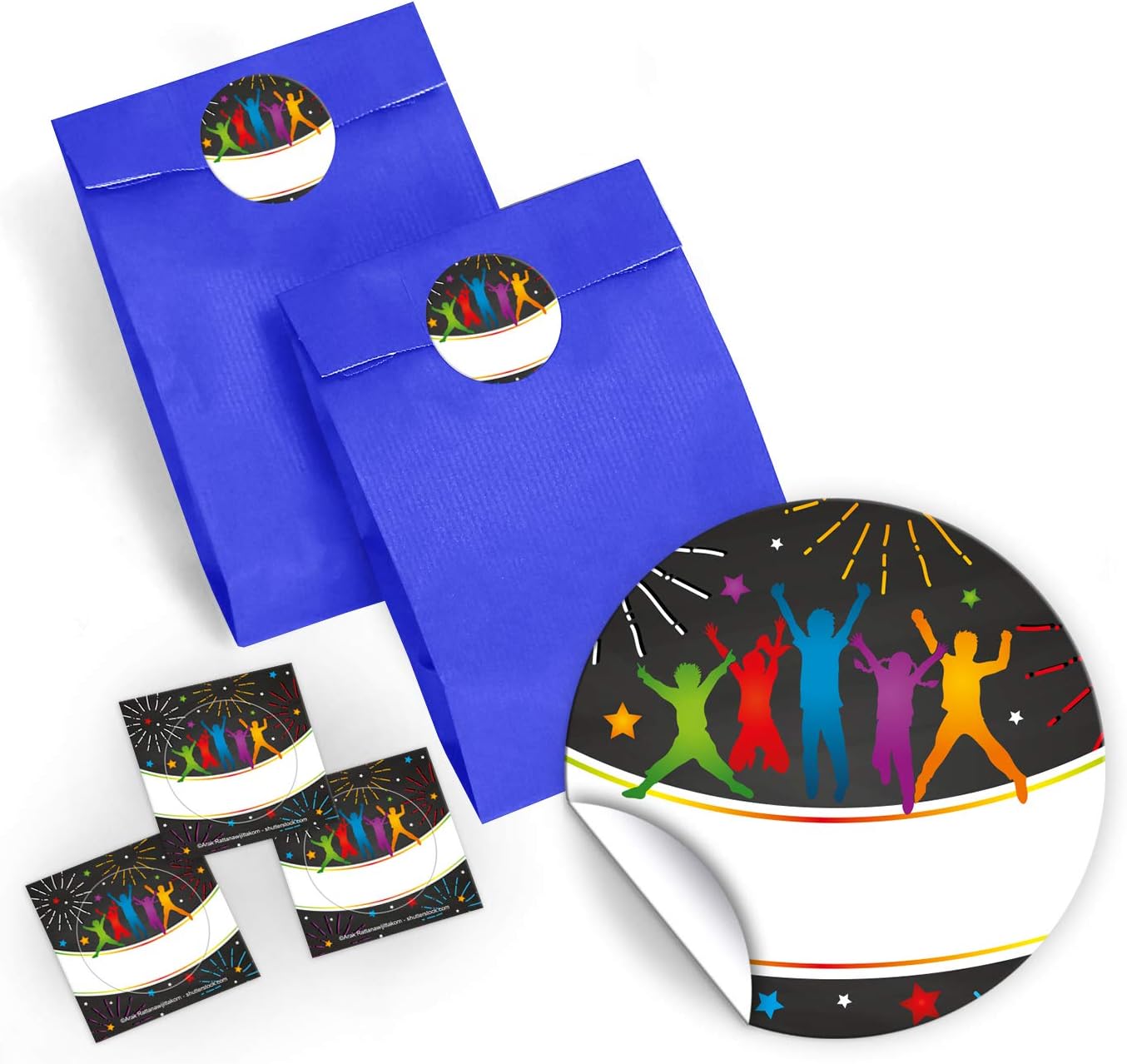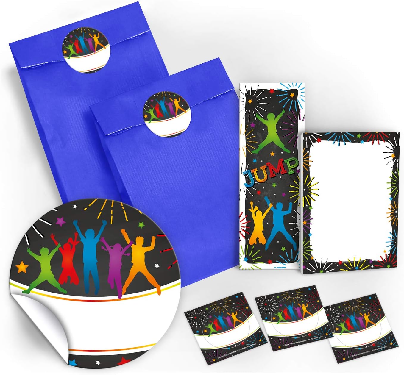 CONTENUTO: 6 segnalibri, 6 quaderni, 6 sacchetti, 6 adesivi BLOCCHI E SEGNALIBRI: Il segnalibro ha una dimensione di 5,2 x 14,80 cm, la stampa dell'immagine da 300 g/m ed è rivestito con vernice UV (lucida) su entrambi i lati. Il blocco note ha una dimensione di 7,4 x 10,5 cm (DIN A7) e contiene 25 fogli. SACCHETTI CON ADESIVI: I sacchetti di carta misurano 12 cm x 19 cm. Gli adesivi misurano 4 cm/rotondi e sono pretagliati sul materiale di supporto. Gli adesivi vengono consegnati senza etichetta. MADE IN GERMANY: gli adesivi, i quaderni e i segnalibri sono stati prodotti in Germania. ALTRO NUMERO: la borsa da festa è disponibile da noi anche in set da 8, 10 e 12.