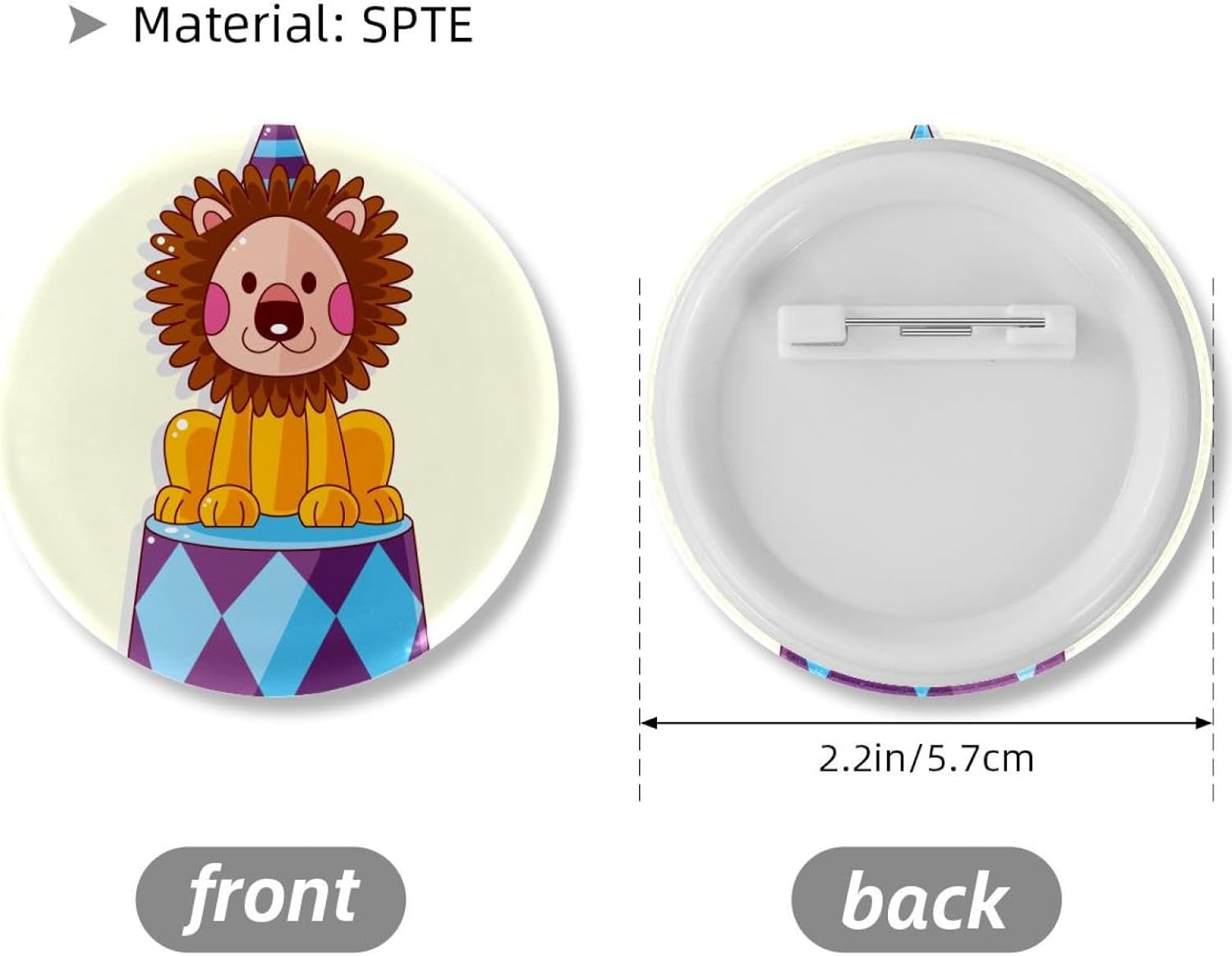 Questi bottoni per zaino sono realizzati in materiale stagnato di qualità, stabili e solidi, non si rompono facilmente, si deformano o sbiadiscono, affidabili per servire a lungo. Puoi inviare i nostri perni e bottoni per zaino come regalo delicato ai tuoi amici e familiari, per mostrare il tuo amore e la tua cura. Specifiche tecniche: Materiale: SPTE Dimensioni: 5,7 cm. Colore: come da immagine. Caratteristiche: Riutilizzabile di alta qualità. Design Pinback, facile da usare; Adatto per vari fai da te su badge; Supporta modelli personalizzati. La confezione include: 6 spille per bottoni. Note: * Si prega di considerare un margine di errore nelle dimensioni. * Il colore può esistere una leggera differenza a causa delle diverse impostazioni dello schermo. * Si prega di tenere lontano dalla portata dei bambini piccoli per evitare rischi di deglutizione