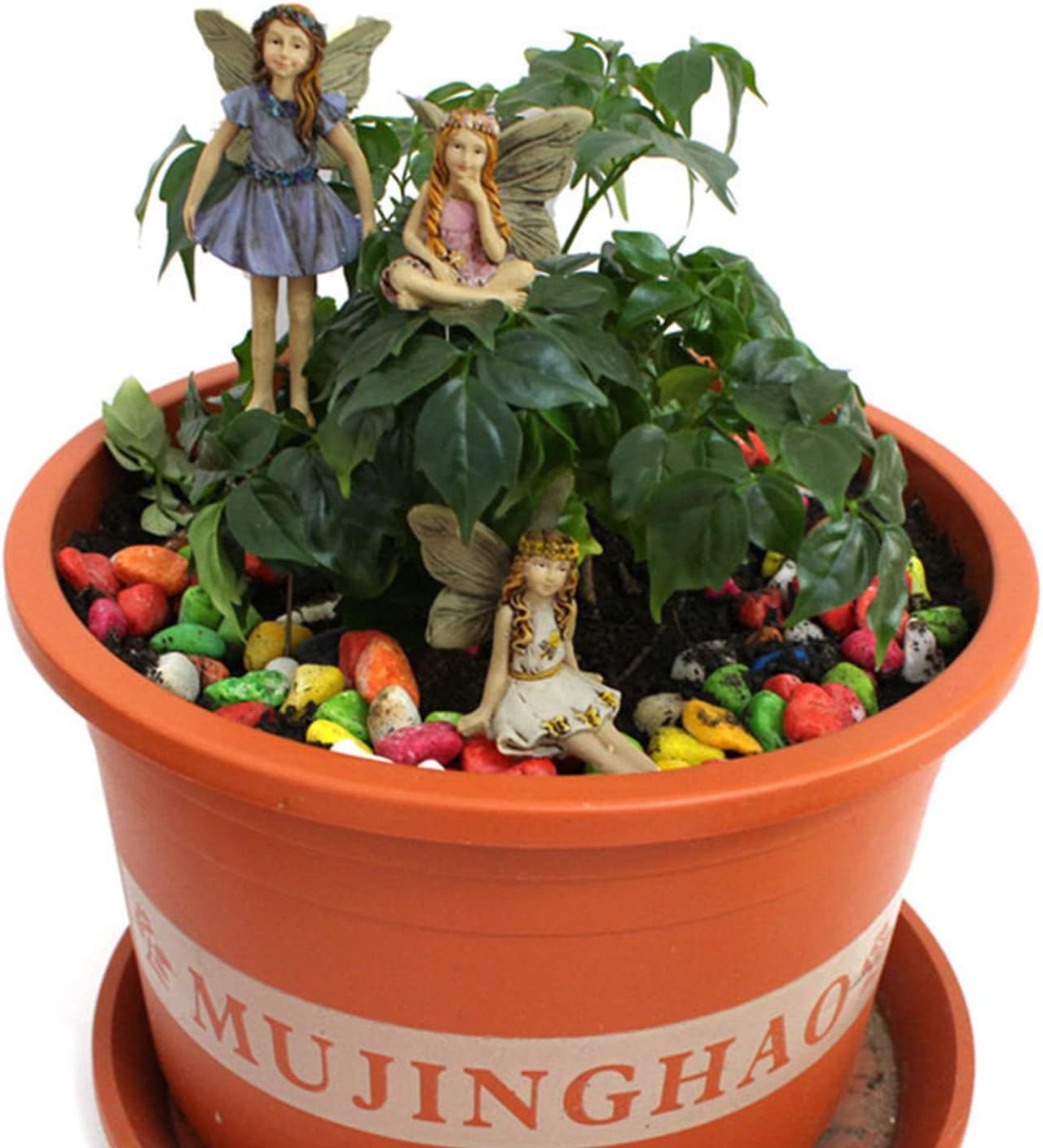 Dipinto a mano, i suoi colori sono luminosi e staranno benissimo con il tuo giardino Ogni fata è dotata di paletto, da inserire nel vaso di fiori o in giardino. Decora il tuo giardino o la tua casa con questo esclusivo set di fate, porterà te e la tua famiglia nel mondo delle fiabe e ti farà sentire il fascino delle fate del giardino. resina di lunga durata, pioggia, sicuro e . figurine fate giardino