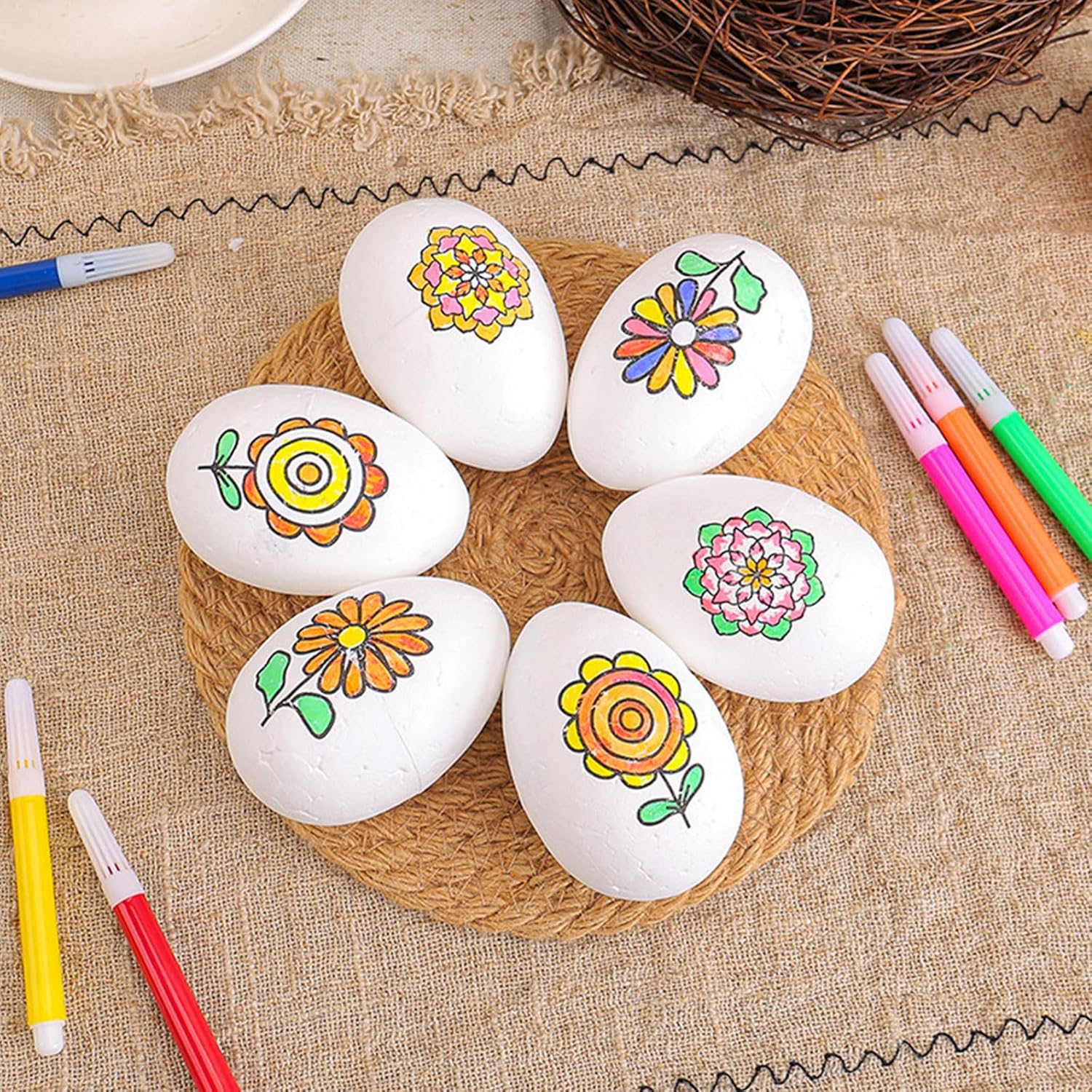 Realizzate in schiuma, queste uova artigianali da pittura con superfici lisce facili da dipingere e decorare, garantendo un divertimento a lungo. Libera la creatività dei tuoi bambini con il nostro set di pittura con uova artigianali, con 6 uova in schiuma e 6 penne ad acquerello colorate, ideali per attività artigianali divertenti ed educative. Adatto per bambini dai 3 anni in su, questo set di pittura artistica incoraggia l'espressione artistica e migliora le capacità motorie. Widelu utilizzato per attività di genitori e bambini, corsi di artigianato all'asilo, decorazioni per feste e come presernt per le vacanze, questo set porta divertimento a qualsiasi occasione festiva. Trasforma il momento ordinario in una memoria straordinaria con questo set di pittura artigianale con uova, promuovendo l'immaginazione e la creatività nel progetto artigianale.