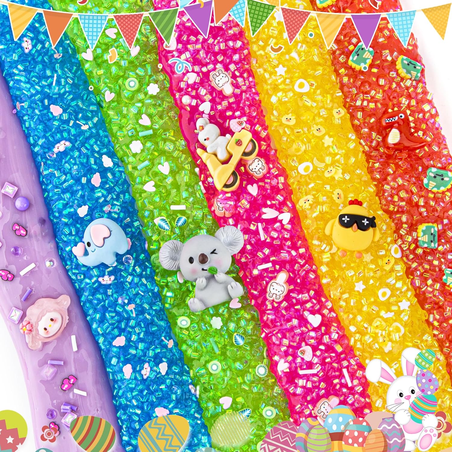 Bingsu Slime con grande capacità: ogni barattolo contiene 100 ml di melma, per un totale di 600 ml. Questo set di slime contiene 6 colori Bingsu Slime: coniglietto rosa slime, koala verde slime, elephant blue slime, sheep purple slime, dinosaur red slime, chick yellow slime. Super morbido e ben elastico: la melma Okaybee offre una consistenza unica che è super morbida al tatto. Grazie alla sua natura user-friendly, puoi iniziare subito e goderti la prelibatezza morbida ed elastica. Slime adatto ai bambini: questo set di lime bingsu è realizzato con ingredienti di alta qualità ed è sicuro per bambini e adulti. Nota: si raccomanda la supervisione di un adulto per bambini di età inferiore a 3 anni. Non mangiare! 【Giocattolo sensoriale perfetto】Che tu voglia alleviare lo stress o migliorare il tuo gioco sensoriale, questo set di slime croccante è perfetto per te. Guarda il muco espandersi, spremere e filtrare attraverso le dita, dandoti infinite ore di intrattenimento. Fantastico regalo per bambini: questo kit di lime bingsu è un eccellente regalo di compleanno per ragazzi e ragazze di età compresa tra 6, 7, 8, 9, 10, 11 e 12 anni. La melma è un regalo per feste, un regalo per la scuola o di Halloween o anche una calza di Natale.