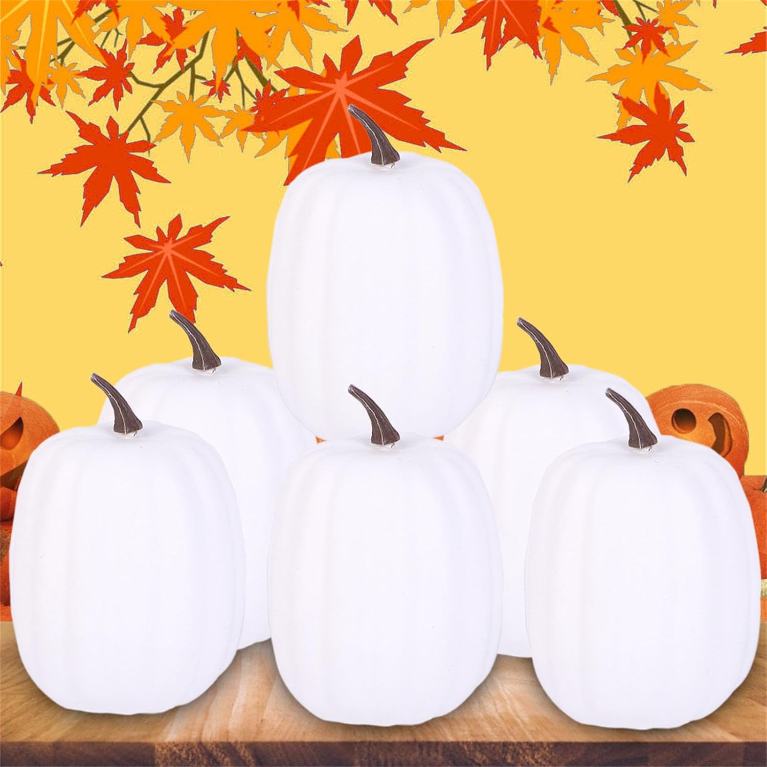 Realizzate in schiuma resistente, queste zucche vantano realistiche per un display stagionale Crea ricordi a lungo termine con questo delicato set di decorazioni che cattura la sensazione di caduta Migliora i tuoi decori festivi con il realistico set di zucche Trasforma il tuo cortile, ufficio o spazio per eventi in incantevole autunno con queste zucche decorative Ideale per famiglia, organizzatori di feste e appassionati di artigianato che cercano di aggiungere un tocco di fascino al raccolto alle loro feste di Halloween e Ringraziamento