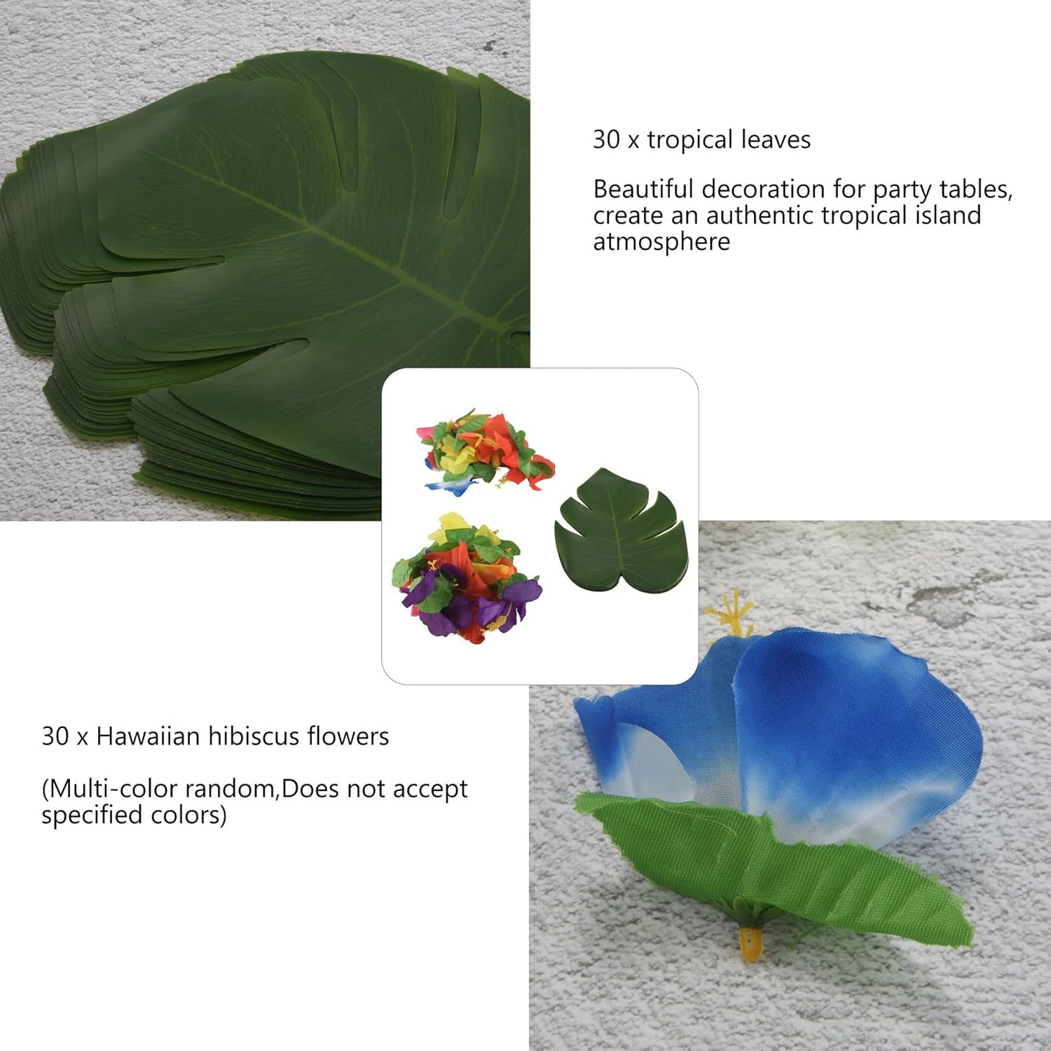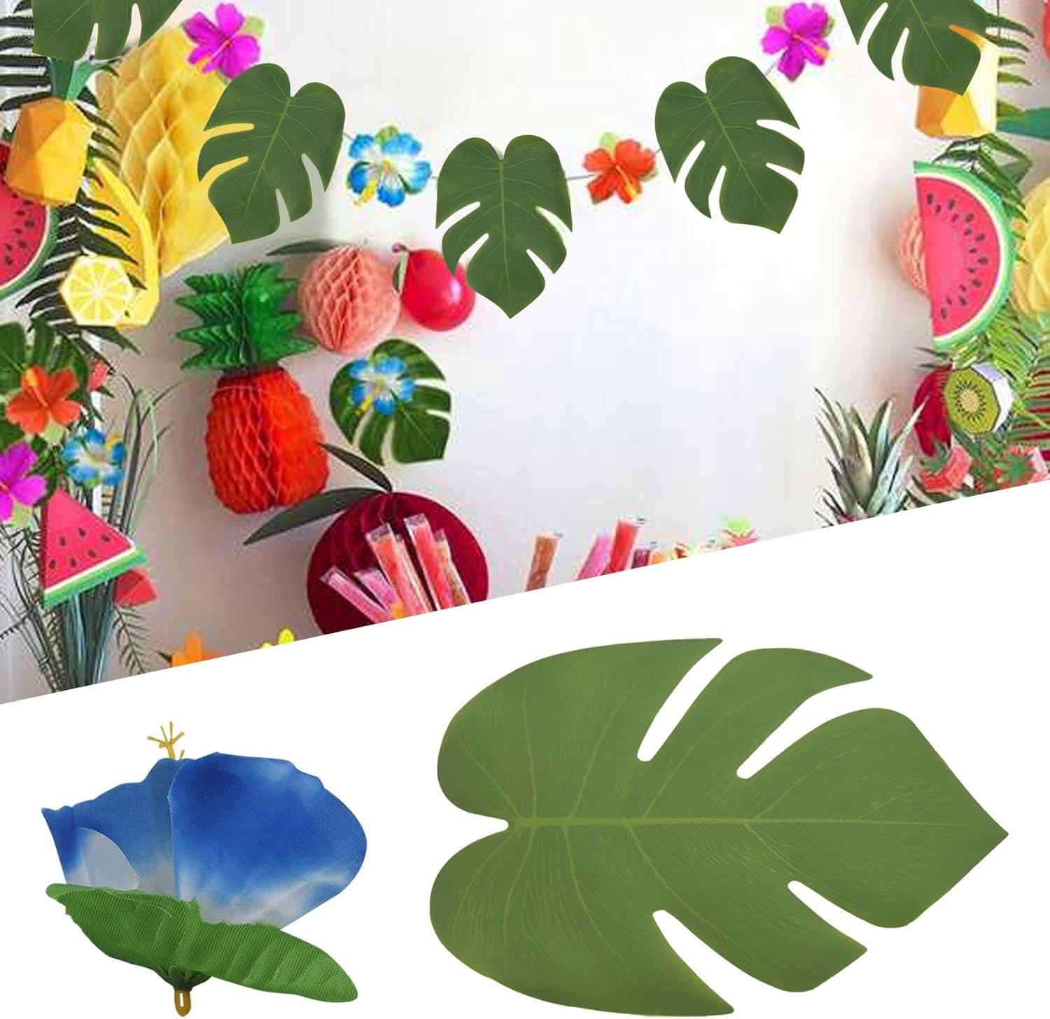 Bella decorazione per tavoli da festa, crea un'atmosfera autentica isola tropicale Ideale per un evento a tema giungla o foresta pluviale, dona un aspetto fresco e naturale alle tue decorazioni Luau Aspetto come vero blaetter, piacevole tocco La combinazione di fiori hawaiani e blaetter li rende una splendida decorazione per feste hawaiane
