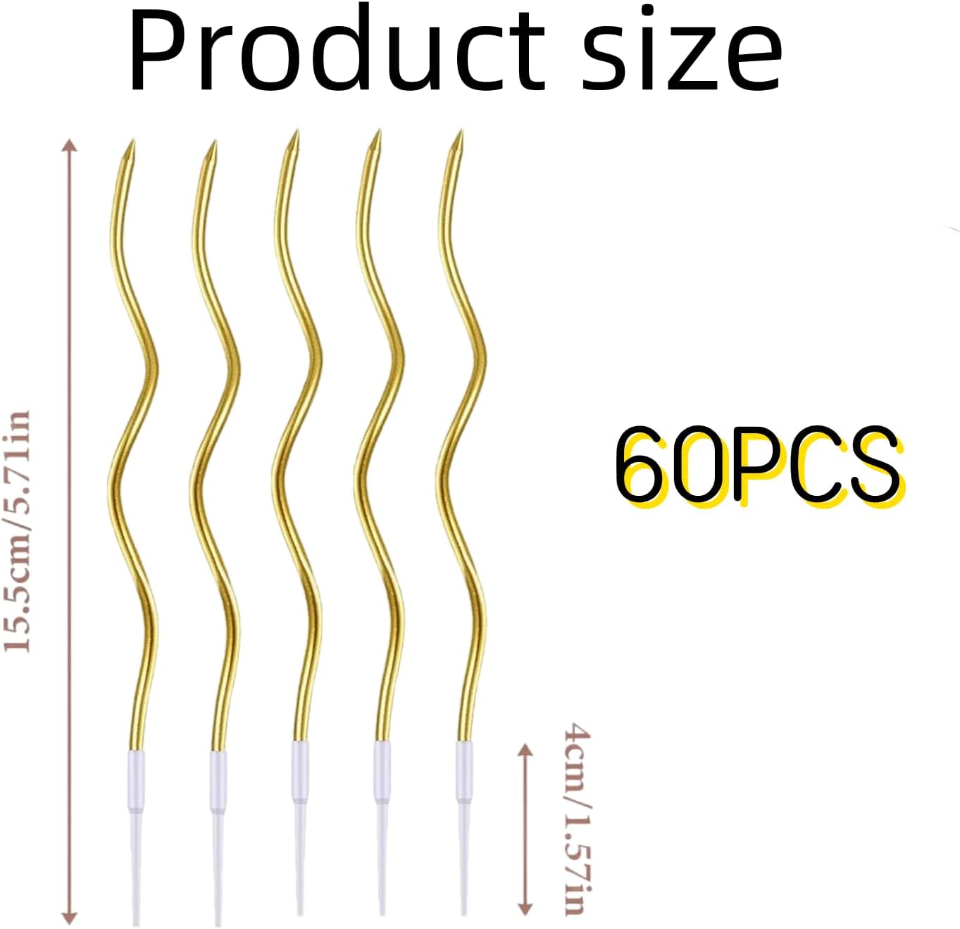 Materiale non tossico: queste candele sono realizzate in cera di paraffina di alta qualità, inodore e bruciano pulite, con lunghezza appropriata. Dimensioni ottimali: ogni candela per torta è lunga circa 155 mm, adatta per torte di qualsiasi dimensione. 10 scatole di candele intrecciate: riceverai 60 candele di compleanno dorate intrecciate (6 per scatola), sufficienti per l'uso. Design a spirale: queste candele per torte sono progettate a forma di spirale, abbellendo la torta in un'opera d'arte e creando un'atmosfera romantica. Ampia gamma di applicazioni: queste candele ricci sono adatte per decorare feste, come feste di compleanno, feste di nozze e feste aziendali, per migliorare l'atmosfera gioiosa della festa.