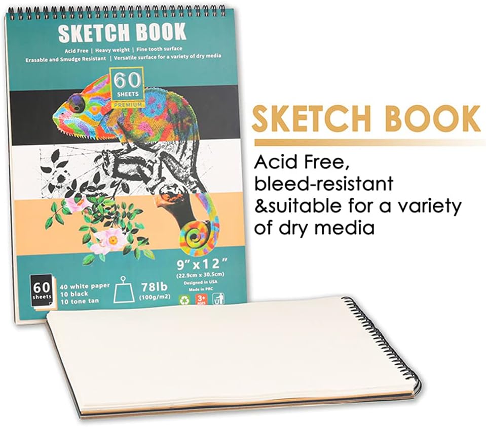 Blocco da disegno per un facile utilizzo: il robusto album da disegno con rilegatura ad anello mantiene i fogli in posizione. Ogni pagina può essere aperta a 180 gradi appiattita. attraverso le pagine e lavora comodamente Un libro con tre colori di carta: 40 Carta bianca, 10 nero, 10 toni marrone chiaro Meglio piombo sulla colorazione texture grossolana Per matita, matita colorata, carboncino, bastone da disegno, pennarello, pastello, tecnica mista, pastello ad olio Con la linea di strappo, lo strappo è più ordinato