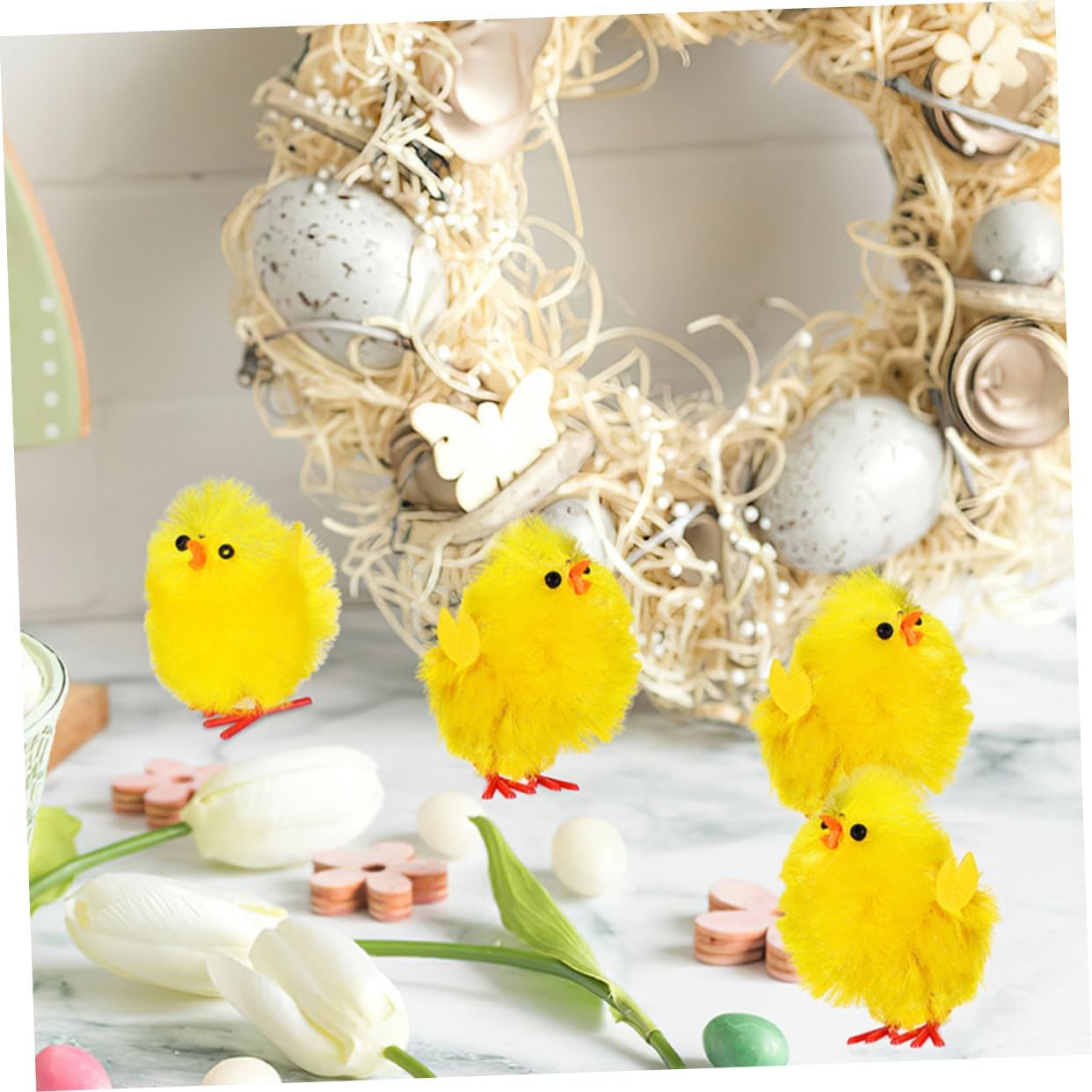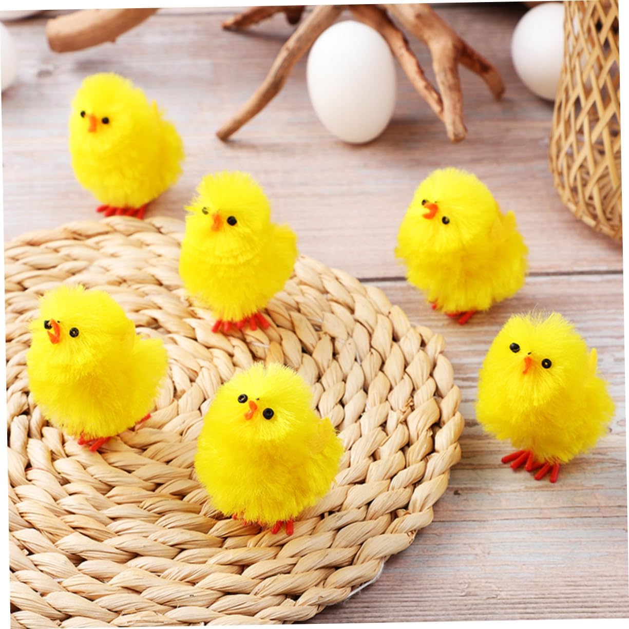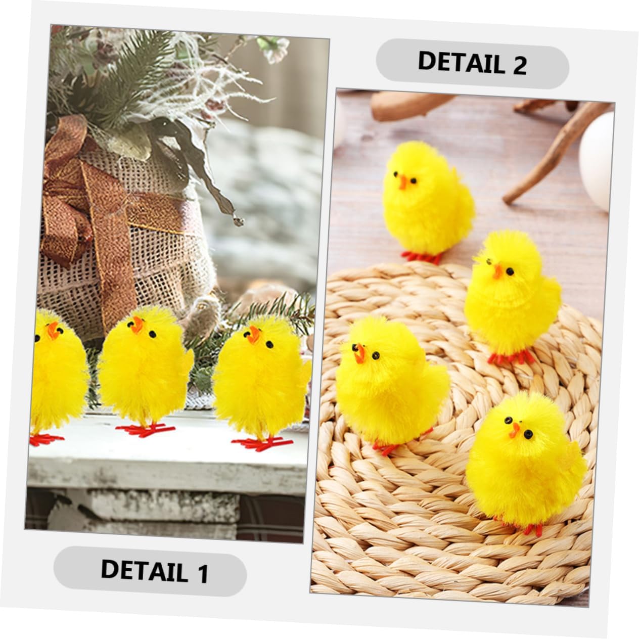 Ampia gamma di usi: questi pulcini possono essere usati come regali per feste, decorazioni o per varie occasioni, come giocattoli di peluche, come animali di peluche di pollo. Peluche di pollo - questi mini pulcini sono perfetti per molti progetti artigianali, come decorare facilmente una festa di Pasqua o un cestino di Pasqua, Pulcini di peluche di Pasqua Fuzzy Chicks - portatili e facili da spostare grazie alle sue dimensioni compatte, possono essere usati come regalo per i tuoi amici, ecc. Possono essere usati in modo decorativo, Decorazioni di pulcini di Pasqua Pulcini di Pasqua di peluche - Il design adorabile di questi polli piace sia agli adulti e li rende un'adorabile aggiunta alle feste. Decorazione pasquale con pulcini Pulcini per Pasqua: la simulazione di pulcini di peluche può essere utilizzata come decorazione perfetta per la tavola, ha una vasta gamma di applicazioni, pulcini pasquali