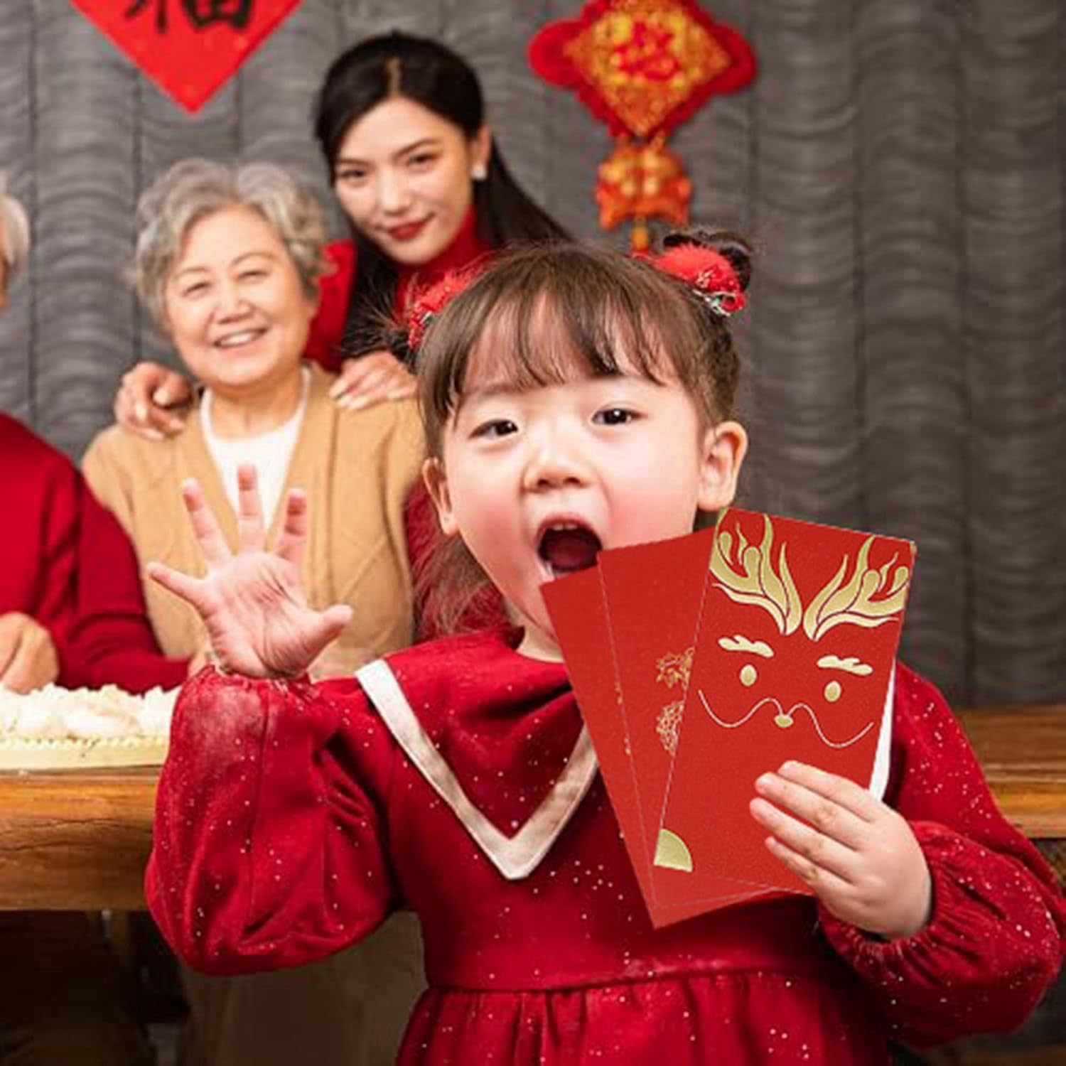 intriganti: le nostre buste rosse porta sono decorate con 6 esclusivi, che simboleggiano prosperità e buona fortuna. L'affascinante combinazione di rosso e oro con caratteri cinesi, così come i modelli di marcatura a caldo in rilievo, evocano e l'aspetto classico. Qualità eccezionale: realizzate con carta di alta qualità, le nostre buste rosse cinesi offrono una durata robusta, resistono all'usura e non sbiadiscono. L'intelligente della guarnizione permette di fissare le buste inserendole nella scanalatura, eliminando la necessità di adesivo o colla. Il pacchetto contiene: Concediti con un ampio set di 60 buste rosse dell'anno cinese di dimensioni 3,5x3,5 pollici o 6,5x3,5 pollici. Progettato con precisione per offrirti un'abbondanza di tasche d'argento per arricchire le tue esigenze di festa e celebrazione. Simboleggiando fortuna e fortuna: la tradizione cinese combina il rosso con la fortuna, quindi il nome e il colore delle nostre buste. I motivi stampati e gli elementi cinesi sulle nostre buste personificano fortuna e benedizioni, rendendolo un regalo perfetto per trasmettere la tua sincerità durante il nuovo anno e oltre. Uso versatile: perfetto per l'anno cinese, matrimoni, Natale, lauree, vacanze, compleanni, visite di famiglia, baby shower e molto altro. Riempieteli con denaro, monete o altri regali simbolici o usateli come bellissime decorazioni per il vostro albero dell'anno e spazio abitativo. Le nostre buste rosse offrono molto più di una semplice tasca d'argento.
