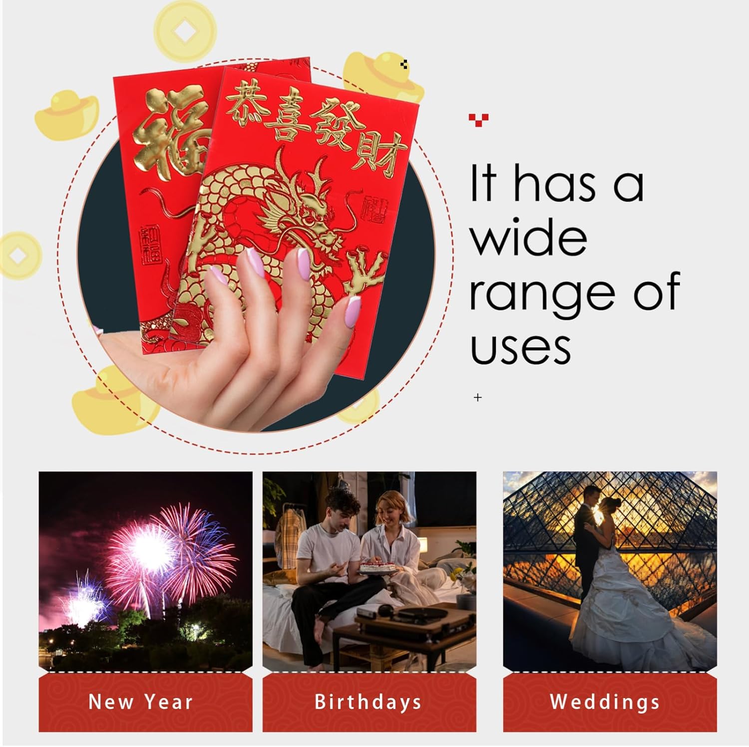 Pocket di denaro rosso-significa desideri dagli anziani alle giovani generazioni, augurandoli allegri e salute durante il prossimo anno, pacchetto rosso Spring festival red invilope Pacchetto rosso decorativo: è attentamente progettato con motivi tradizionali in stile cinese con desideri, eleganti e belli, pacchetti in rosso Buste rosse di anno: lo sviluppo con delicata design del in stile cinese è unico e un simbolo della cultura tradizionale della busta rossa del festival, festival Pacchetto di denaro-la dimensione di ogni busta rossa è appropriata per detenere il denaro e ha una capacità sufficiente per , buste rosse in stile cinese