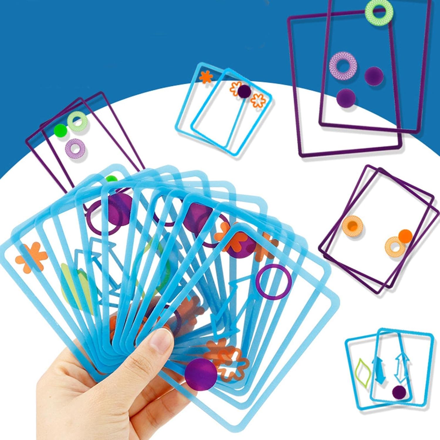 Gioco di carte sovrapposte swish toy set, per 2+ giocatori dai 5 in Sviluppa capacità critiche: il gameplay divertente sviluppa capacità di come il ragionamento logico e la percezione visiva. Entrambi i lati della carta sono ricoperti da un processo di laminazione, che è resistente alle pieghe e all'acqua, e può essere conservato più a lungo. L'educazione all'interazione genitore-figlio si sovrappone al gioco di logica delle carte giochi intelligenti spaziali. Istruzioni chiare: facile da imparare manuale di istruzioni chiaro e di alta qualità. Puoi iniziare a giocare immediatamente.