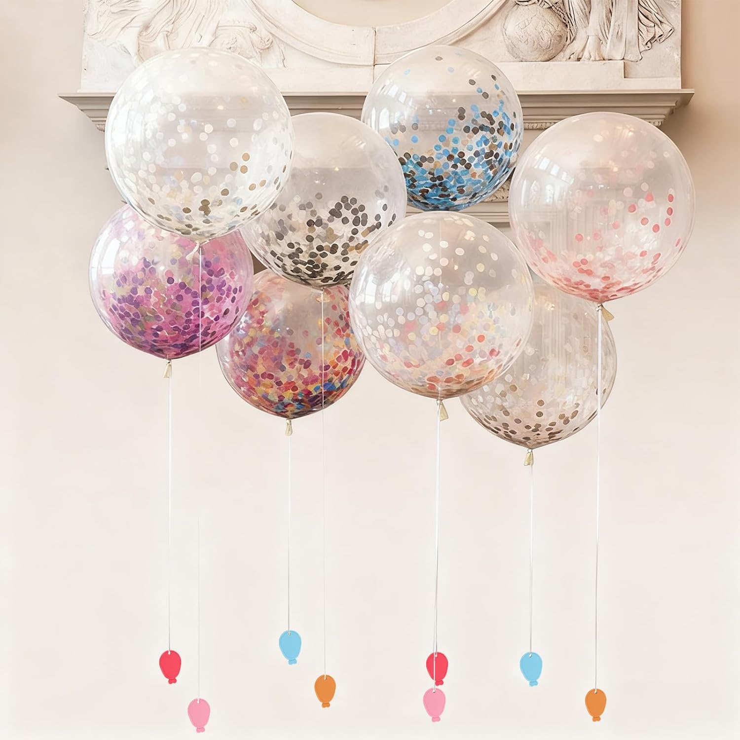 Cosa riceverete: questo set contiene 60 pesi per palloncini colorati e 40 metri di nastro decorativo, disponibili in 4 colori diversi, sufficienti per soddisfare le vostre esigenze durante feste o altri eventi in cui si utilizzano palloncini. Questi accessori sono molto pratici e aggiungono un tocco decorativo eccezionale ai vostri eventi. Materiale: questi pesi per palloncini sono realizzati in plastica resistente e sono adatti per palloncini da 18 pollici. Per palloncini di dimensioni maggiori, potrebbe essere necessario utilizzare più pesi. 5 colori: questi pesi per palloncini sono disponibili in diversi colori, tra cui giallo, rosa, blu e rosso. Anche i nastri sono disponibili in questi colori, che possono essere abbinati a palloncini di diversi colori. Bellissime decorazioni: adatte a qualsiasi occasione di festa, tra cui compleanni, Capodanno e altro ancora. I pesi per palloncini si abbinano perfettamente alla tua casa o al luogo della festa. Ampia applicazione: i nostri pesi per palloncini sono adatti per feste di compleanno, matrimoni, feste per bambini o qualsiasi occasione speciale.
