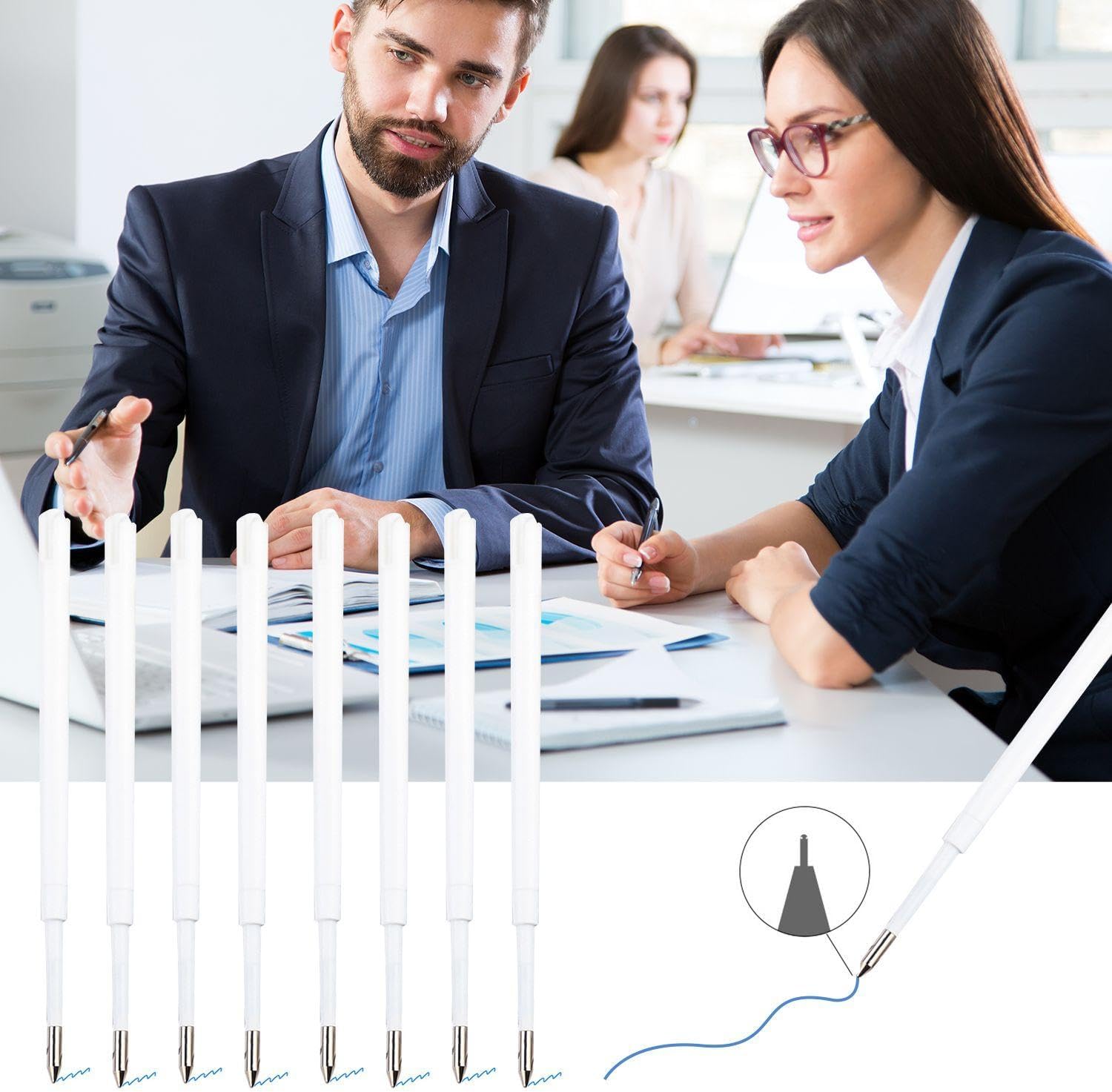 【Contenuto Del Prodotto】 Riceverai 60 Ricariche Per Penne A Sfera, Ciascuna Ricarica È Lunga 9,8 Cm E Bianca. Queste Ricariche Sono Adatte Per Una Varietà Di Penne A Sfera Intercambiabili, Garantendo Che La Penna Possa Essere Facilmente Sostituita E Possa Continuare A Essere Utilizzata Quando L'Inchiostro Si Esaurisce. 【Materiale Del Prodotto】 Queste Ricariche Sono Realizzate In Plastica, Resistente E Rispettosa Dell'Ambiente. La Punta Della Penna Ha La Forma Di Una Sfera, Che Consente Una Scrittura Fluida Ed È Adatta Per Un Uso A Lungo Termine. L'Inchiostro È Distribuito Uniformemente E La Scrittura È Chiara, Adatta Per La Scrittura E La Registrazione Quotidiana. 【Dimensioni Standard】 La Lunghezza Della Ricarica È Di 9,8 Cm, Adatta Per La Maggior Parte Delle Penne A Sfera Di Dimensioni Standard. La Ricarica È Facile E Comoda E Garantisce Che La Penna Possa Essere Riutilizzata Rapidamente Quando L'Inchiostro Si Esaurisce, Rendendola Un Complemento Di Cancelleria Ideale Per L'Ufficio E Lo Studio. 【Uso Multiuso】 Queste Ricariche Per Penne A Sfera Sono Adatte Per La Scrittura Quotidiana, Documenti D'Ufficio, Compiti Degli Studenti E Altre Occasioni. Al Lavoro, Allo Studio O A Casa, Queste Ricariche Offrono Prestazioni Di Scrittura Affidabili E Assicurano Che La Tua Penna Sia Sempre Pronta Per L'Uso. Facile Da Riporre: 60 Ricariche Sono Confezionate In Un Unico Pacchetto, Che È Una Quantità Sufficiente Ed È Adatta Per L'Uso A Lungo Termine O Per La Condivisione Da Parte Di Più Persone. L'Aspetto Bianco È Semplice Ed Elegante E Può Essere Facilmente Riposto In Una Scatola Per Penne O In Un Armadietto Per Cancelleria Per Mantenere La Scrivania Pulita E Ordinata.